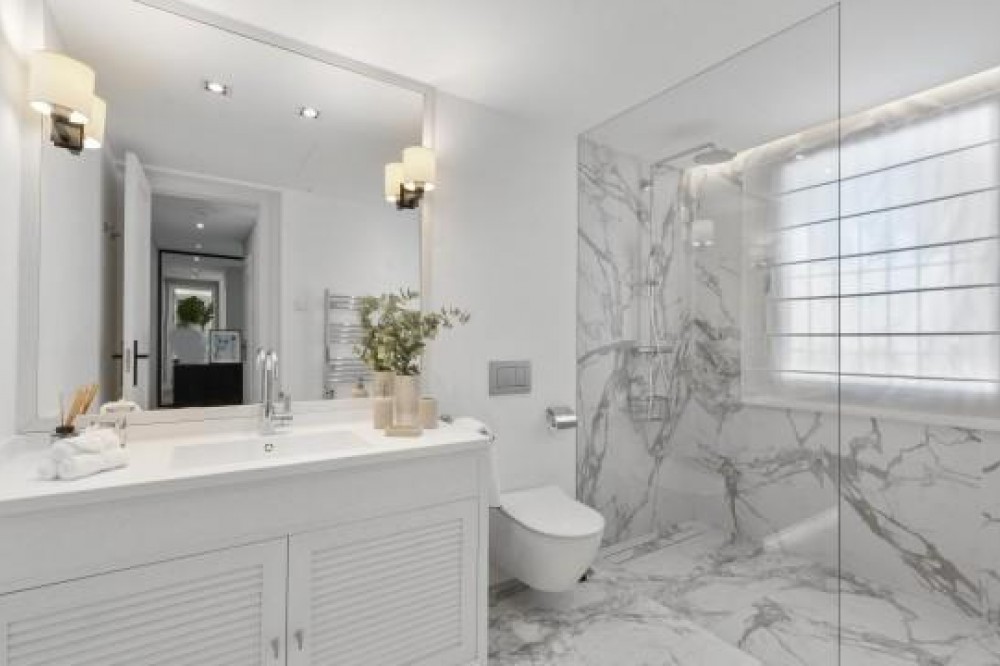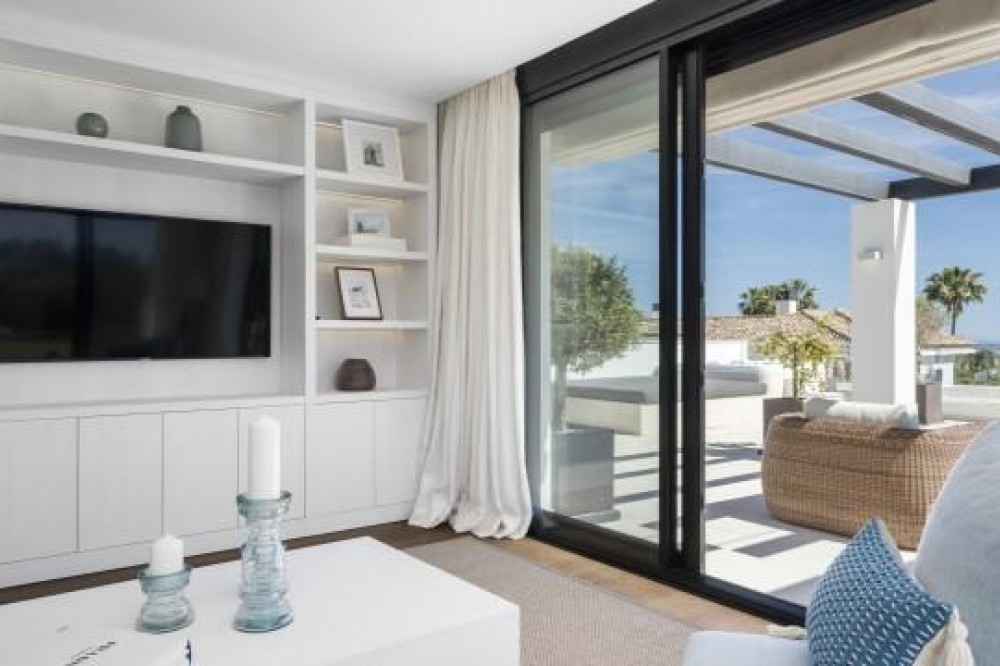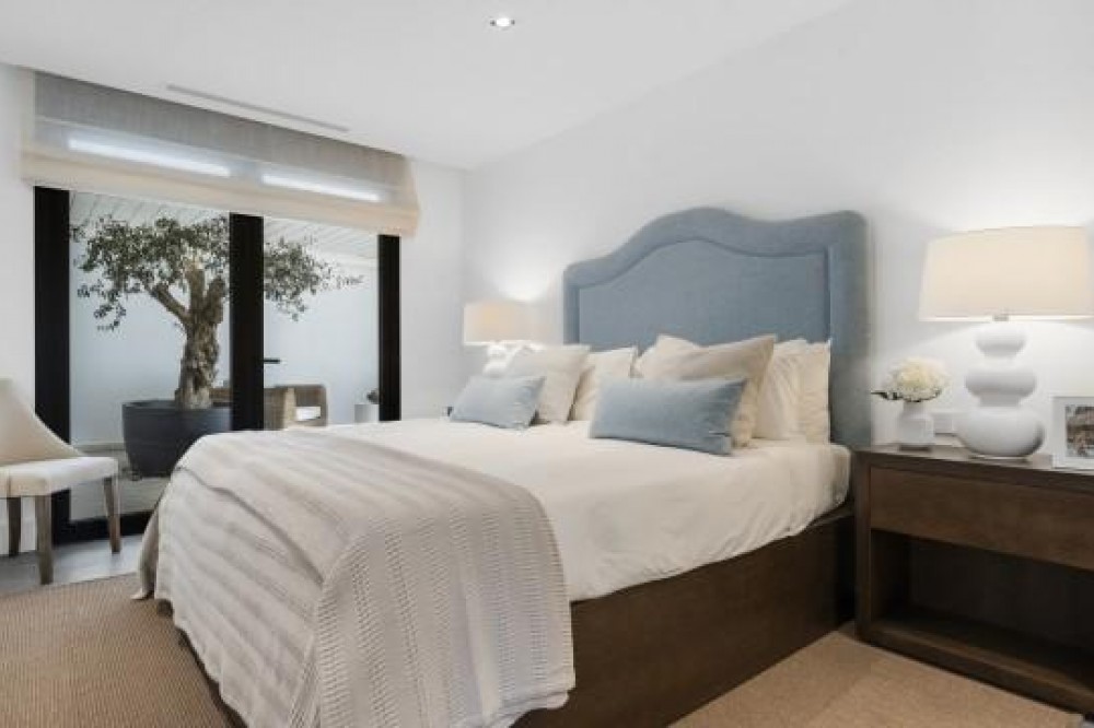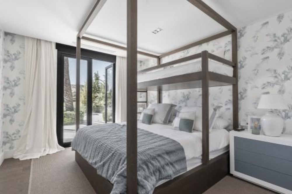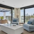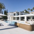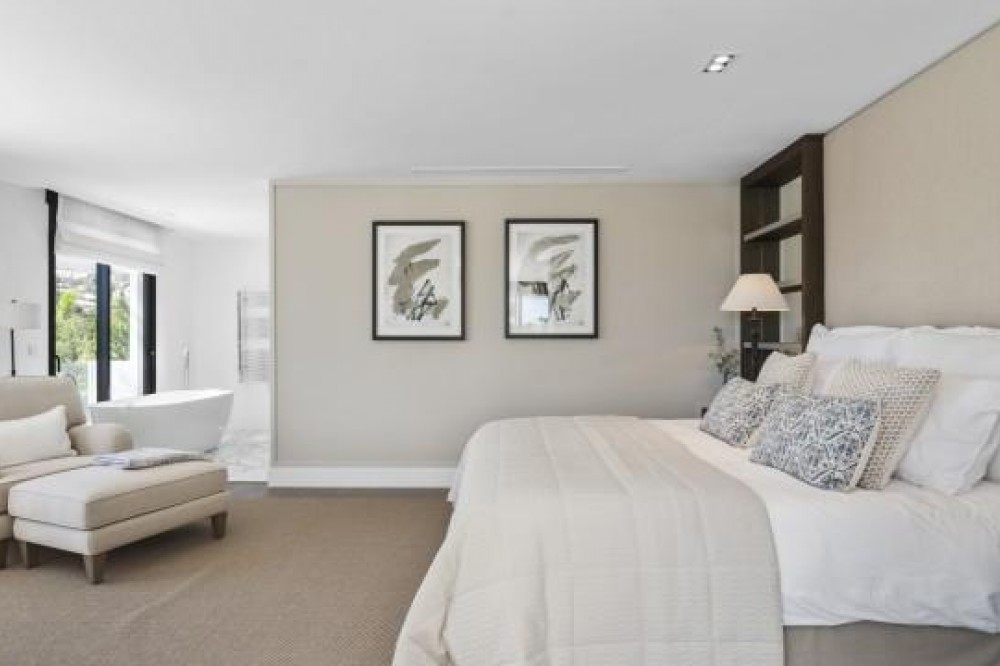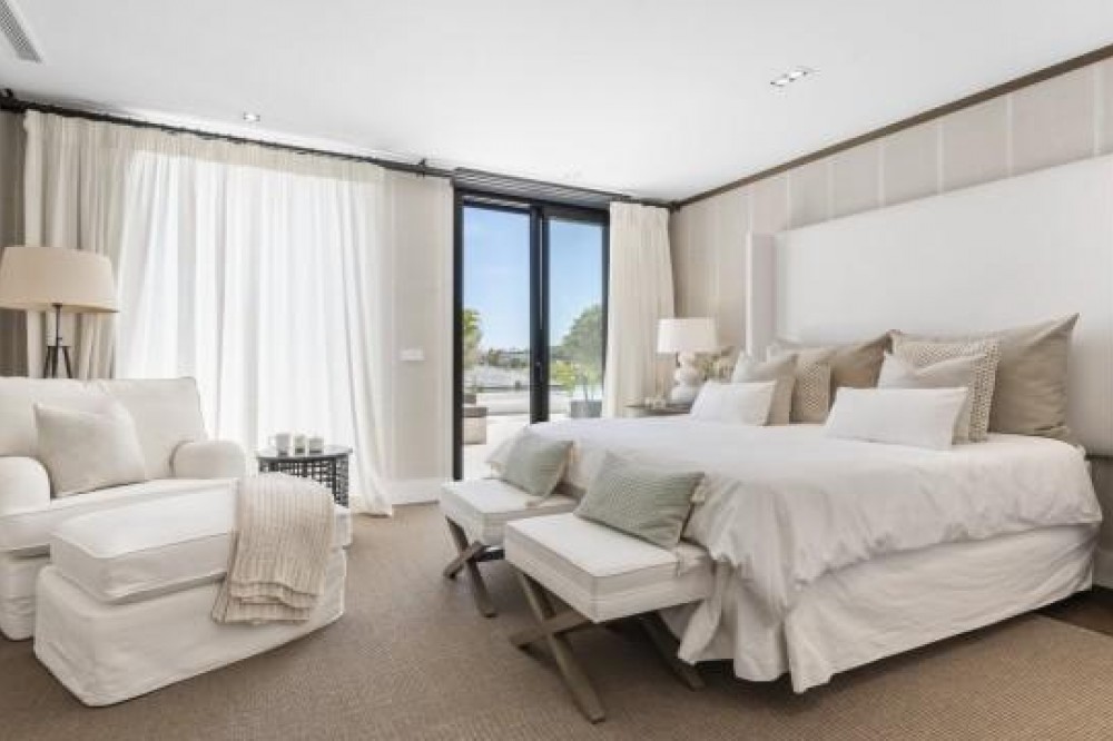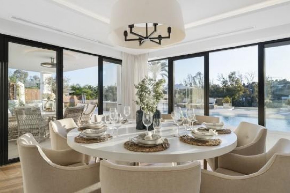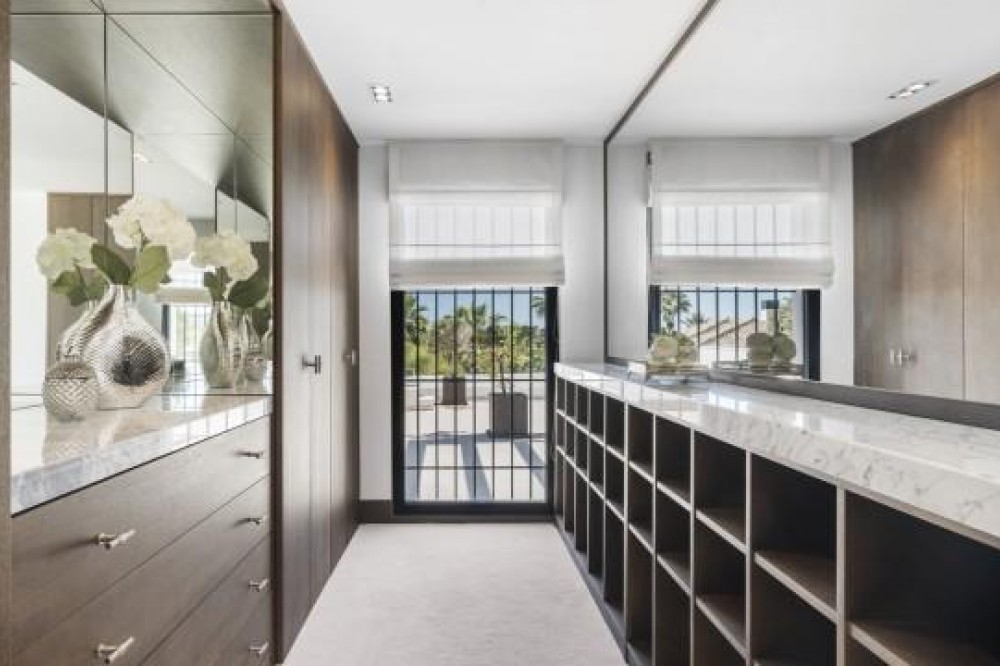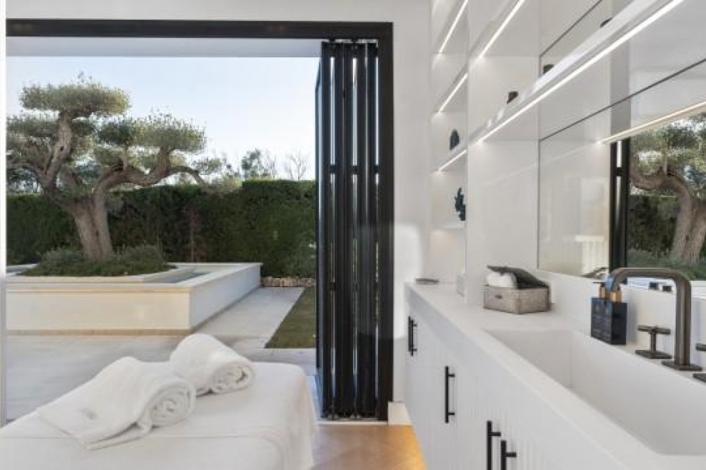 - Frontline Golf Luxury Villa for sale in Nueva Andalucia Spain. Welcome to this luxurious family home located in the prestigious Nueva Andalucia area in Marbella. As you enter the property, you are greeted by a spacious open-plan living area that seamlessly blends indoor and outdoor living. The living space with heated wooden floors opens onto a generous pool area, complete with an outdoor fireplace fueled by ethanol, creating the perfect ambiance for outdoor gatherings. The heated swimming pool invites you to take a refreshing dip any time of the year. The main level of the home features three well-appointed bedrooms, offering comfort and privacy for the entire family. Additionally, there is an office space for those who need to work from home and a separate TV room where the family can unwind and enjoy movie nights together. Ascending to the upper level, you will find three more bedrooms, each with its own en-suite bathroom. The master bedroom is a true retreat, boasting a spacious layout, his and her walk-in closets, and a private terrace offering stunning views of the golf course and the sea beyond. This luxury family home is designed to provide the utmost comfort and style, with ample space for every member of the family to relax and enjoy the beautiful surroundings of Marbella's Golf Valley. Descend into the basement of this luxurious family home and discover an unexpected haven of relaxation and entertainment. The basement is designed as the ultimate retreat, offering a variety of amenities to cater to every need. Step into the sleek and stylish bar area, where you can mix up your favorite cocktails and entertain guests in style. Adjacent to the bar, you'll find a cozy TV room, perfect for movie nights or catching up on your favorite shows. For those seeking relaxation and rejuvenation, the basement boasts a sauna and steam room with Himalaya salt wall, where you can unwind and let the stresses of the day melt away. Indulge in a luxurious massage in the dedicated room... And more, much more...