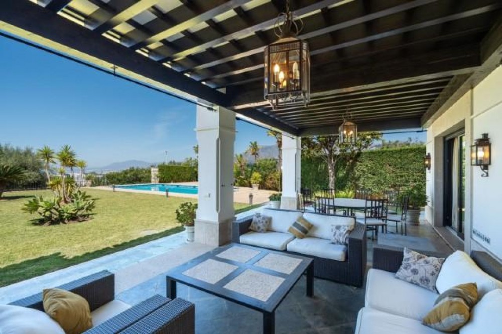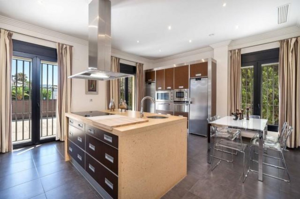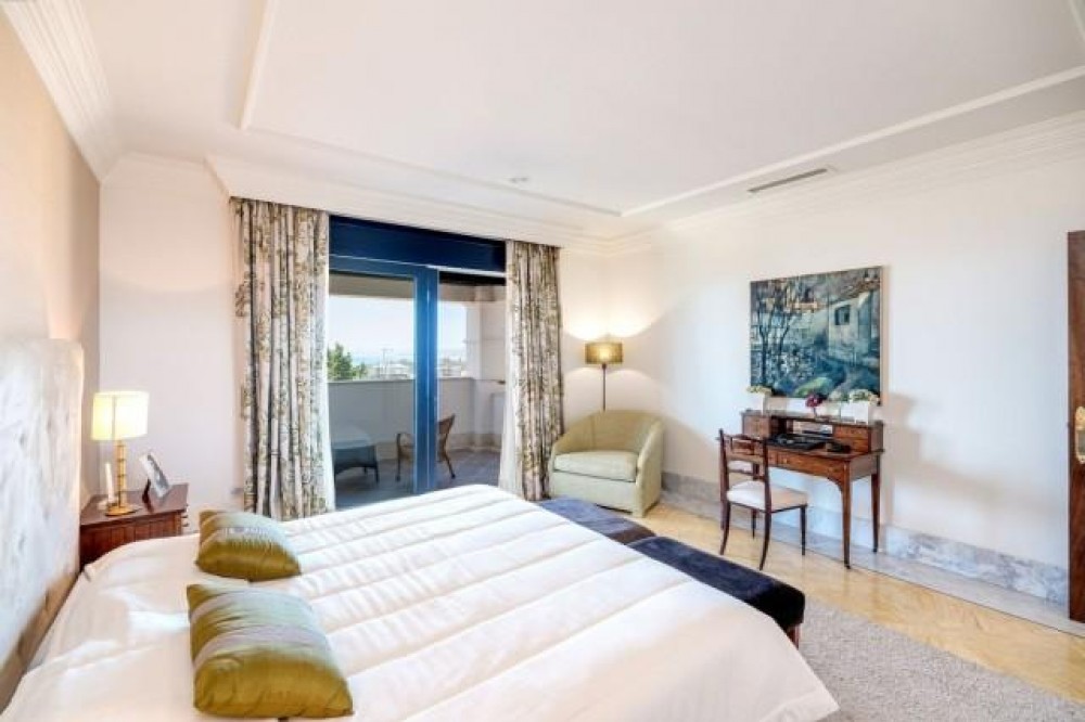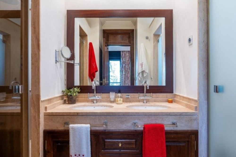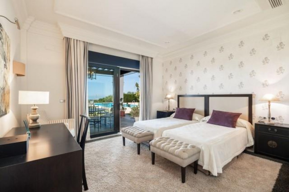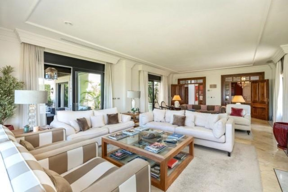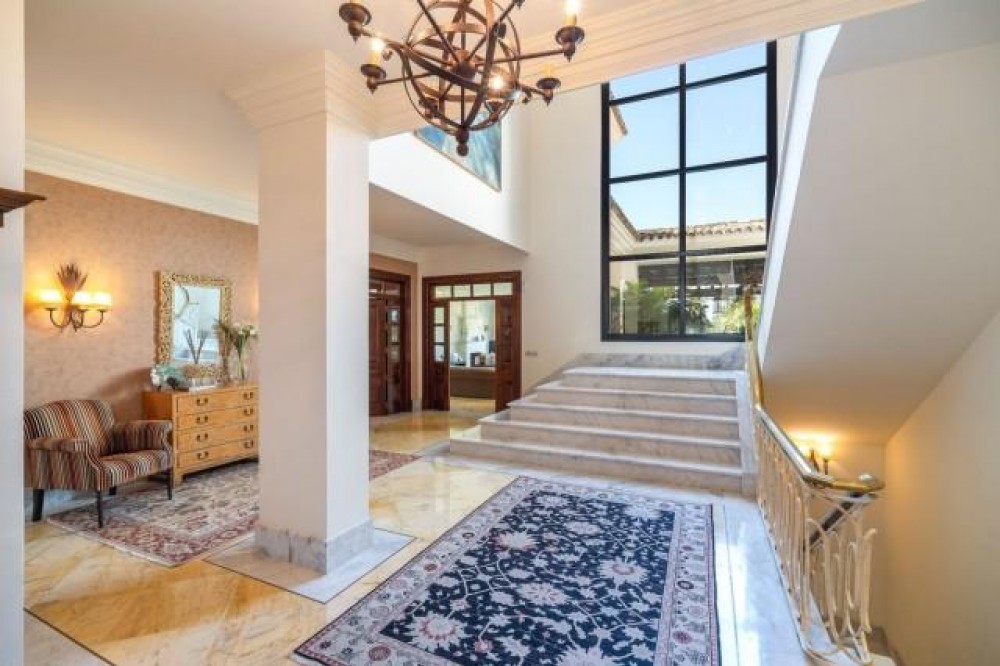 - Exquisite Frontline Golf Villa for sale with Unmatched Views in Marbella East. Discover the epitome of luxury living with this unique classic villa, perfectly situated on the first line of tan exclusive Golf Course. Boasting six spacious bedrooms and unparalleled views of Marbella city, the Mediterranean Sea, La Concha Mountain, and the prestigious Golf Course, this villa is a dream come true for discerning property buyers. Key Features: Prime Location: Nestled in a prestigious gated community with 24-hour security, offering peace of mind and an exclusive lifestyle. Spectacular Views: Enjoy breathtaking vistas from every angle, including sweeping views of the sea, mountains, and cityscape. Elegant Design: This villa features timeless architecture and superior quality materials, ensuring both style and durability. Ground Floor: Upon entering through a grand pedestrian entrance or via the convenient access ramp to the basement garage, you'll be welcomed by a spacious hall with a stunning large window and an elegant staircase. The ground floor is thoughtfully divided into two distinct areas: Living Area: Featuring a vast living room, a sophisticated formal dining room, a guest toilet, and an independent kitchen with an informal dining space. Private Suites: Two generously sized bedrooms, each with separate dressing rooms and luxurious en-suite bathrooms, offer direct access to a large, covered terrace, a magnificent garden, and a private pool. Upper Floor: Accessible by a modern elevator, the upper floor hosts: Master Suite: A grand master bedroom with a separate dressing room, a lavish bathroom with a shower and Jacuzzi, and a private terrace boasting the best views in Marbella. Additional Bedrooms: Two more en-suite bedrooms with large wardrobes, one of which features a private terrace with stunning views of the mountains and the Mediterranean Sea. Basement: The basement level includes: Employee Apartment: Complete with a bedroom, bathroom, living/dining area, and a fully equipped kitchen. Wellness Area: Indulge in a full spa experience with a Jacuzzi, sauna, Turkish bath, showers, and a fully equipped gym. Garage: A modern garage with space for at least five vehicles. Location Highlights: Situated in the East of Marbella, this villa is surrounded by five first-class 18-hole golf courses, Rio Real Golf, Marbella Golf, Santa Clara Golf,Santa María Golf and Cabopino Golf. Additionally, it's just a five-minute drive to Marbella's finest beaches and a mere ten minutes to Marbella city center and La Cañada Shopping Center. This exceptional frontline golf villa offers a rare blend of luxury, privacy, and convenience, making it the perfect choice for those seeking an exclusive lifestyle in Marbella. Don’t miss the opportunity to own this extraordinary property.