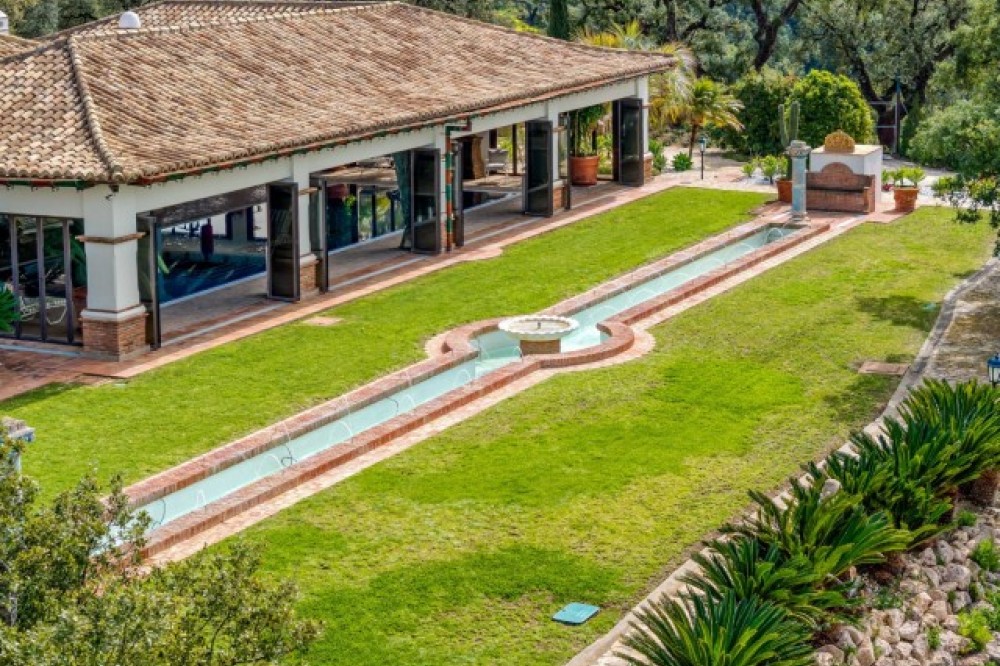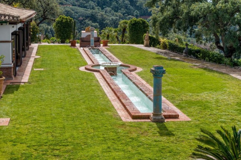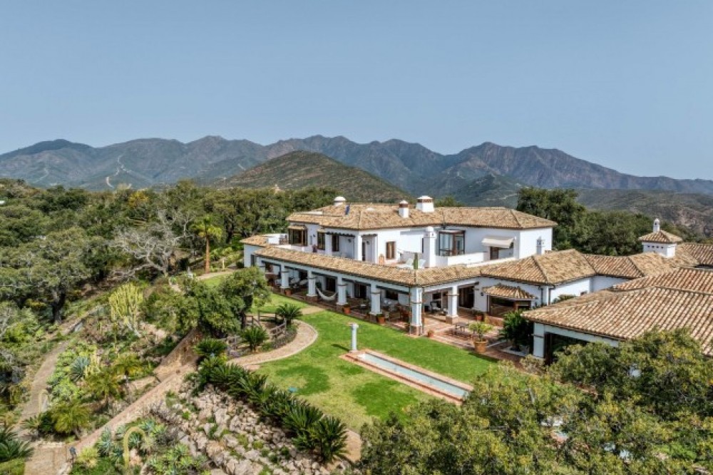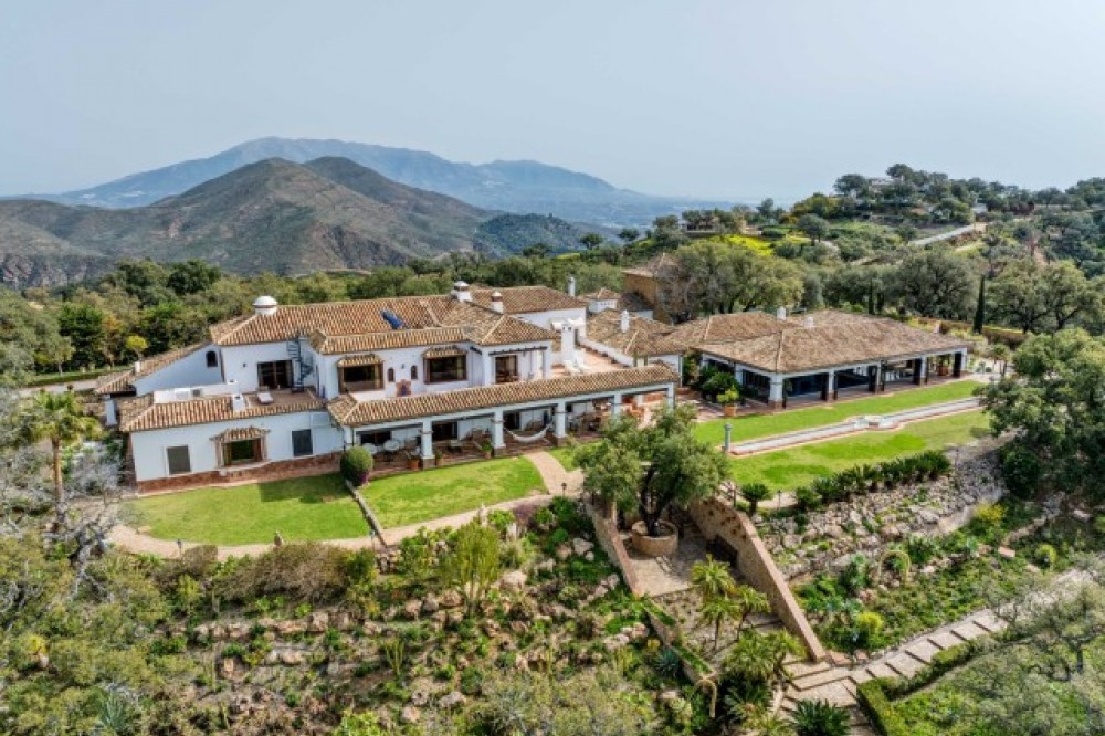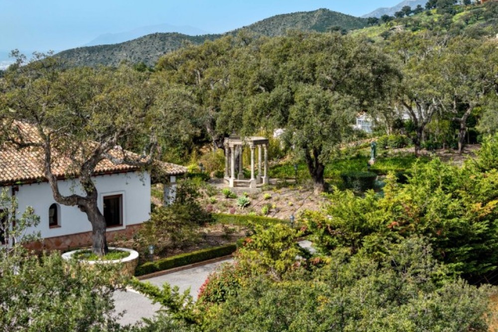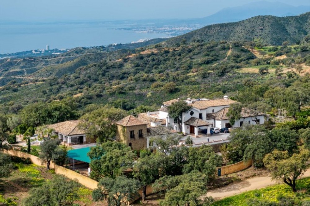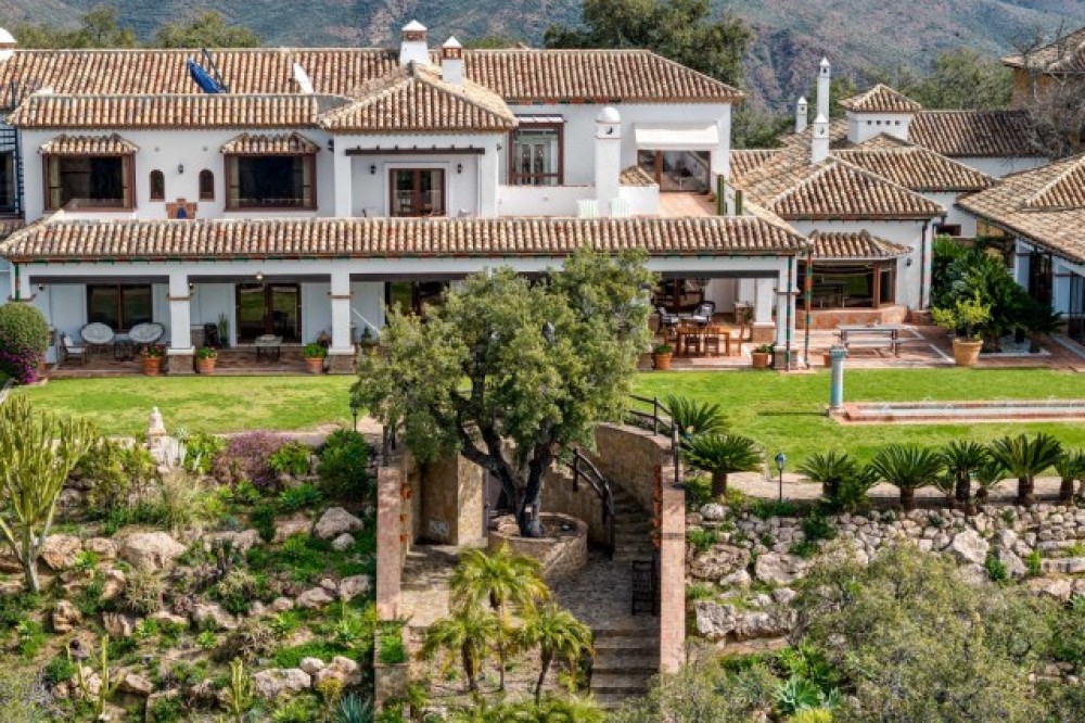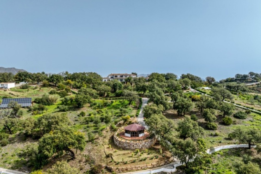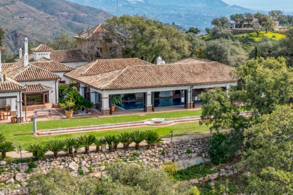 - Stunning luxury villa with panoramic sea views for sale in Marbella East. This astonishing luxury villa is nestled in a secluded oasis of tranquility, offering unparalleled privacy amidst unspoiled natural beauty. Set upon an elevated 5-hectare estate, this property boasts breathtaking panoramic views of the surrounding countryside, coastline and the sea. The main residence spans two levels, featuring a thoughtfully designed layout and an elevator. The ground floor encompasses: spacious living area with adjacent library; fully-equipped kitchen; dining room; welcoming lounge with a fireplace; three luxurious bedroom suites, two of which include living rooms. These areas seamlessly connect through an elegant hallway graced with vaulted ceilings. Additionally, this level houses a gym area with jacuzzi, two guest toilets, laundry area and storage facilities. Separated form the main building, is a covered swimming pool with a dressing room and a toilet; garage for 6 cars, as well as a fully-equipped service apartment. The ground level provides access to a variety of spacious terraces, porches, and inviting patios, offering an exceptional outdoor living experience. The upper level features an expansive open salon area, a luxurious master bedroom, living room/extra bedroom, all with access to stunning terraces. There are also two full bathrooms with open views to the sea. The property is surrounded by an impeccably maintained garden, with fruit trees, mature plants, ponds, graceful fountains, sculptures and serene water features. Besides, there is a small house offering panoramic 360-degree views, serving as a dedicated space for painting or hobbies. The property is located within half an hour’s drive form the centre of Marbella, 15 minutes drive from the beach.