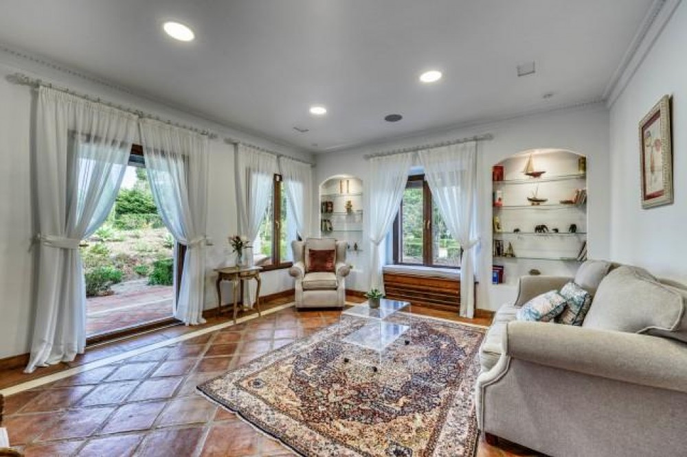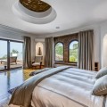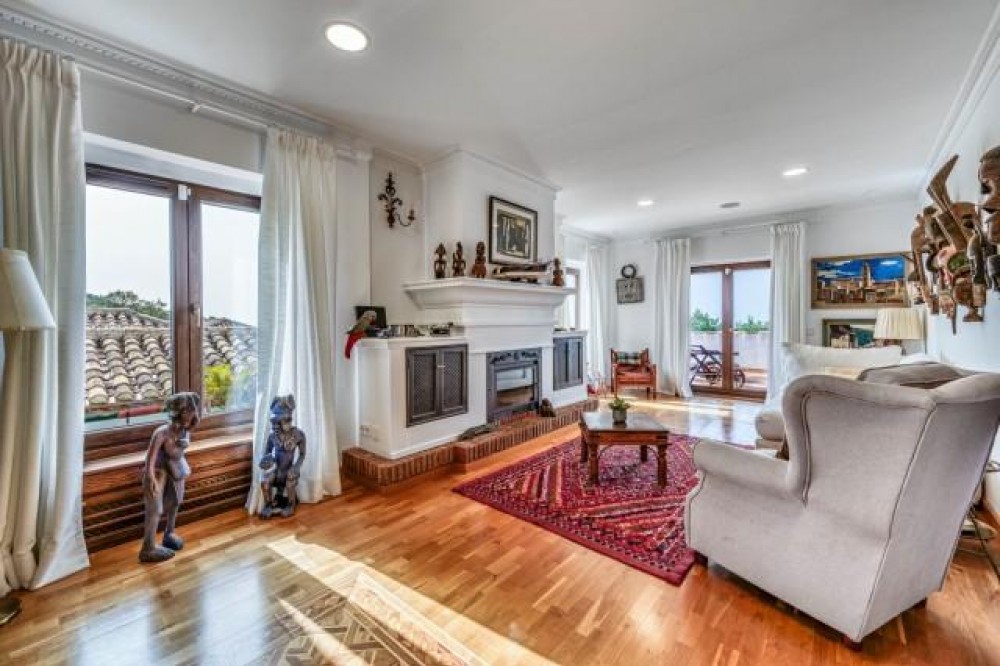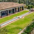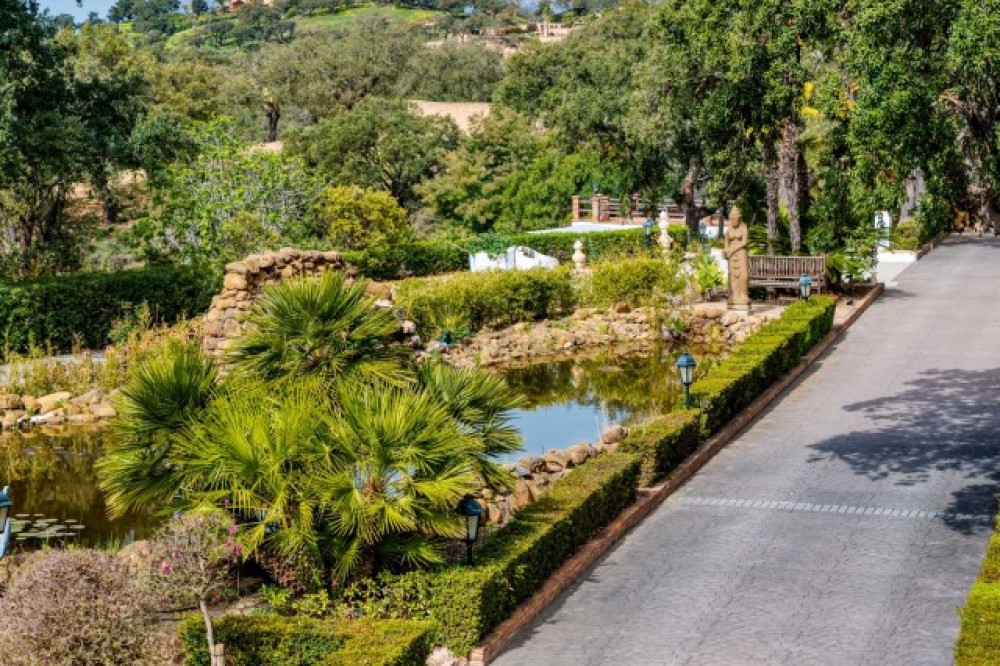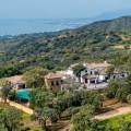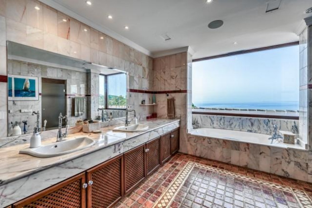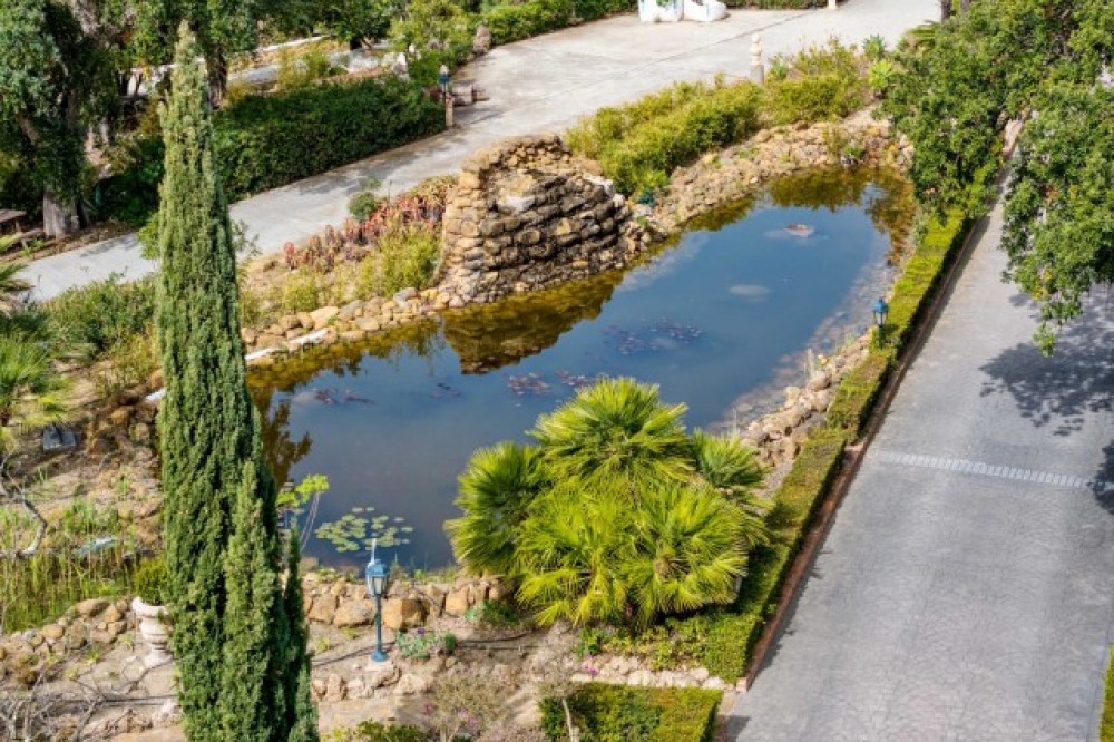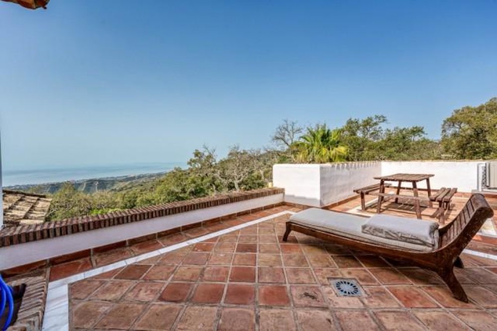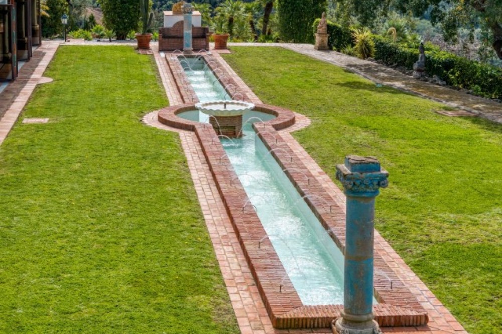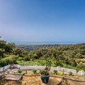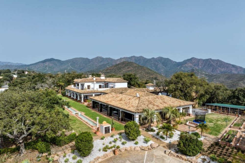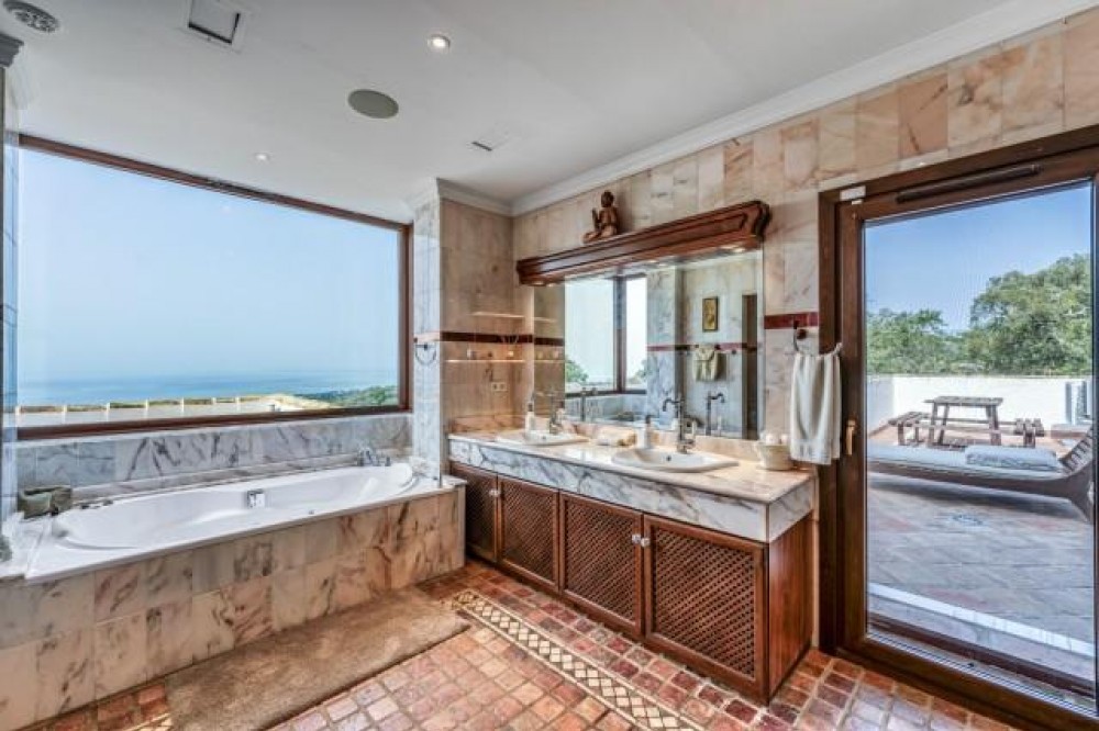 - Stunning luxury villa with panoramic sea views for sale in Marbella East. This astonishing luxury villa is nestled in a secluded oasis of tranquility, offering unparalleled privacy amidst unspoiled natural beauty. Set upon an elevated 5-hectare estate, this property boasts breathtaking panoramic views of the surrounding countryside, coastline and the sea. The main residence spans two levels, featuring a thoughtfully designed layout and an elevator. The ground floor encompasses: spacious living area with adjacent library; fully-equipped kitchen; dining room; welcoming lounge with a fireplace; three luxurious bedroom suites, two of which include living rooms. These areas seamlessly connect through an elegant hallway graced with vaulted ceilings. Additionally, this level houses a gym area with jacuzzi, two guest toilets, laundry area and storage facilities. Separated form the main building, is a covered swimming pool with a dressing room and a toilet; garage for 6 cars, as well as a fully-equipped service apartment. The ground level provides access to a variety of spacious terraces, porches, and inviting patios, offering an exceptional outdoor living experience. The upper level features an expansive open salon area, a luxurious master bedroom, living room/extra bedroom, all with access to stunning terraces. There are also two full bathrooms with open views to the sea. The property is surrounded by an impeccably maintained garden, with fruit trees, mature plants, ponds, graceful fountains, sculptures and serene water features. Besides, there is a small house offering panoramic 360-degree views, serving as a dedicated space for painting or hobbies. The property is located within half an hour’s drive form the centre of Marbella, 15 minutes drive from the beach.