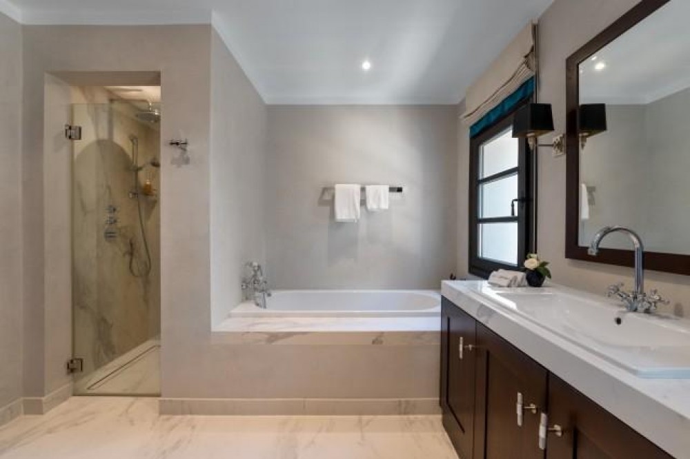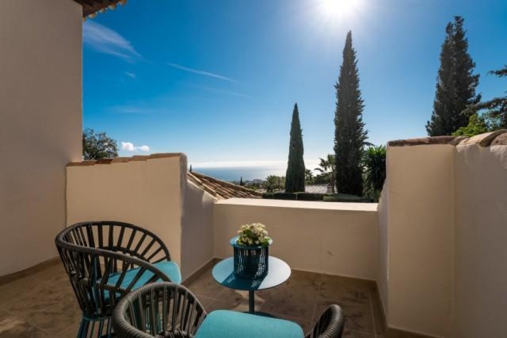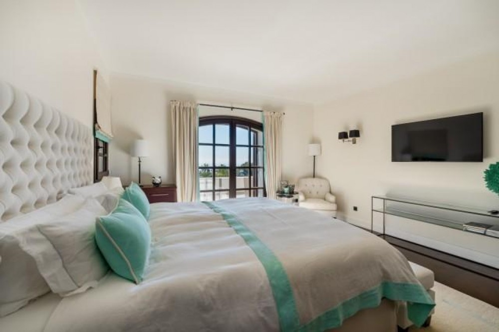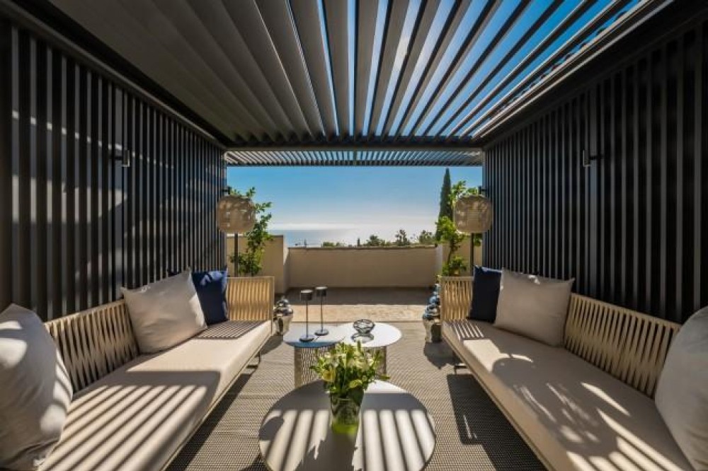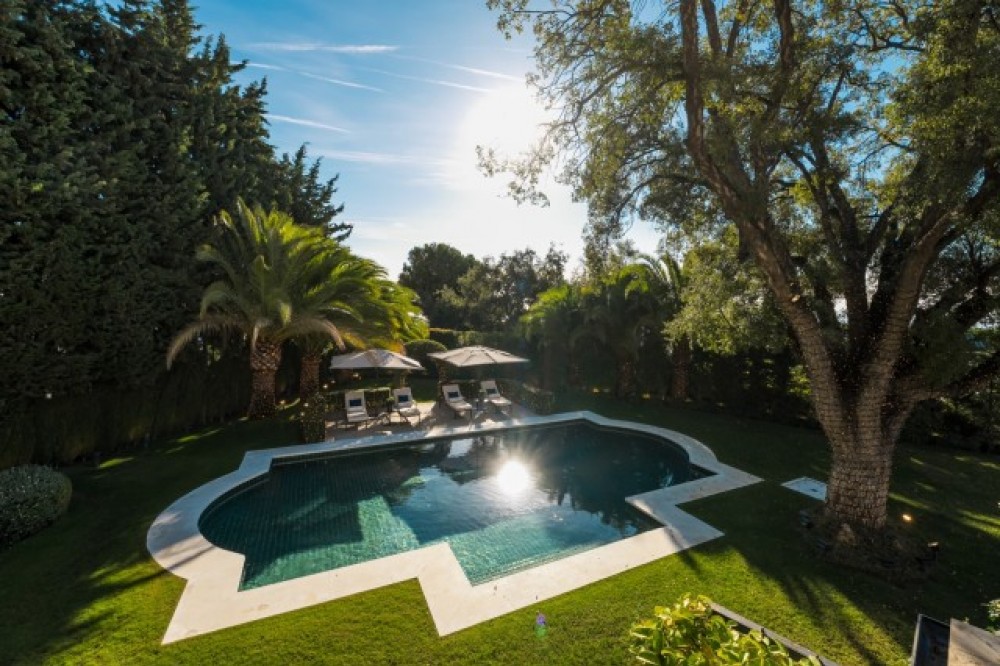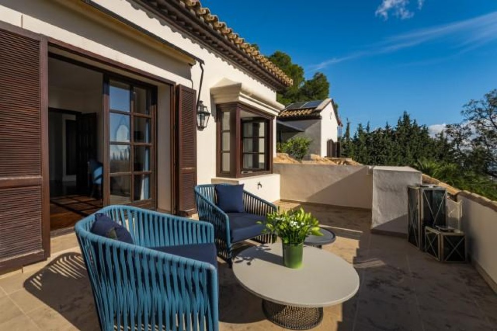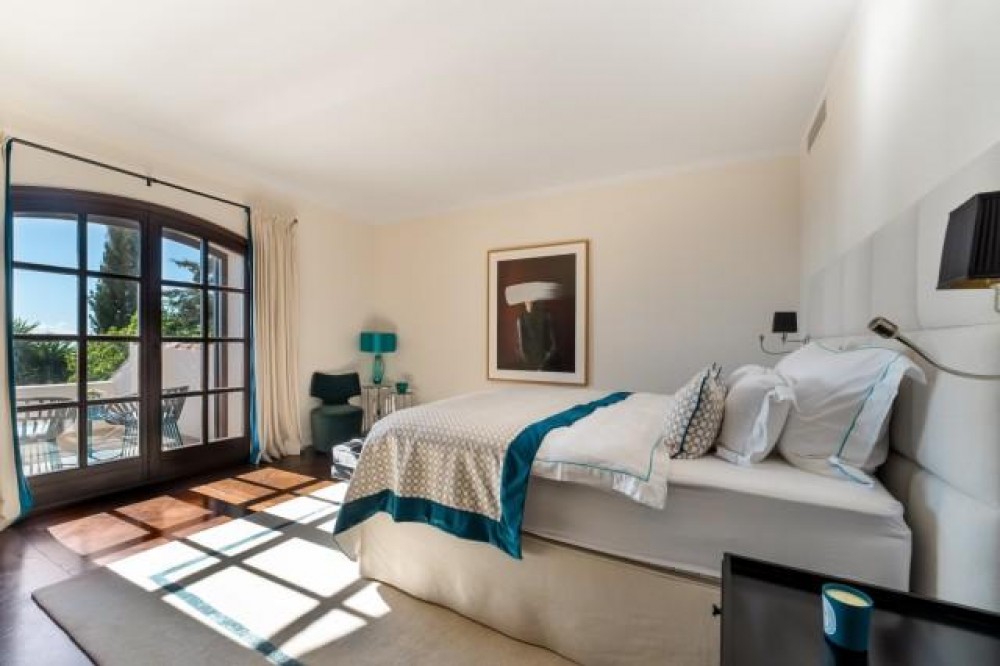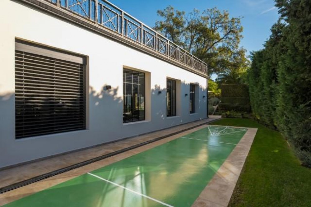 - This 7-bedroom villa is available for sale in the exclusive area on Marbella’s Golden Mile. Situated in a prime mountainside location, the property offers stunning panoramic views of the sea, lush gardens, and surrounding mountains. Renowned for its tranquility, security, and proximity to top-tier amenities, this prestigious neighborhood is one of Marbella’s most coveted areas. Spanning 1,041 m² on an expansive 3,093 m² plot, this property seamlessly combines elegance and comfort. The main level features a spacious living room with a gas fireplace, a separate dining area, a fully equipped kitchen with SMEG appliances (including 4 ovens), a study, a laundry room, and a guest bathroom. Expansive terraces extend the indoor living spaces outdoors, creating a seamless connection to the lush surroundings. In addition to the main villa, a separate building hosts a fully equipped gym, a Turkish bath, a massage room, a complete bathroom, and storage space, offering a private wellness retreat. Outdoors, the property boasts a beautiful pool area surrounded by landscaped gardens, a BBQ area, a shuffleboard court, and spacious terraces designed for relaxation and entertainment. The villa is equipped with state-of-the-art amenities, including underfloor heating, air conditioning with room-specific control, a built-in sound system, solar panels, and a newly renovated roof (2024). Additional highlights include wooden floors with green-tiled accents, double-glazed windows, elegant wooden doors, and bathrooms fitted with premium Villeroy & Boch fixtures and Zucchetti fittings. The villa includes a garage for 1.5 cars, a carport for two vehicles, and ample uncovered parking spaces. Security is ensured with an advanced system featuring intercom capabilities and surveillance cameras. This villa exemplifies the epitome of luxury living in Marbella, blending timeless elegance with modern functionality. Perfect for families or those seeking a serene retreat, it offers convenient access to shops, schools, and Marbella’s vibrant city. Whether unwinding in the private spa or hosting gatherings on the terrace with breathtaking sea views, this property delivers an unparalleled lifestyle.