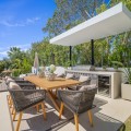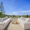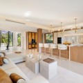 - Boasting unparalleled architecture and unrivalled construction quality, this exquisite contemporary villa offers sophisticated modern living in the heart of Marbella’s prestigious Golf Valley. Set on a private plot within a secure community, it enjoys breathtaking panoramic frontline views over the Los Naranjos Golf Course. Ideally located in one of Marbella’s most sought-after areas, this remarkable residence is surrounded by top restaurants, sports clubs, international schools, supermarkets, and is just minutes from the beach and the iconic Puerto Banús marina. This unique home spans 5 floors of state-of-the-art luxury, welcoming you into an expansive open-plan living area complemented by a custom-designed gourmet kitchen, complete with a natural stone island, casual seating, and a bespoke wine display. Large windows and sliding doors seamlessly connect the interior spaces with sun-drenched terraces, a striking infinity-edge pool, and lush tropical gardens. The villa offers 6 beautifully appointed bedrooms, including a magnificent master suite occupying the entire first floor. The master features spacious walk-in wardrobes, an elegant marble bathroom with a rounded bathtub, a private office, and access to an expansive private terrace with commanding sea and golf views. Designed for an exceptional lifestyle, this residence also features a stunning rooftop terrace, a fully equipped spa and private gym, an indoor heated pool, a cinema room, and its own putting green area — offering one of the most distinctive and luxurious homes on the market. Additional amenities include a private elevator, a garage for 2 cars, and a carport for 2 more vehicles.