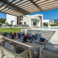 - An exceptional frontline golf Villa for sale in Las Brisas. This property offers a luxurious living experience with modern design and natural beauty. This stunning villa offers a thoughtfully crafted design by a renowned architect and is developed by a top-tier developer known for impeccable standards and attention to detail. Situated frontline golf of Las Brisas Golf Club in Nueva Andalucía, the location is one of the standout features. Las Brisas is known for its tranquil residential setting, beautiful landscapes, and proximity to top Marbella amenities. Nueva Andalucía blends tranquillity with convenience, offering easy access to the vibrant Puerto Banús, famous for its luxury marina, high-end shopping, and fine dining. Residents enjoy a serene atmosphere within a well-established neighbourhood while being a short drive from Marbella’s bustling heart. Located on a generous plot of 1,454 square metres, it spans 627 square metres across three levels. This property features five spacious bedrooms, each with its own en-suite bathroom, and an additional toilet, ensuring ample space and privacy for family and guests. The villa’s design impresses with high ceilings, expansive windows, and premium materials throughout. Upon entering, the villa reveals an inviting atmosphere where warm tones and elegant finishes blend seamlessly. The large archway and lead lights create a sense of grandeur, while wooden doors add rustic charm. The main living area is both functional and aesthetically pleasing, with an open-plan layout maximising space and light. Hidden warm LED lighting adds a cosy ambience, and high windows frame breathtaking views of La Concha mountain, the golf course, and a serene lake with a fountain. The kitchen is a highlight, equipped with high-end appliances and ample storage. It features an oversized kitchen island, ideal for casual dining or entertaining. The kitchen overlooks the infinity pool and jacuzzi, offering stunning views of the golf course and lush landscape. The outdoor spaces are equally impressive, with a private pool, a fire pit, and a covered area for an outdoor kitchen, perfect for alfresco dining. The villa’s garden is meticulously landscaped, providing a beautiful and functional outdoor space. The property enjoys sunlight throughout the day, making it ideal for relaxing or entertaining. The front-line golf location offers a unique advantage, providing unobstructed views of the well-maintained golf course and surrounding nature, ensuring privacy with no risk of errant golf balls. In the basement, it continues to impress with a fully fitted techno gym, a sauna, and a steam room, creating a private wellness retreat. The basement also features a second living room with full windows that let in natural light, eliminating the typical basement feel. This space includes a bar with a stone wall backsplash, a home cinema, and additional bedrooms, making it a versatile area for relaxation and entertainment. The staircase is a work of art, with hidden lights and beautifully designed steps adding to the villa’s elegance. The property is designed to offer a blend of luxury and comfort, with every detail thoughtfully considered to create a harmonious living environment. It is more than just a home; it is a sanctuary where modern luxury meets natural beauty. The developer’s commitment to quality and the architect’s vision have created a property offering an unparalleled living experience. With its prime location, exceptional design, and extensive amenities, it is set to be one of the most sought-after properties in the area. Whether you are a golf enthusiast or simply appreciate fine living, this villa offers a lifestyle that is both luxurious and deeply connected to its beautiful surroundings. Villa, Frontline Golf, Equipped Kitchen, Parking: Covered, Pool: Private, Garden: Private, Facing: Southeast Views: Countryside, Courtyard, Garden, Golf, Mountains, Pool Features: 5-10 minutes to Golf Course, Air Conditioning Hot/Cold, Alarm System, Basement, Close to schools, Completely Equipped Kitchen, Contemporary style, Conveniently Situated for Golf, Conveniently Situated Schools, Covered Terrace, Double Glazing, Electric Entry Phone, En suite bathroom, Fitted Wardrobes, Frontline Golf, Games Room, Garden and Pool View, Guest Wardrobe, Gym, Intelligence System, Jacuzzi, Kitchen diner, Landscaped Gardens, Luminous, Luxury Fittings, Modern Style, Mountain View, Near Transport, Newly Built, Private pool, Smart Home, Solar Heated Water, Sought After Area, Spacious Accommodation, Storage room, Subtropical Gardens, Underfloor Heating, Walking distance to rest., Walking distance to shops