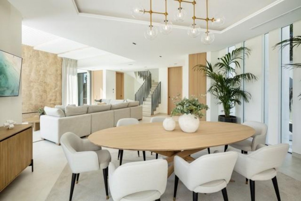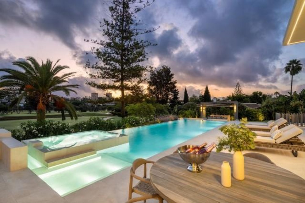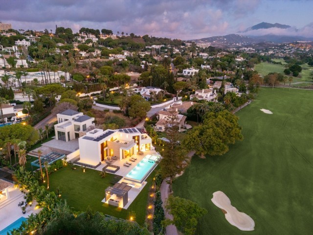 - An exceptional frontline golf Villa for sale in Las Brisas. This property offers a luxurious living experience with modern design and natural beauty. This stunning villa offers a thoughtfully crafted design by a renowned architect and is developed by a top-tier developer known for impeccable standards and attention to detail. Situated frontline golf of Las Brisas Golf Club in Nueva Andalucía, the location is one of the standout features. Las Brisas is known for its tranquil residential setting, beautiful landscapes, and proximity to top Marbella amenities. Nueva Andalucía blends tranquillity with convenience, offering easy access to the vibrant Puerto Banús, famous for its luxury marina, high-end shopping, and fine dining. Residents enjoy a serene atmosphere within a well-established neighbourhood while being a short drive from Marbella’s bustling heart. Located on a generous plot of 1,454 square metres, it spans 627 square metres across three levels. This property features five spacious bedrooms, each with its own en-suite bathroom, and an additional toilet, ensuring ample space and privacy for family and guests. The villa’s design impresses with high ceilings, expansive windows, and premium materials throughout. Upon entering, the villa reveals an inviting atmosphere where warm tones and elegant finishes blend seamlessly. The large archway and lead lights create a sense of grandeur, while wooden doors add rustic charm. The main living area is both functional and aesthetically pleasing, with an open-plan layout maximising space and light. Hidden warm LED lighting adds a cosy ambience, and high windows frame breathtaking views of La Concha mountain, the golf course, and a serene lake with a fountain. The kitchen is a highlight, equipped with high-end appliances and ample storage. It features an oversized kitchen island, ideal for casual dining or entertaining. The kitchen overlooks the infinity pool and jacuzzi, offering stunning views of the golf course and lush landscape. The outdoor spaces are equally impressive, with a private pool, a fire pit, and a covered area for an outdoor kitchen, perfect for alfresco dining. The villa’s garden is meticulously landscaped, providing a beautiful and functional outdoor space. The property enjoys sunlight throughout the day, making it ideal for relaxing or entertaining. The front-line golf location offers a unique advantage, providing unobstructed views of the well-maintained golf course and surrounding nature, ensuring privacy with no risk of errant golf balls. In the basement, it continues to impress with a fully fitted techno gym, a sauna, and a steam room, creating a private wellness retreat. The basement also features a second living room with full windows that let in natural light, eliminating the typical basement feel. This space includes a bar with a stone wall backsplash, a home cinema, and additional bedrooms, making it a versatile area for relaxation and entertainment. The staircase is a work of art, with hidden lights and beautifully designed steps adding to the villa’s elegance. The property is designed to offer a blend of luxury and comfort, with every detail thoughtfully considered to create a harmonious living environment. It is more than just a home; it is a sanctuary where modern luxury meets natural beauty. The developer’s commitment to quality and the architect’s vision have created a property offering an unparalleled living experience. With its prime location, exceptional design, and extensive amenities, it is set to be one of the most sought-after properties in the area. Whether you are a golf enthusiast or simply appreciate fine living, this villa offers a lifestyle that is both luxurious and deeply connected to its beautiful surroundings. Villa, Frontline Golf, Equipped Kitchen, Parking: Covered, Pool: Private, Garden: Private, Facing: Southeast Views: Countryside, Courtyard, Garden, Golf, Mountains, Pool Features: 5-10 minutes to Golf Course, Air Conditioning Hot/Cold, Alarm System, Basement, Close to schools, Completely Equipped Kitchen, Contemporary style, Conveniently Situated for Golf, Conveniently Situated Schools, Covered Terrace, Double Glazing, Electric Entry Phone, En suite bathroom, Fitted Wardrobes, Frontline Golf, Games Room, Garden and Pool View, Guest Wardrobe, Gym, Intelligence System, Jacuzzi, Kitchen diner, Landscaped Gardens, Luminous, Luxury Fittings, Modern Style, Mountain View, Near Transport, Newly Built, Private pool, Smart Home, Solar Heated Water, Sought After Area, Spacious Accommodation, Storage room, Subtropical Gardens, Underfloor Heating, Walking distance to rest., Walking distance to shops