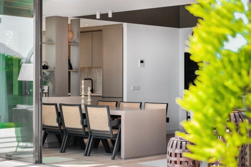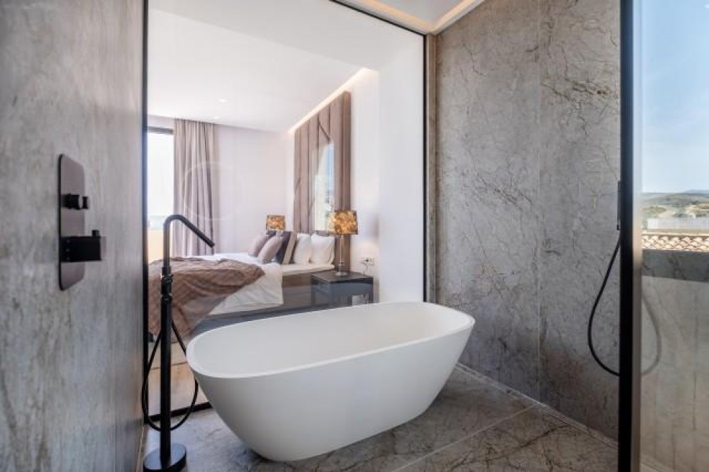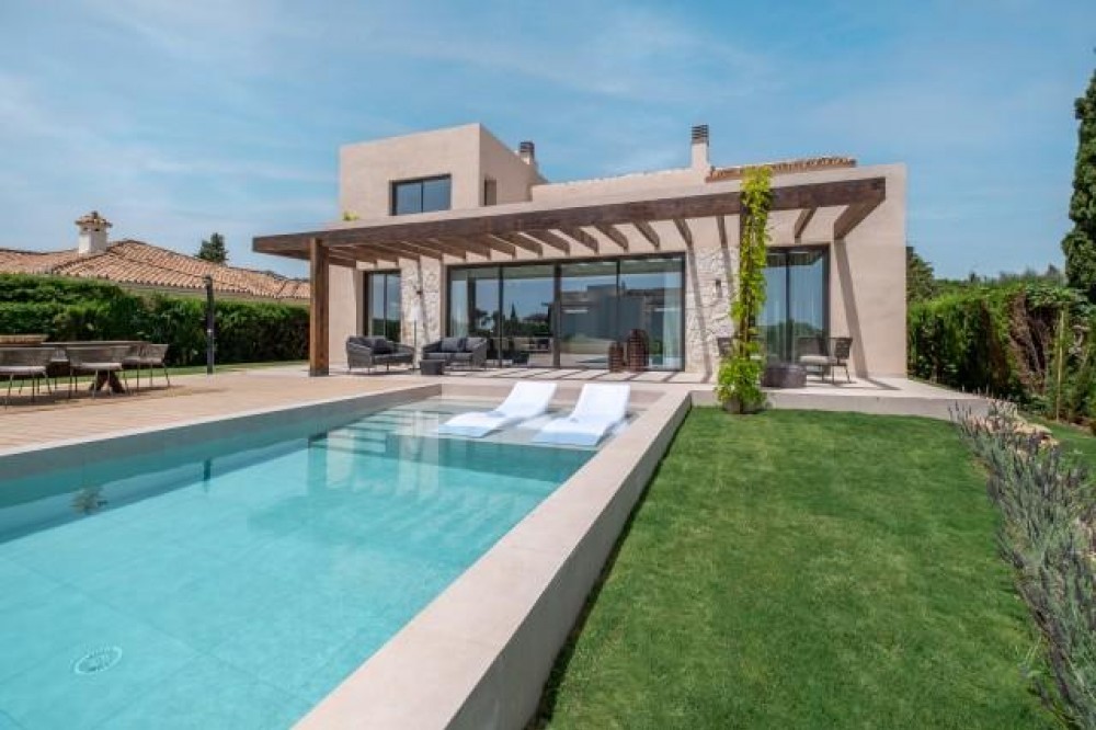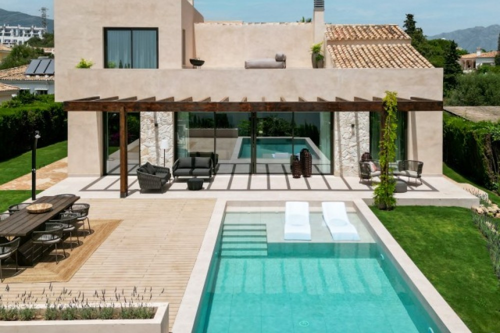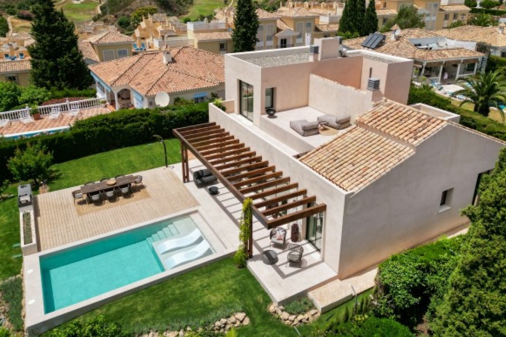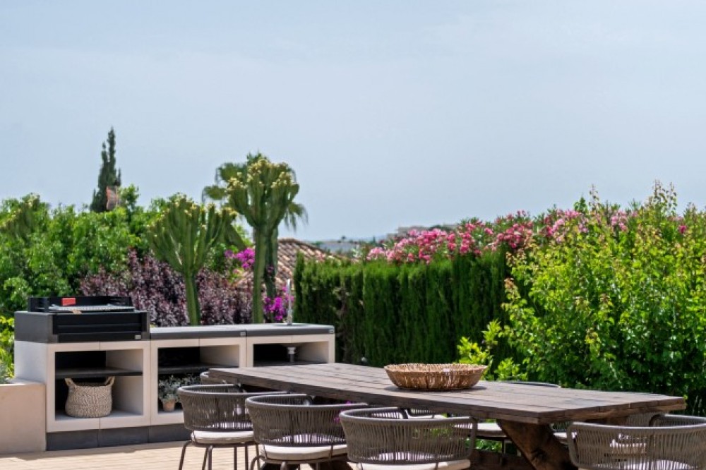 - An Elegant Mediterranean-Inspired Villa in Paraiso Alto, Benahavís We are delighted to present this beautifully renovated 4-bedroom villa located in the prestigious enclave of Paraiso Alto, Benahavís—just a 10-minute drive from Puerto Banús and the golden beaches of the Costa del Sol. Blending modern luxury with Mediterranean charm, this Ibizan-style villa enjoys a peaceful, elevated position with stunning sea views and a seamless connection between indoor and outdoor living. Set within a lush, tranquil neighbourhood known for its exclusivity and proximity to top amenities, this home offers the perfect balance of sophistication and convenience. The interiors are bright and airy, featuring an open-plan layout with floor-to-ceiling windows, a stylish living room with a cosy fireplace, and a dedicated dining area. The fully fitted kitchen is both sleek and functional, equipped with premium appliances. Four generous bedrooms—two of which are en-suite—provide comfort and privacy, complemented by a guest cloakroom for added practicality. Outside, the villa truly comes into its own. A covered terrace flows onto a landscaped garden with an infinity pool and built-in sunbeds—perfect for soaking in the panoramic Mediterranean views. Thoughtfully designed outdoor amenities include a sun deck, pergola, BBQ area, and a chill-out zone, ideal for entertaining. For magical evenings, the sunset terrace offers a moonlit cinema experience under the stars. Further highlights include underfloor heating in bathrooms, a cutting-edge security system, and easy access to renowned golf courses such as El Paraiso Golf Club. Excellent dining, shopping, and international schools are all within close reach, including Aloha College and the International School of Estepona. With excellent transport links to Marbella and Estepona, this stunning property combines refined living with an unbeatable location—an outstanding opportunity for those seeking the quintessential Mediterranean lifestyle in style and privacy.