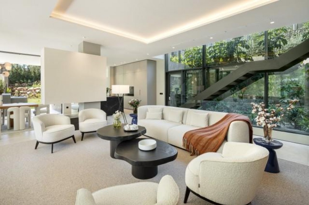 • Exceptional Eco-Luxury Villa for Sale in La Cerquilla – Fully Furnished and Ready to Move In We are proud to present this extraordinary, fully furnished villa in the prestigious residential enclave of La Cerquilla, Marbella. A true architectural gem, this newly built residence marries sustainable design with modern elegance, offering a luxurious lifestyle in perfect harmony with its lush, natural surroundings. Crafted using organic materials and thoughtfully integrated into the landscape, the villa spans three levels plus a rooftop terrace, delivering exceptional comfort, privacy, and flexibility for modern family living or entertaining. Ground Floor The main level offers beautifully arranged living spaces, including a bright open-plan lounge, high-spec Gaggenau kitchen with island, dining area, and a TV room/study. A spacious en-suite guest bedroom completes this level, which flows seamlessly onto expansive terraces. Outside, you’ll find an outdoor kitchen, lounge, dining area, and a saltwater infinity pool—all designed for alfresco living at its finest. First Floor The first floor is home to the stunning principal suite with a walk-in wardrobe, alongside two further en-suite bedrooms. The layout is adaptable, allowing for remodelling to suit personal requirements. Rooftop Terrace An idyllic retreat with far-reaching views, the rooftop is equipped with lounge seating, a fire pit, a jacuzzi, and pre-installation for an additional outdoor kitchen—ideal for sunset entertaining or private relaxation. Lower Ground Floor The basement offers outstanding leisure facilities, including a spa with sauna and Hammam, a gym, a games room, and a home cinema/TV lounge with kitchenette pre-installation. Two additional bedrooms are located here—one en-suite, and one that shares a bathroom with the gym. This level offers excellent flexibility for guests, staff accommodation, or bespoke reconfiguration. Features Include: Pre-installed solar panels for sustainable energy use Zoned underfloor heating throughout Advanced home automation system, controlled via mobile app Top-of-the-line fittings from Villeroy & Boch and Grohe Seamless tech integration including curtain motorisation pre-wiring and custom TV placements Infinity saltwater pool Secure gardener access to equipment rooms, maintaining full privacy for residents All furnishings included in the price This is an exquisite turnkey home, ideal for discerning buyers seeking luxury, sustainability, and complete tranquillity in one of Marbella’s most exclusive gated communities. Contact us today to arrange a private viewing.