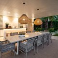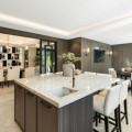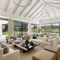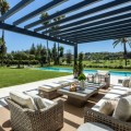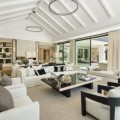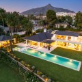 - An Exceptional Frontline Golf Villa in the Heart of Nueva Andalucía We are delighted to present Villa Solstice, a truly magnificent west-facing villa enjoying a frontline position to the prestigious Las Brisas Golf Club—one of Marbella’s most sought-after private members-only golf courses. Perfectly situated in the heart of Nueva Andalucía’s Golf Valley, this exquisite residence offers an enviable blend of timeless elegance, modern luxury, and a location second to none. Set amidst beautifully landscaped gardens, the outdoor space has been masterfully designed to embrace the Mediterranean lifestyle. The meticulously manicured grounds feature a stunning private swimming pool, complemented by a sunken chill-out lounge, ideal for both relaxation and stylish entertaining. A charming pergola houses a custom-designed bar and an alfresco dining area, providing the perfect setting for gatherings with family and friends whilst enjoying breathtaking sunsets that give the villa its name. Step inside and you are immediately welcomed by a calming, sophisticated interior. The home is finished with elegant Crema Sara marble flooring throughout and a soft, neutral colour palette that enhances the sense of space and serenity. Architectural details such as the striking triangular ceiling design in the main living area create an airy, open-plan atmosphere, perfect for both relaxed living and entertaining on a grand scale. The bespoke kitchen is a chef’s delight—fitted with top-of-the-line appliances, extensive cabinetry, and generous countertop space, marrying functionality with style. Adjacent lies a refined dining area that opens seamlessly onto the lounge and outdoor terraces, ensuring a continuous flow between indoor and outdoor living. The villa offers a selection of beautifully appointed guest bedrooms, each with its own en-suite and positioned across the ground and lower levels for maximum comfort and privacy. The upper floor is entirely devoted to the master suite—an indulgent private retreat featuring an expansive walk-in wardrobe, a luxurious bathroom, and access to a private terrace with sweeping views over the golf course. The lower level is a sanctuary of leisure and wellness, boasting a fully equipped spa with an indoor pool, sauna, and Turkish bath. There is also a dedicated cinema room and an entertainment lounge, offering residents the ultimate in comfort and recreation. Additional features include a secure private garage with space for three vehicles and a private driveway for added convenience. With its unparalleled location, refined finishes, and comprehensive range of luxury amenities, Villa Solstice is a rare gem that combines the tranquillity of frontline golf living with easy access to an array of top-tier amenities, including international schools, fine dining, shopping, Puerto Banús, and the famed Marbella Golden Mile.