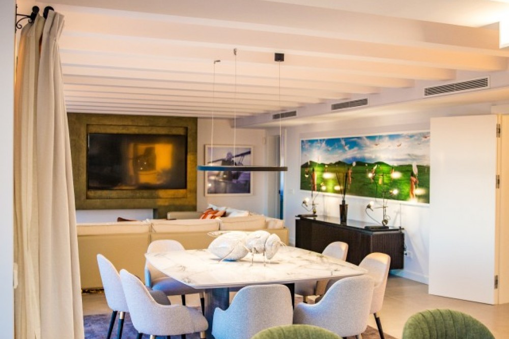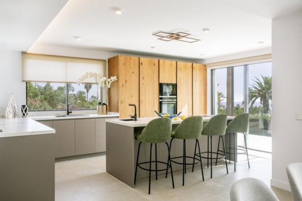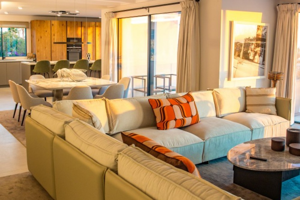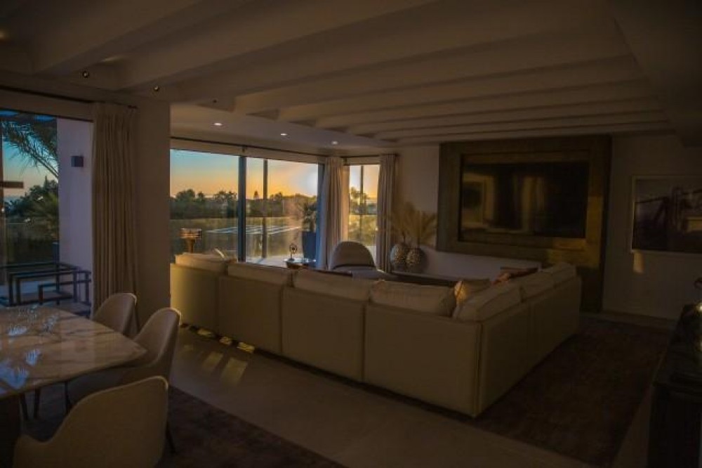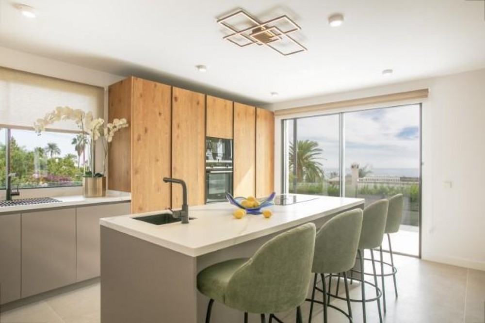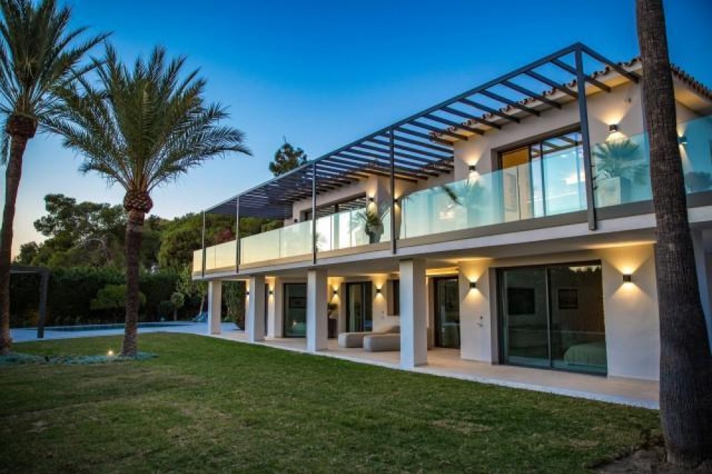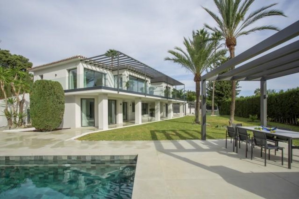 - A Refined and Sustainable Villa on Marbella’s Golden Mile We are proud to present this impeccably renovated five-bedroom villa, set in one of Marbella’s most exclusive residential enclaves along the prestigious Golden Mile. This exceptional home offers the perfect blend of luxury, privacy, and sustainability, all just moments from Marbella’s vibrant town centre and the renowned Swan School. Positioned on an elevated south-west facing plot, the villa has been thoughtfully designed to maximise natural light, sea views, and seamless indoor-outdoor living. The open-plan main living area is both elegant and inviting, featuring a modern fireplace and direct access to a spacious terrace—perfect for alfresco dining while enjoying the region’s spectacular sunsets. The kitchen is a true centrepiece of the home, designed with refined finishes, a central island, and premium appliances. It offers a flawless fusion of form and function, ideal for everyday living and entertaining alike. The property comprises five beautifully appointed bedrooms, each finished in a neutral, calming palette with high-quality materials throughout. The principal suite offers serene garden or sea views, with generous wardrobe space and a stylish en-suite bathroom. Outside, the landscaped gardens provide a tranquil haven complete with a private swimming pool and multiple chill-out areas, offering a true resort-like feel. Sustainability is a cornerstone of the home’s design, with features including solar energy systems and a greywater recycling tank for irrigation—an environmentally conscious choice that complements the villa’s contemporary credentials. Security is also of the highest standard, with 12-hour patrol services and further enhanced measures already approved for peace of mind. Additionally, the property includes approximately 40 m² of unused gross construction area, providing exciting potential for future expansion or personalisation. With its harmonious blend of modern comfort, thoughtful eco-friendly design, and unrivalled location on the Golden Mile, this villa is a rare opportunity to own a home that truly embodies the best of Mediterranean living.