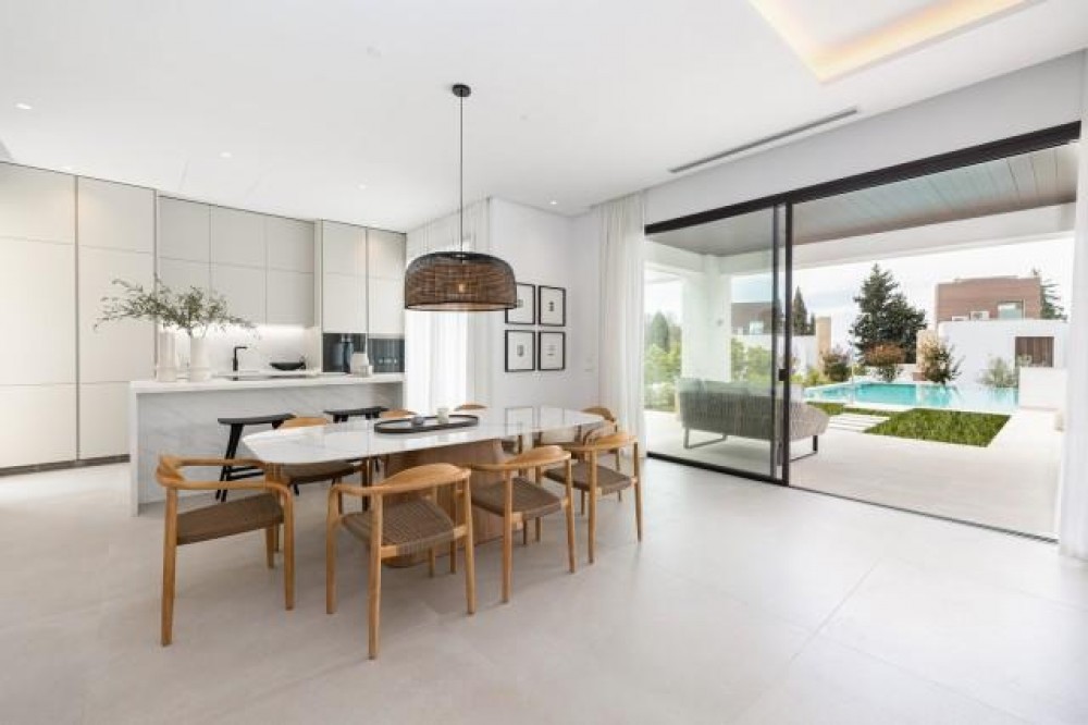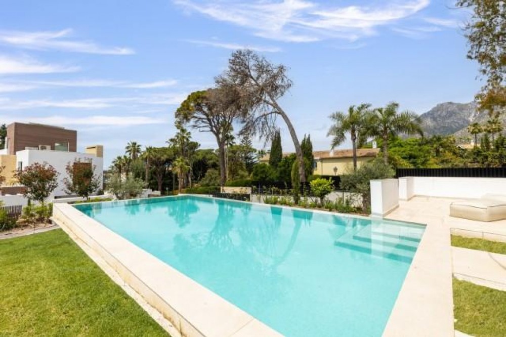 - Brand new furniture included. Price reduced from 5.400.000 to 4.500.00 for a quick sale. Welcome to this villa within a newly completed (2023) development nestled in the prestigious area of Marbella's Golden Mile. This exclusive gated community, designed by the renowned architect Ernesto Palanco, offers a serene oasis of greenery and peace, yet is conveniently close to the promenade and beach. It is a private community consisting of only 15 distinct villas. With 24-hour security guards and concierge services, residents can enjoy the utmost privacy and security. Situated between parks and within walking distance of various amenities, it is a 15-minute walk to La Fontanilla Playa and its promenade, a 20-minute walk to Marbella's Old Town, and a short drive to the Marbella Club Hotel, Puente Romano, and Swans International School. And being positioned on the highest plot in the community, this villa offers a prime spot. The villa features three levels with lift access. The ground floor boasts an open-plan living room with an elegant kitchen equipped with Gaggenau appliances, a guest bedroom with an en-suite bathroom, and a guest toilet. The living room seamlessly connects to the outdoor area and overlooks the swimming pool (heated). On the second floor, the master suite includes a spacious terrace, a dedicated wardrobe area, and a luxurious bathroom with floor-to-ceiling windows. Two additional en-suite bedrooms offer generous bathrooms, ample wardrobe space, and equally elegant furniture. The basement is an absolute highlight, featuring a cinema room, winery, steam and sauna room, shower, workout room, lounge area, laundry room, and guest toilet. The solarium includes a jacuzzi and outdoor kitchen, perfect for entertaining and relaxation. From there, you can enjoy stunning views of the sea and the mountain. The villa is fully controlled by a Smart Home panel, providing modern convenience and control over the property's various features. Positioned on the highest plot in the community, this villa offers prime spot and privacy. The garage has ample space for several cars. Villa, Walking distance to the beach, Fitted Kitchen, Parking: Garage, Pool: Private, Garden: Private, Facing: South and West Views: Garden, Mountains, Pool, Sea Features: 2 Parking Places, 24 Hour Reception, 24 hrs Security System, Air Conditioning Hot/Cold, Barbecue, Central Heating, Close to all Amenities, Close to schools, Contemporary style, Covered Terrace, En suite bathroom, Excellent Condition, Fireplace, Fitted Kitchen, Fitted Wardrobes, Games Room, Garage, Garden and Pool View, Gated Complex, Guest Wardrobe, Gym, Heated Outdoor Pool, Intelligence System, Investment Property, Jacuzzi, Laundry room, Lift, Luminous, Luxury Fittings, Near amenities, Near Church, Near Transport, Optical fiber / ADSL, Private pool, Private Terrace, Sauna, Sea Views, Smart Home, Solar Heated Water, Solarium, Solarium and Jacuzzi, Sought After Area, Spacious Accommodation, Storage room, Stylish Accommodation, Underfloor Heating, Underfloor Heating-bathrooms, Utility Room, Walking distance to beach, Walking Distance to Cafés, Walking distance to rest., Walking distance to shops, Walking distance to t. centre, Wine Cellar