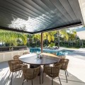 - Impeccably Renovated Five-Bedroom Villa in the Prestigious Hacienda Las Chapas, Marbella We are delighted to present this exceptional five-bedroom villa, recently renovated to the highest of standards and nestled within the elite gated community of Hacienda Las Chapas—widely regarded as the most distinguished villa district in Marbella’s eastern region. Offering a superb combination of contemporary luxury and classic Mediterranean elegance, this exquisite residence is a true gem on the Costa del Sol. Set within a beautifully landscaped plot of 1,562 m², adorned with over 50 graceful palm trees, the villa provides 717 m² of stylish and spacious living. The open-plan kitchen, appointed with premium appliances and sleek finishes, seamlessly flows into the expansive living and dining areas—creating a bright, welcoming space ideal for both entertaining and relaxed day-to-day living. Floor-to-ceiling windows allow natural light to flood the interiors and open directly onto generous outdoor terraces, where a state-of-the-art bio-climatic electric pergola provides both shade and architectural flair. The heated swimming pool—reaching temperatures of up to 35°C during the winter months—is perfectly positioned for privacy and tranquillity, surrounded by mature tropical landscaping. This splendid home further benefits from underfloor heating throughout, air conditioning, a private gym, and a sophisticated games room complete with a pool table. A large covered carport accommodates up to five vehicles and offers direct access into the residence. Situated in a secure, gated community with 24-hour surveillance, this sought-after location combines privacy and prestige with proximity to every convenience. Marbella’s finest white sandy beaches, exclusive beach clubs, renowned five-star hotels, and a variety of celebrated restaurants are all within easy reach. The charming yachting marina of Cabopino is just moments away, while top-tier tennis clubs and shopping facilities are accessible on foot. Families will appreciate the proximity to some of the most prestigious international schools on the Costa del Sol, including the English International College, the Deutsche Schule (German School), and Colegio Ecos—all just a short drive away. This remarkable property is the epitome of elegant living in one of Marbella’s most desirable postcodes. Viewing is highly recommended to fully appreciate the exceptional quality and lifestyle on offer.
