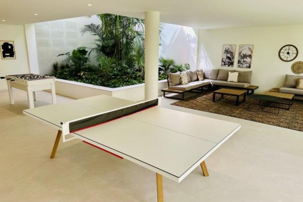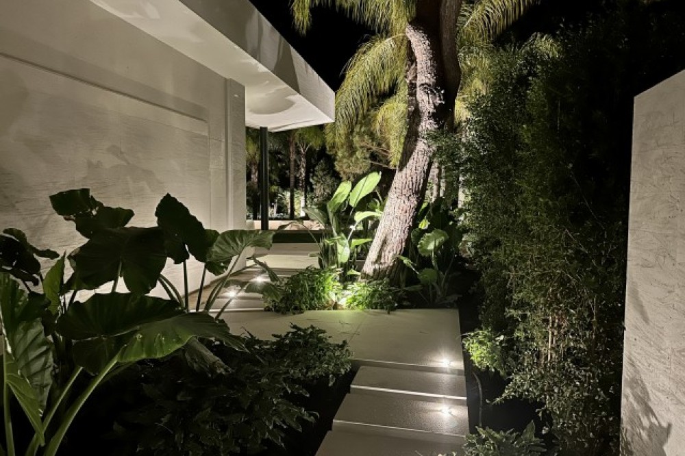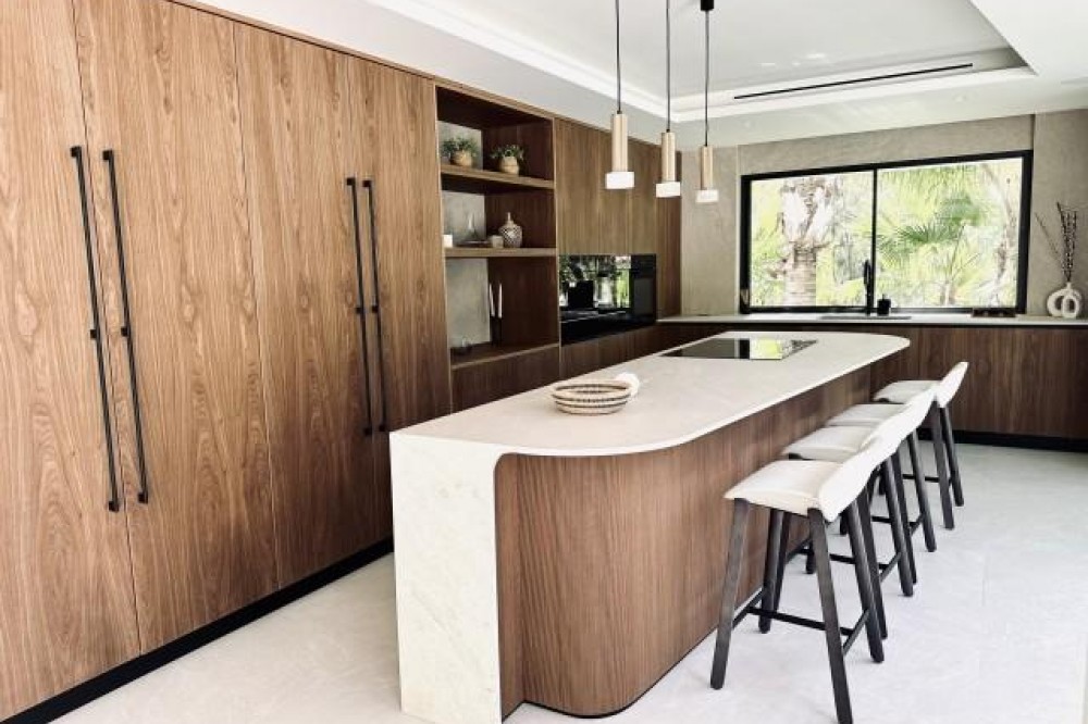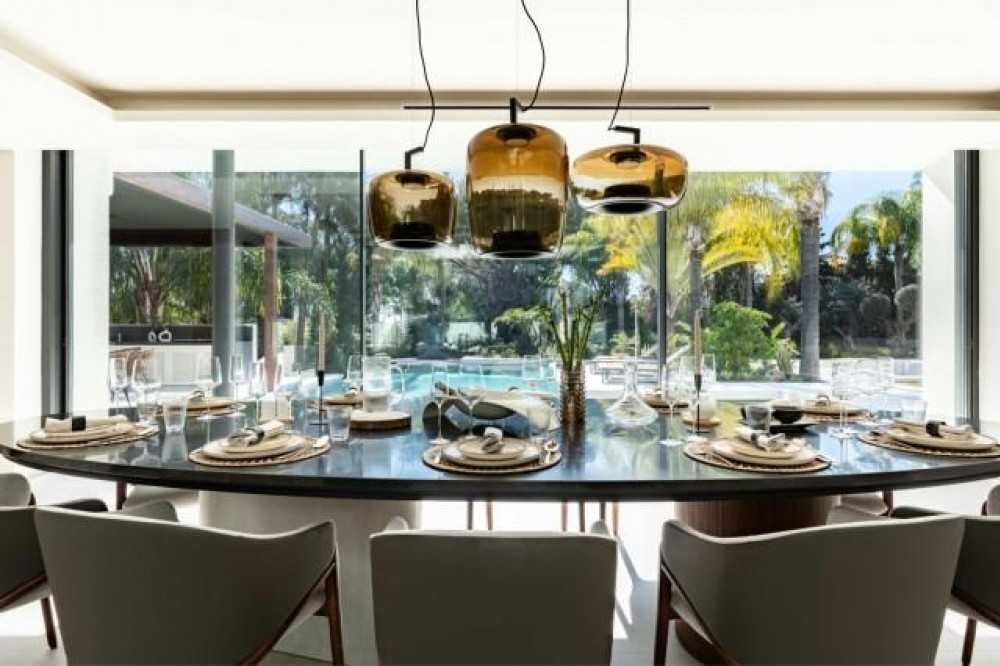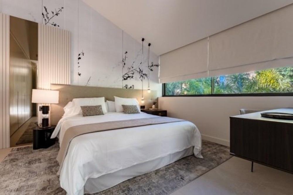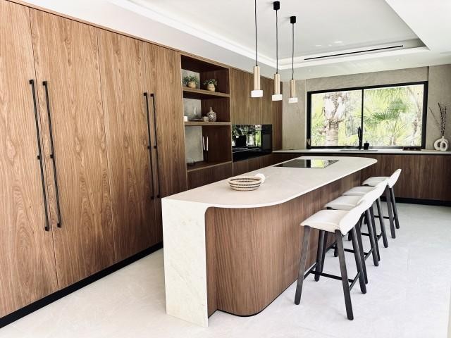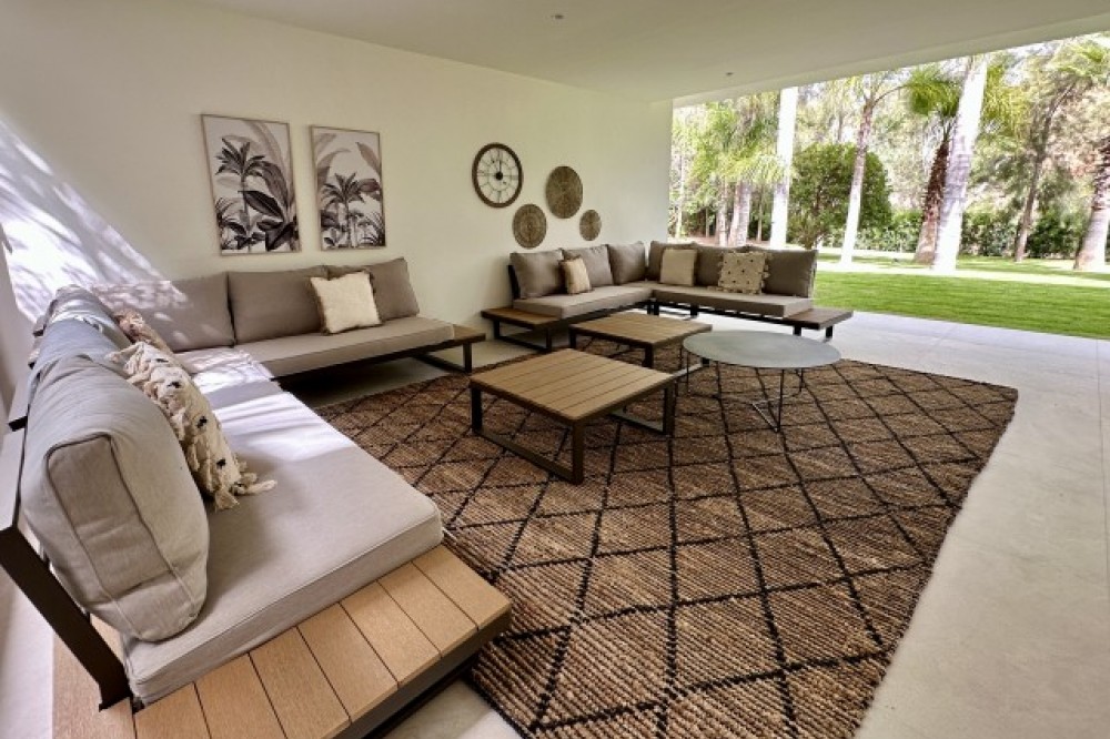 - Impeccably Renovated Five-Bedroom Villa in the Prestigious Hacienda Las Chapas, Marbella We are delighted to present this exceptional five-bedroom villa, recently renovated to the highest of standards and nestled within the elite gated community of Hacienda Las Chapas—widely regarded as the most distinguished villa district in Marbella’s eastern region. Offering a superb combination of contemporary luxury and classic Mediterranean elegance, this exquisite residence is a true gem on the Costa del Sol. Set within a beautifully landscaped plot of 1,562 m², adorned with over 50 graceful palm trees, the villa provides 717 m² of stylish and spacious living. The open-plan kitchen, appointed with premium appliances and sleek finishes, seamlessly flows into the expansive living and dining areas—creating a bright, welcoming space ideal for both entertaining and relaxed day-to-day living. Floor-to-ceiling windows allow natural light to flood the interiors and open directly onto generous outdoor terraces, where a state-of-the-art bio-climatic electric pergola provides both shade and architectural flair. The heated swimming pool—reaching temperatures of up to 35°C during the winter months—is perfectly positioned for privacy and tranquillity, surrounded by mature tropical landscaping. This splendid home further benefits from underfloor heating throughout, air conditioning, a private gym, and a sophisticated games room complete with a pool table. A large covered carport accommodates up to five vehicles and offers direct access into the residence. Situated in a secure, gated community with 24-hour surveillance, this sought-after location combines privacy and prestige with proximity to every convenience. Marbella’s finest white sandy beaches, exclusive beach clubs, renowned five-star hotels, and a variety of celebrated restaurants are all within easy reach. The charming yachting marina of Cabopino is just moments away, while top-tier tennis clubs and shopping facilities are accessible on foot. Families will appreciate the proximity to some of the most prestigious international schools on the Costa del Sol, including the English International College, the Deutsche Schule (German School), and Colegio Ecos—all just a short drive away. This remarkable property is the epitome of elegant living in one of Marbella’s most desirable postcodes. Viewing is highly recommended to fully appreciate the exceptional quality and lifestyle on offer.