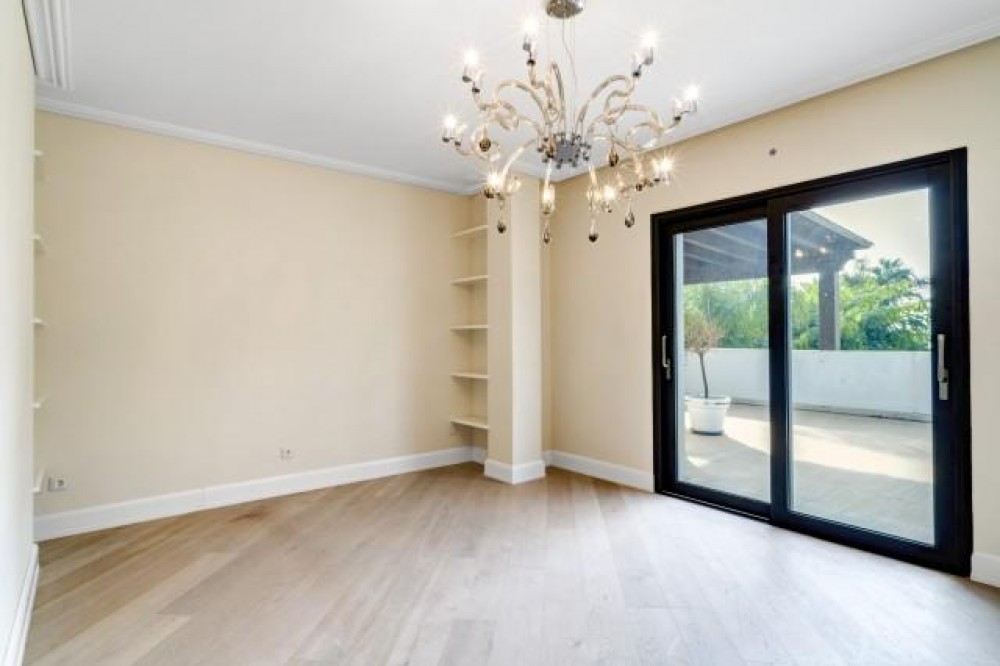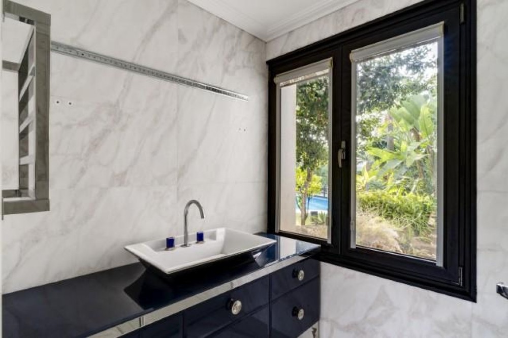 - Exceptional Six-Bedroom Luxury Villa in Lomas de Magna Marbella – Golden Mile We are delighted to present this wonderful six-bedroom southwest-facing villa, located within the exclusive Lomas de Magna Marbella development – one of the most prestigious and secure communities on Marbella’s famed Golden Mile. This elegant gated complex offers 24-hour security, two large communal swimming pools, and immaculately maintained tropical gardens of exceptional beauty. Superbly positioned just minutes from all essential amenities – including supermarkets, fine dining, boutique shopping, international schools, and world-class golf courses – this villa is also just a five-minute drive from Marbella’s golden beaches and the glamour of Puerto Banús. Accommodation is arranged over three expansive levels, offering both space and versatility: Main Floor – A welcoming entrance hall leads into a generous living area that opens directly onto a partially covered terrace, beautifully enhanced by lush tropical gardens with dedicated dining and chill-out zones. There is a private gate leading directly to the communal pool. This level also includes a large fully fitted kitchen, a bright en-suite guest bedroom, and a guest WC. First Floor – Three well-proportioned bedrooms, all with en-suite bathrooms, enjoy access to a sun-drenched terrace with partial views of the Mediterranean Sea. Lower Ground Level – Designed for both relaxation and entertainment, the basement includes two further bedrooms with en-suite facilities, a spacious games or cinema room, a laundry area, sauna, hammam, and a private garage accommodating up to four vehicles. An internal lift conveniently connects all three floors. Further features include underfloor heating, air conditioning, and top-quality materials throughout, underscoring the villa’s luxurious finish and craftsmanship. Please note: the villa is offered unfurnished, providing a unique opportunity for the new owner to personalise the interiors to their own taste and standards. An Outstanding Opportunity in a Prime Marbella Location Perfectly suited as a full-time residence, refined holiday home, or investment of distinction, this remarkable villa combines privacy, elegance, and unparalleled convenience on the Golden Mile. Viewings are highly recommended to fully appreciate the quality and potential of this magnificent home.