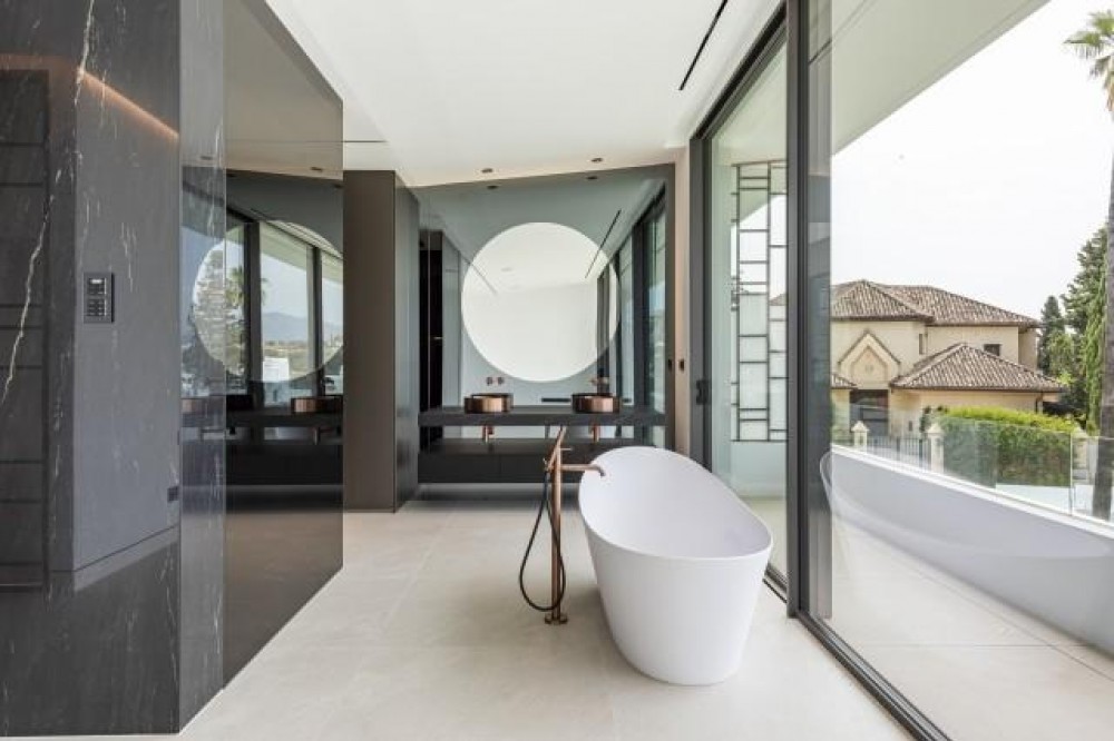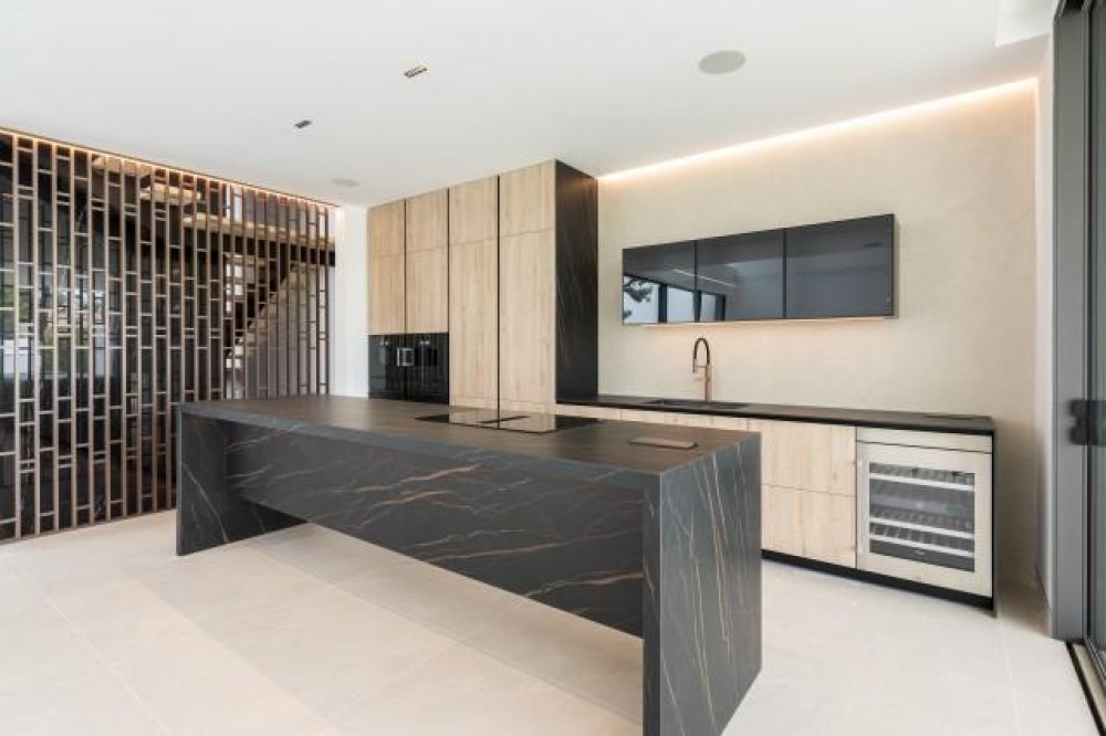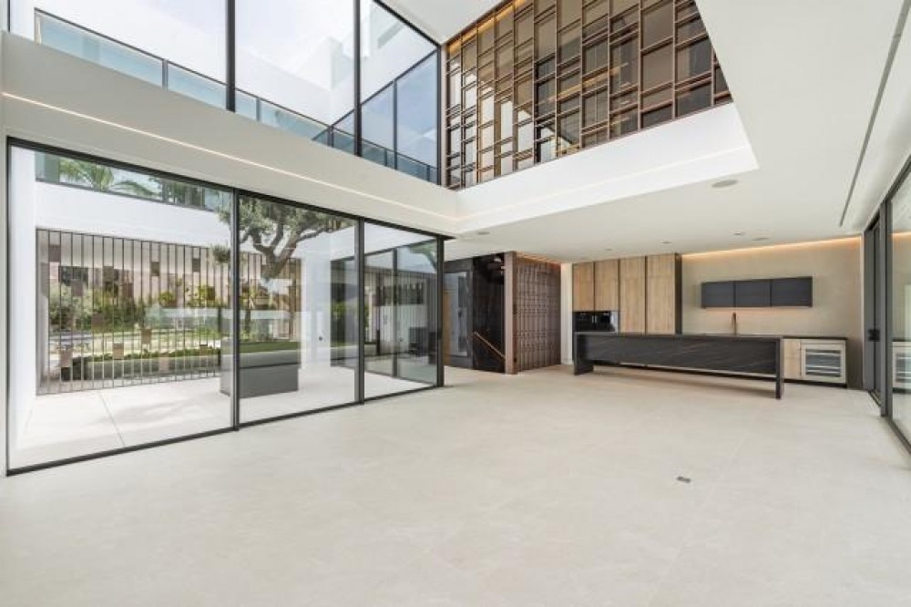 - Contemporary Semi-Detached Villa with Panoramic Views in Nueva Andalucía Nestled in the heart of Nueva Andalucía, one of Marbella’s most prestigious residential enclaves, this newly constructed semi-detached villa presents an exceptional opportunity to own a stylish and spacious home in a secure gated community. Surrounded by beautifully maintained communal gardens and just minutes from world-class golf courses, international schools, golden beaches, and the famed Puerto Banús marina, the location is second to none. Newly Built with Exceptional Design and Space Completed in December 2023, this south-facing villa boasts 612 m² of total built area, including 372 m² of elegant interior space and an impressive 240 m² of private terraces across four levels, seamlessly connected by an internal staircase. With a private plot of 91 m², the home has been designed to maximise natural light and flow, thanks to floor-to-ceiling windows and expansive sliding glass doors. Main Living Spaces The ground floor offers a bright and open-plan layout with a generous living and dining area, leading directly to a large sun-drenched terrace — perfect for entertaining or relaxing. The state-of-the-art kitchen features minimalist design and is fully fitted with top-of-the-range Gaggenau appliances, offering a clean and functional space for modern living. Bedrooms and Bathrooms The property comprises four bedrooms and five bathrooms, including three luxurious en-suite bathrooms and a guest WC. Three bedrooms are located on the upper floor, all designed for privacy and comfort. The fourth bedroom is on the lower level, ideal for guests, staff, or use as a home office or gym. Bathrooms are finished in elegant Porcelanosa marble, while the home features warm oak wood flooring and a calming neutral palette throughout. Spectacular Rooftop with Plunge Pool and Outdoor Cinema A standout feature of this property is the private rooftop solarium, complete with a heated plunge pool and a fully equipped outdoor cinema — an exceptional space to enjoy panoramic views of the Mediterranean Sea, La Concha Mountain, and Puerto Banús, or to host unforgettable gatherings under the stars. Additional Features and Amenities Three large underground parking spaces with direct access to the property Access to communal swimming pool and landscaped gardens High-quality materials and finishes throughout Air conditioning, underfloor heating, and home automation features Located in a peaceful gated community yet close to all key amenities A Lifestyle Investment in One of Marbella’s Finest Locations This property offers the perfect combination of privacy, design, and convenience. Whether as a permanent residence, a stylish holiday retreat, or a high-yield rental investment, this villa delivers exceptional value and appeal in one of Marbella’s most sought-after postcodes. Key Highlights: Newly built semi-detached villa in gated community South-facing with panoramic sea, mountain, and marina views Four bedrooms, five bathrooms including three en-suites Open-plan layout with Gaggenau kitchen and oak flooring Rooftop solarium with plunge pool and outdoor cinema Three underground garage spaces with private access Communal gardens and swimming pool Early viewing is highly recommended to appreciate the design, lifestyle, and value this property offers.