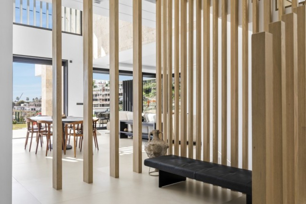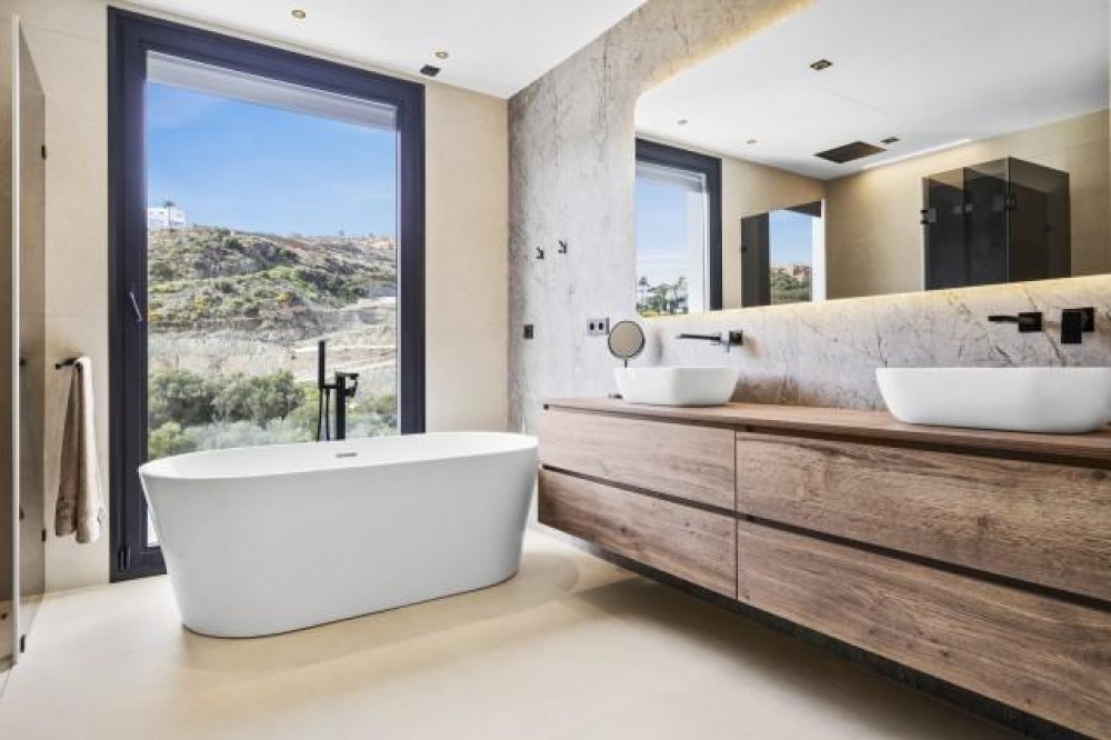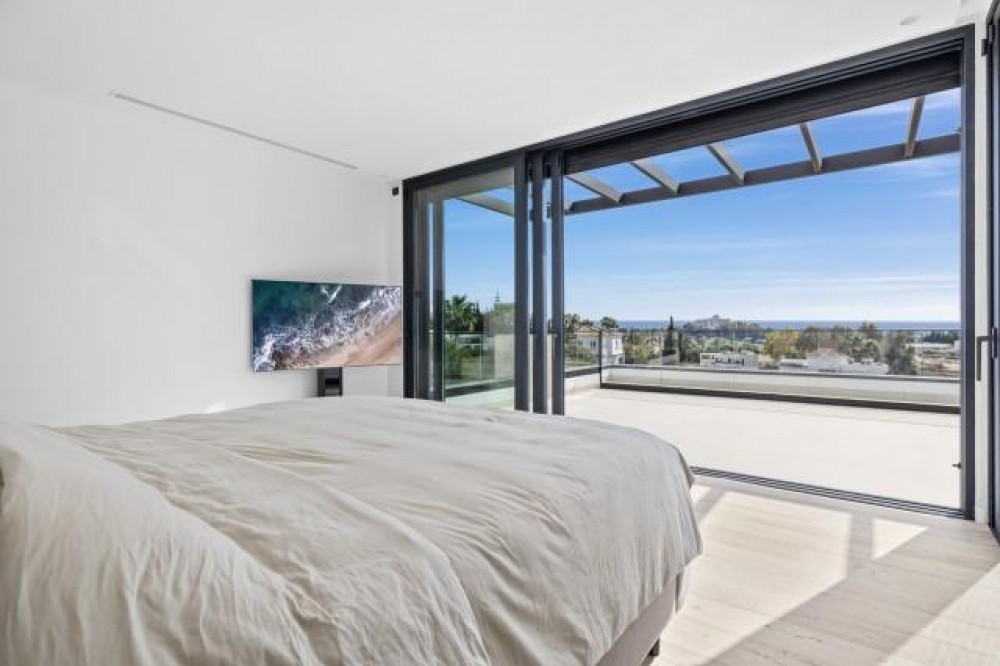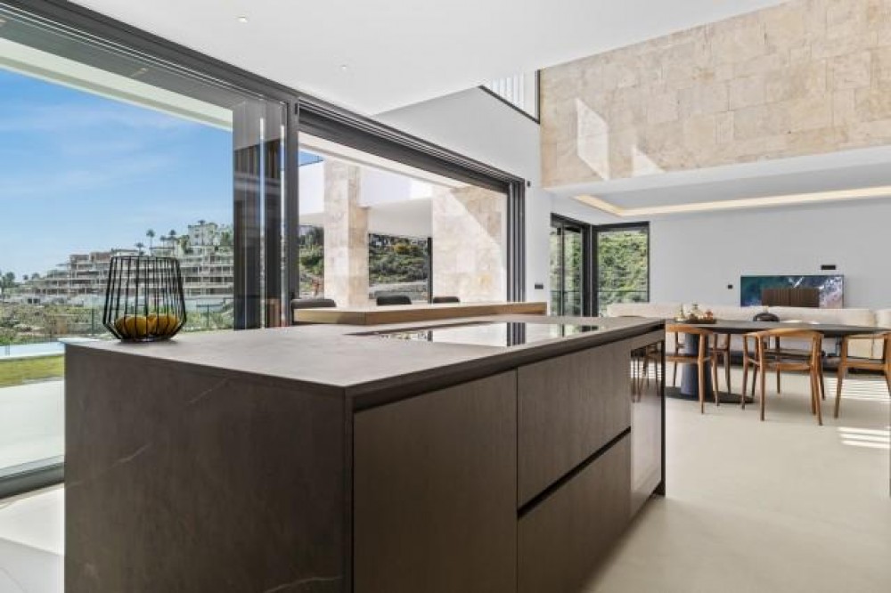 - Striking Contemporary Villa – La Alquería, Benahavís Introducing an exceptional modern residence in the prestigious enclave of La Alquería, Benahavís. Completed in 2024, this south-to-west facing villa occupies an elevated position, enjoying serene mountain vistas and partial sea views from the upper level. Just a short drive from the beach, San Pedro town centre, and a wealth of local amenities, it offers both privacy and convenience in equal measure. Set on a generous 1,238 m² plot, the property offers 573 m² of sophisticated living space plus 120 m² of terraces designed for seamless indoor-outdoor living. Main Level Welcoming entrance hall leading to a double-height living and dining area flooded with natural light. Open-plan Modulnova kitchen with breakfast bar and top-of-the-range Miele appliances. Separate laundry room. Guest cloakroom. Guest bedroom with en-suite bathroom. Direct access to covered and open terraces, landscaped gardens, and a heated saltwater swimming pool with pool cover. Upper Level Generous master suite with dressing area and private terrace. Two additional guest bedrooms, both en suite, each opening onto a terrace with partial sea views. Lower Level Versatile multipurpose space, ideal for leisure or entertainment. Guest cloakroom, storage rooms, and an integrated garage for two vehicles. Covered carport accommodating a further two cars. Specifications & Features Energy Efficiency: EPC rating A (32.13 kWh), 20 photovoltaic solar panels, Airzone climate control, underfloor heating throughout (water-based in living areas, electric in bathrooms). Smart Home: Elevator serving all floors, dimmable lighting, electric sun blinds with remote control, alarm system with cameras and smoke detectors linked to a control room. Water Systems: Water descaling system, 2,000-litre reserve tank. Parking: Garage for two vehicles, covered carport for two, plus an additional open carport. Pool: Heated saltwater pool with heat pump, pool cover, and outdoor shower. Kitchen Highlights: Modulnova kitchen with Quooker tap providing filtered chilled, boiling, and sparkling water; premium Miele appliances including induction hob with SmartControl, steam oven with water supply, integrated microwave, vacuum sealer, wine cabinet, and dishwasher with AutoDos system. Offered unfurnished, with the option to negotiate a tailored furniture package, this is a property that perfectly blends cutting-edge technology, energy efficiency, and contemporary design — all in one of Benahavís’ most sought-after addresses. AREA The beautiful mountain village of Benahavis has remained remarkably unspoilt, with its winding narrow lanes and whitewashed houses surrounding the village centre, which is packed full of superb restaurants. The cuisine is so important here that Benahavis has its own cookery school called the "Dieta Mediterranea". There are 9 golf courses in the area, one of which is La Zagaleta, a highly exclusive mansion club which contributes to Benahavis' status as the wealthiest municipality per capita in Andalucía. The road up to Benahavis town winds alongside the Guadalmina River where you can find some beautiful walking routes and river trails. Benahavis is ideal for anyone looking to buy a property somewhere peaceful but not out in the middle of nowhere. It is not over-built; it is surrounded by beautiful scenic countryside and hills, but it is just 5 minutes down the road to the beach.