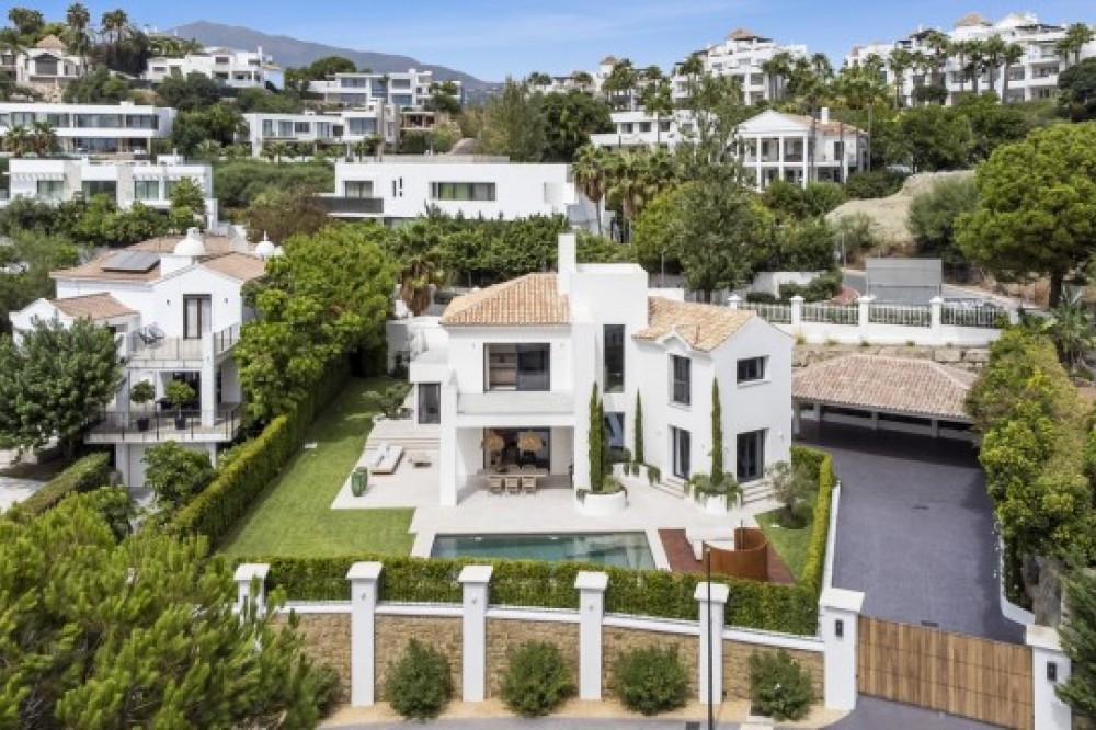 - Price reduced from 3.650.000 to 3.450.000 for a quick sale. Elegant, fully renovated 4-Bedroom Villa in La Alquería, Benahavís A beautifully designed 4-bedroom, 4-bathroom residence with an additional guest toilet, nestled in the sought-after gated community of La Alquería, Benahavís. Offering 24-hour security, this villa combines modern comfort, privacy, and style—perfect for those seeking a refined Mediterranean lifestyle. Step inside to a bright, open-plan layout featuring a fully fitted kitchen equipped with premium Miele appliances, flowing seamlessly into the spacious living and dining areas. Designed for year-round comfort, the villa includes air conditioning with heating, as well as underfloor heating in all bedrooms and bathrooms. Each of the four en-suite bedrooms is tastefully appointed, providing both comfort and privacy for residents and guests alike. Upstairs, a private terrace offers partial sea views, creating the ideal spot for morning coffee or evening relaxation. Outside, enjoy the lush, landscaped garden and private pool, as well as covered and open terraces, an outdoor kitchen with a BBQ, perfect for entertaining or unwinding in the sun. Additional features include a carport with space for three vehicles and ample storage. Whether you’re looking for a permanent home or a luxury retreat, it offers the perfect blend of tranquility, security, and modern living—just a short drive from Marbella and the coast. The furniture is included in the asking price! Villa, Close to Golf, Fitted Kitchen, Parking: Private, Pool: Private, Garden: Private, Facing: Southwest Views: Garden, Partial Sea, Pool Features: 2 Parking Places, 24 hrs Security System, 5-10 minutes to Golf Course, Air Conditioning Hot/Cold, Barbecue, Close to schools, Contemporary style, Conveniently Situated for Golf, Conveniently Situated Schools, Covered Terrace, En suite bathroom, Excellent Condition, Fitted Kitchen, Fitted Wardrobes, Furnished, Garden, Garden and Pool View, Gated Complex, Guest Wardrobe, Living room with dining area, Luminous, Luxury Fittings, Modern Style, Private pool, Private Terrace, Renovated, Smart Home, Spacious Accommodation, Storage room, Underfloor Heating-bathrooms