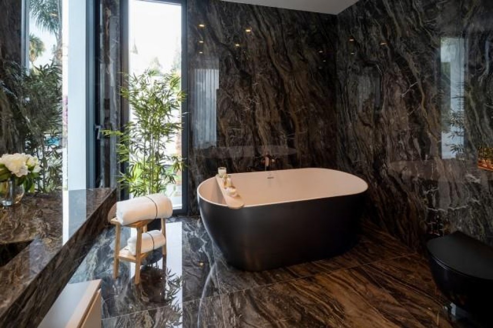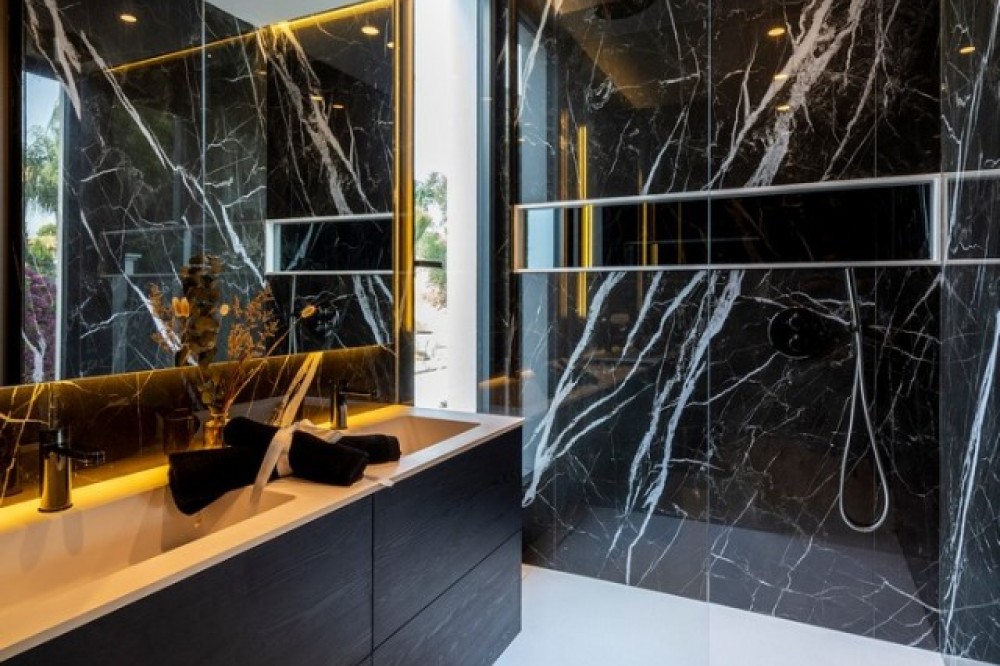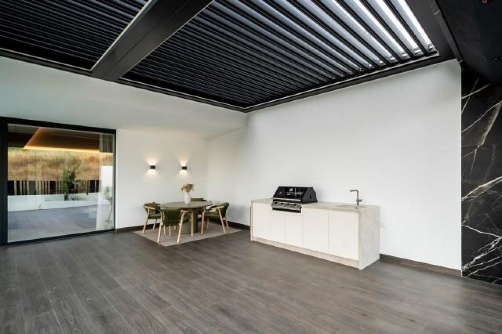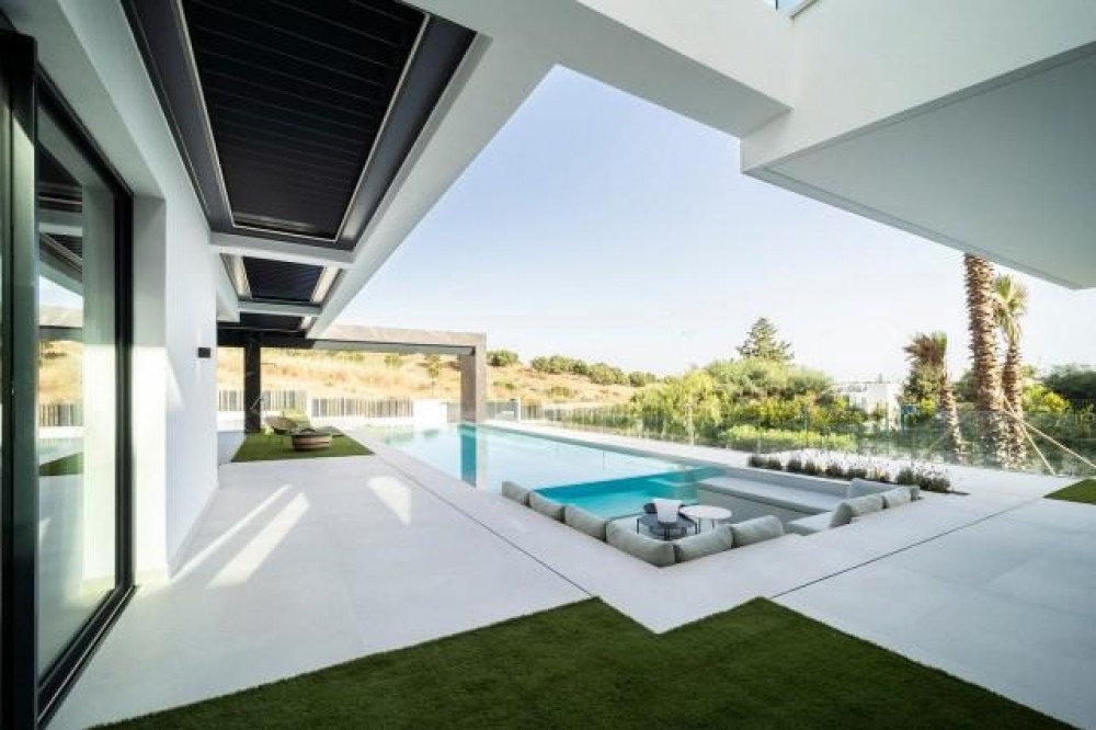 - This villa is a once-in-a-million opportunity, move-in ready and perfectly located in El Paraíso Alto, Estepona. Designed as a contemporary masterpiece, it blends elegance with functionality and offers premium finishes at every turn. Spanning 4 floors of beautifully designed living space on a 1,283 m² plot. Expansive open-plan living areas connect seamlessly through floor-to-ceiling glass panels, while the state-of-the-art kitchen with high-end appliances and sleek design make everyday living feel extraordinary. With six generous en-suite bedrooms and nine bathrooms in total, it offers significant space, privacy and comfort for large families or frequent entertaining. Stepping outside, you’re greeted by a landscaped garden and expansive terraces ideal for relaxed lounging or hosting. The star is the infinity pool, complete with a cascading water feature. Outdoors, you’ll also find a fully equipped al fresco kitchen to enjoy dining under the stars. There’s ample terrace and balcony space to soak in the panoramic views. A private garage is included, along with generous parking. Villa, Close to Golf, Fitted Kitchen, Underground parking, Pool: Private, Garden: Private, Facing: South Views: Garden, Pool Features: Air Conditioning Hot/Cold, Basement, Covered Terrace, Double Glazing, En suite bathroom, Fitted Kitchen, Fitted Wardrobes, Garden, Garden and Pool View, Guest Wardrobe, Gym, Landscaped Gardens, Near amenities, Near Transport, Newly Built, Private pool, Private Terrace, Sauna, Solarium, Underfloor Heating, Underground parking, Walking distance to beach, Walking Distance to Cafés, Walking distance to rest., Walking distance to shops