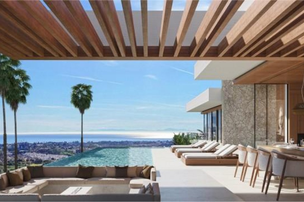 • Set within the secure gates of El Herrojo Alto in Benahavís, the contemporary residence offers a design with both elegance and functionality in mind. Positioned on one of the final elevated plots available in this prestigious enclave, the property captures uninterrupted panoramic views across the coastline and Mediterranean Sea. The architectural concept focuses on seamless indoor-outdoor living. At its core, the villa will feature an infinity-edge pool that opens to wide coastal vistas. An adjacent sunken lounge and outdoor kitchen create a refined setting for open-air dining and gatherings. Subtle water features throughout the exterior design enhance the tranquil ambiance and integrate the home with its natural surroundings. Interior spaces have been planned with precision. Floor-to-ceiling windows in the main living areas and bedrooms invite natural light while framing far-reaching views. The residence will include an indoor pool, private gym, and a dedicated office with separate access—ideal for discreet work or meetings at home. The layout supports fluid transitions between social and private areas, while maintaining a sense of calm and discretion. The primary suite offers direct terrace access and views, along with a private dressing area and en-suite bathroom. Located in one of the most sought-after gated communities in Marbella, it presents a rare opportunity to acquire a newly built home that pairs modern architecture with essential comforts in a highly secure and exclusive setting. Property Highlights: • Panoramic sea and mountain views • Infinity pool and sunken lounge • Outdoor kitchen and entertainment space • Indoor pool and private gym • Office with independent access • Secure gated community in El Herrojo Alto • Proximity to golf, dining, and international school Villa, Close to Golf, Fitted Kitchen, Parking: Covered, Pool: Private, Garden: Private, Facing: South Views: Breathtaking, Countryside, Mountains, Open views, Panoramic, Sea Features: 5-10 minutes to Golf Course, Air Conditioning Hot/Cold, Basement, Close to schools, Conveniently Situated for Golf, Conveniently Situated Schools, Covered Terrace, Dining Area, Electric Blinds, Fireplace, Fitted Kitchen, Fitted Wardrobes, Games Room, Garden and Pool View, Gated Complex, Guest Apartment, Guest Wardrobe, Gym, Heated Indoor Pool, Laundry room, Lift, Living room, Mountain View, Near amenities, Newly Built, Private Terrace, Sea Views, Separate Office, Spa, Spacious Accommodation, Storage room, Terrace, Underfloor heating throughout, Wine Cellar