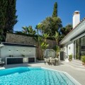 - This exceptional villa is located in the prestigious gated community of El Herrojo Alto, one of the most exclusive areas of La Quinta, Benahavís, offering a perfect combination of classic Andalusian architecture and contemporary design. Situated on an elevated frontline golf plot, the property enjoys panoramic views of the La Quinta course and the iconic La Concha mountain. The recently renovated residence is spread over two levels connected by a panoramic glass elevator, ensuring accessibility and comfort. All main areas—living rooms, kitchen, bedrooms, gym, and pool—are located on the same floor, optimizing the functionality of the space. Its interior, elegantly decorated with Eichholtz furniture, offers high-end finishes, such as Scandinavian oak floors, luxury porcelain tiles, and a KoK Studio kitchen equipped with Gaggenau appliances. The master bedroom stands out for its custom-made dressing room and designer bathroom with Villeroy & Boch finishes. Outside, the landscaped terraces invite you to enjoy the Mediterranean climate with a heated saltwater pool, lounge areas with electric awnings, and an outdoor kitchen. The villa also features a Technogym gym, a garage with electric charging, and 24-hour security, offering a perfect balance of luxury, comfort, and privacy in a privileged setting on the Costa del Sol. Villa, Frontline Golf, Fitted Kitchen, Parking: Garage, Pool: Private, Garden: Private, Facing: East Views: Garden, Golf, Mountains, Pool Features: 2 Parking Places, 24 hrs Security System, Air Conditioning Hot/Cold, Barbecue, Built to High Standards, Close to all Amenities, Close to schools, Completely Equipped Kitchen, Contemporary style, Conveniently Situated for Golf, Conveniently Situated Schools, Dining Area, Electric Blinds, EV charging point, Fireplace, Fitted Wardrobes, Frontline Golf, Furnished, Garage, Gated Complex, Guest Wardrobe, Gym, Heated Outdoor Pool, High Ceilings, Living room with fireplace, Luxury Fittings, Modern Style, Near amenities, Prestige Fitted Kitchen, Private pool, Refurbished, Renovated, Salt water pool, Sought After Area, Spacious Accommodation, Underfloor Heating, Walk-in closet