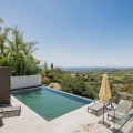 - Brand New Contemporary Villa for sale Set on a south-facing plot of over 1,000 m², this newly built villa delivers sweeping views of the Mediterranean Sea and surrounding mountains. Constructed by local established builders, the property combines sharp modern architecture with natural textures and floor-to-ceiling glass for seamless indoor-outdoor living. The main level features an open-plan layout where the living, dining and kitchen areas flow to expansive terraces through full-width sliding doors. A private infinity pool, covered dining lounge and landscaped gardens create a true extension of the interior spaces. A private driveway with covered carport provides convenient access and secure parking. Inside, the villa is finished to a high standard with elegant stone surfaces, warm wood cabinetry and discreet lighting. Generous bedrooms include stunning ensuite bathrooms, while the master suite offers direct terrace access and panoramic sea views. With its modern design, private setting and exceptional vistas, this property is a standout contemporary home in Marbella East.