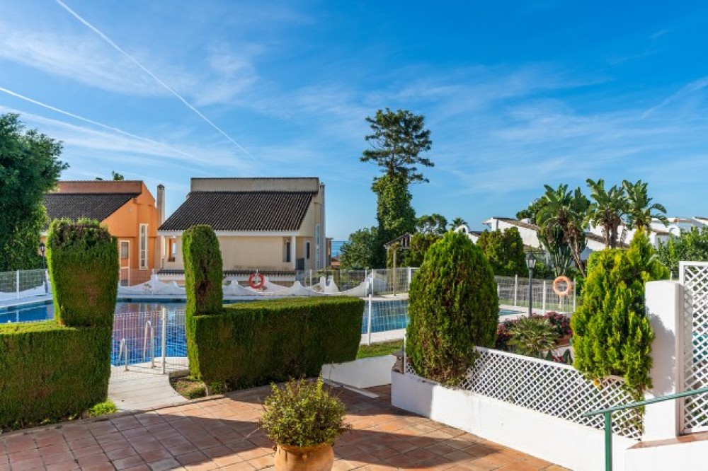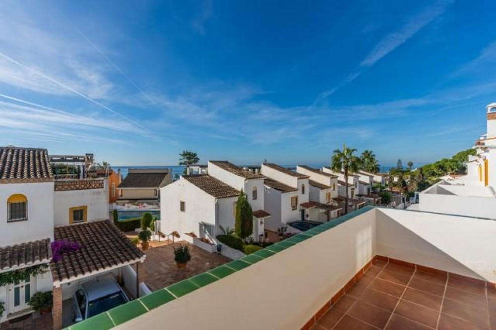 - Ample and bright semi-detached house in the urbanisation Costabella in East Marbella. The house offers on two levels three bedrooms, three bathrooms, a good sized living room, big kitchen, front terrace and back summer terrace. Amazing sea views from first floor and from roof terrace. The house offers great potential as there is a basement that could be converted into more bedrooms or whatever you like. Amazing complex within a couple of steps from the beach with large pool area, garden and parking space area. Marbella Centre is only a 10 minute drive away.