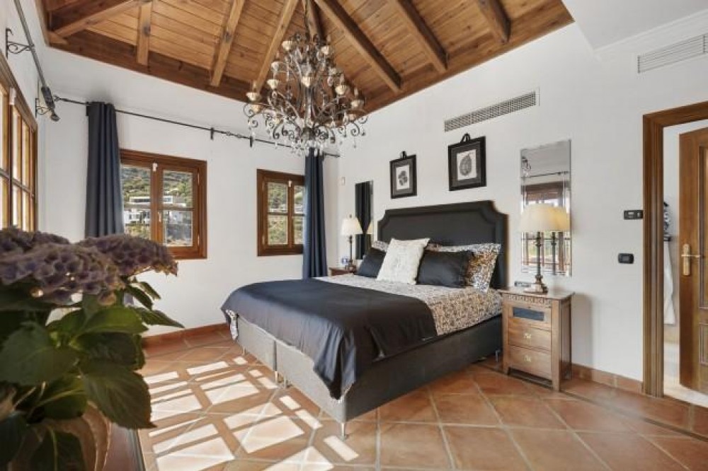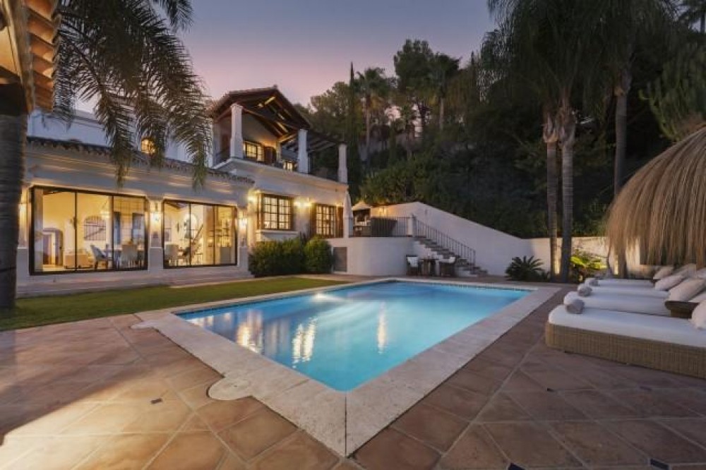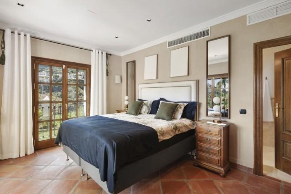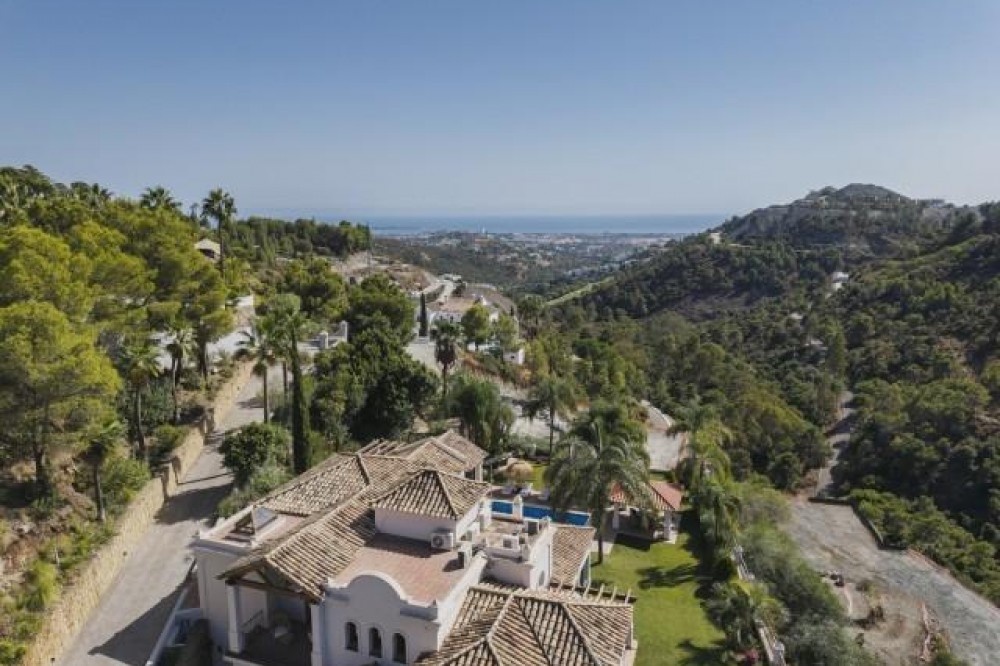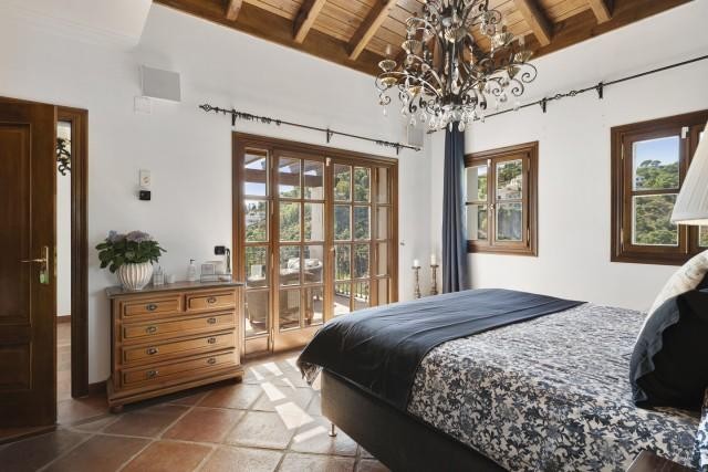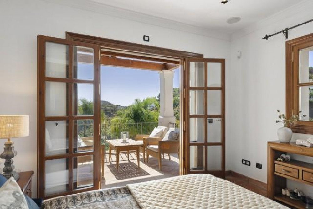 - A distinguished opportunity to own a luxury residence within the coveted gated community of El Madroñal in Benahavis. Blending timeless Madroñal charm with contemporary updates, this expansive villa offers 531 square meters of built space over two thoughtfully designed floors, perfectly tailored for those who value privacy, panoramic views, and a harmonious blend of indoor and outdoor living. Completed with a significant renovation in 2024, this home is ready to offer an elevated standard of living in one of the Costa del Sol’s most secure and prestigious enclaves. The property stands out for its exceptional position, panoramic views, and timeless Andalusian character. Surrounded by more than fifty majestic palm trees, this private retreat embodies Mediterranean elegance, peace, and natural beauty. A rare opportunity to acquire A fantastic location within El Madroñal A Smart Investment, due to its large, unique plot with outstanding potential for future expansion or redevelopment. Guaranteed long-term value thanks to unchanging views and privacy, even as El Madroñal continues to evolve. A private and secure retreat offering complete peace of mind. A beautiful and elegant house with Authentic Andalusian Charm Traditional architecture paired with spacious, open-plan interiors, with warm materials, high ceilings, and graceful arches creates a timeless and welcoming ambiance. Views & lights Breathtaking panoramic sea views. Perfect south and southwest orientation for all-day sunshine and spectacular sunsets, maximizing light and scenery. Along the property wall, twenty-five palm trees offer a warm and elegant welcome. Set within mature Mediterranean gardens featuring jacarandas, lemon, orange, and palm trees, creating an idyllic natural setting. Features & Comforts Underfloor heating throughout Hot and cold air conditioning Dedicated TV lounge Home cinema room (convertible into an additional bedroom if desired) Integrated surround sound system Automatic garden irrigation system Villa, Close to Golf, Fitted Kitchen, Parking: Private, Pool: Private, Garden: Private, Facing: Southwest Views: Garden, Mountains, Open views, Panoramic, Sea Features: 24 hrs Security System, 5-10 minutes to Golf Course, Air Conditioning Hot/Cold, Automatic Irrigation System, Barbecue, Charming Property, Close to schools, Completely Equipped Kitchen, Conveniently Situated for Golf, Conveniently Situated Schools, Easily maintained gardens, Full of Character, Furnished, Garden, Garden and Pool View, Gated Complex, High Ceilings, Home Cinema, Landscaped Gardens, Laundry room, Mature Garden, Mountain View, Palm trees, Private pool, Renovated, Sea Views, Sought After Area, Storage room, TV Room, Underfloor Heating
