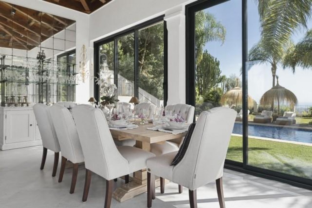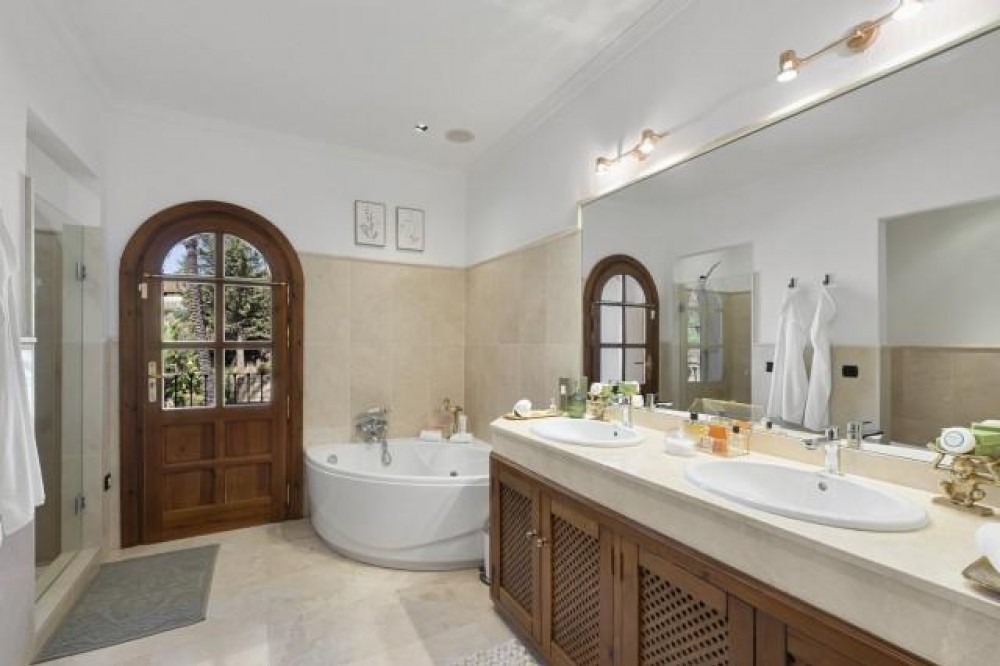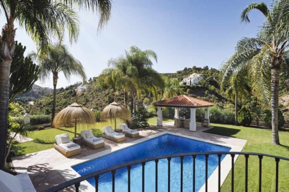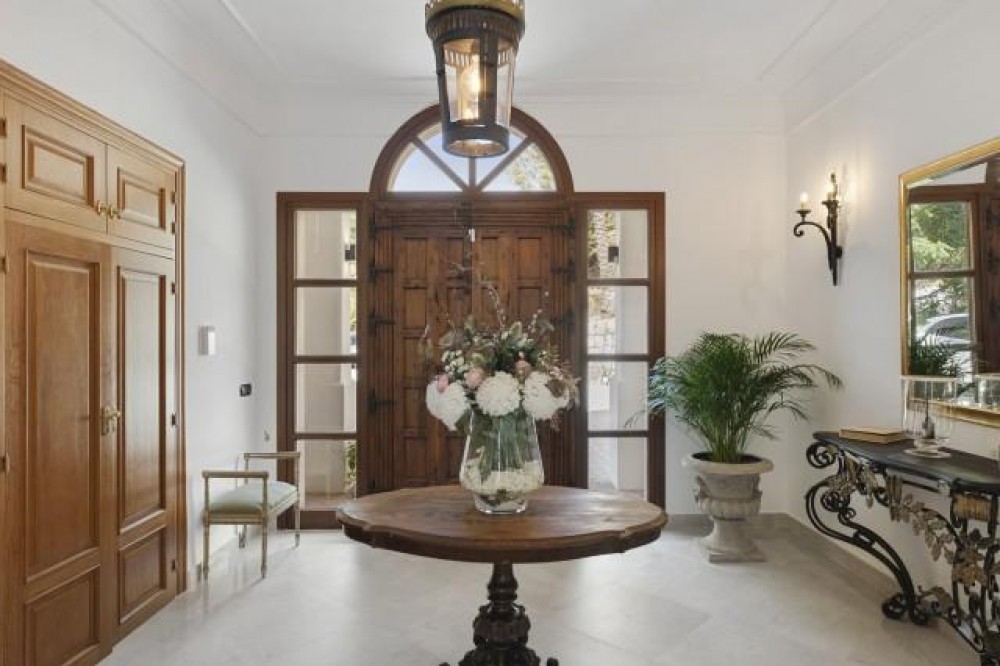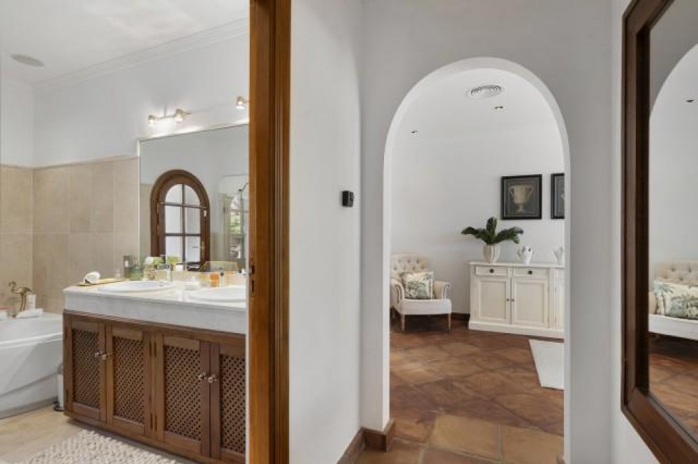 - A distinguished opportunity to own a luxury residence within the coveted gated community of El Madroñal in Benahavis. Blending timeless Madroñal charm with contemporary updates, this expansive villa offers 531 square meters of built space over two thoughtfully designed floors, perfectly tailored for those who value privacy, panoramic views, and a harmonious blend of indoor and outdoor living. Completed with a significant renovation in 2024, this home is ready to offer an elevated standard of living in one of the Costa del Sol’s most secure and prestigious enclaves. The property stands out for its exceptional position, panoramic views, and timeless Andalusian character. Surrounded by more than fifty majestic palm trees, this private retreat embodies Mediterranean elegance, peace, and natural beauty. A rare opportunity to acquire A fantastic location within El Madroñal A Smart Investment, due to its large, unique plot with outstanding potential for future expansion or redevelopment. Guaranteed long-term value thanks to unchanging views and privacy, even as El Madroñal continues to evolve. A private and secure retreat offering complete peace of mind. A beautiful and elegant house with Authentic Andalusian Charm Traditional architecture paired with spacious, open-plan interiors, with warm materials, high ceilings, and graceful arches creates a timeless and welcoming ambiance. Views & lights Breathtaking panoramic sea views. Perfect south and southwest orientation for all-day sunshine and spectacular sunsets, maximizing light and scenery. Along the property wall, twenty-five palm trees offer a warm and elegant welcome. Set within mature Mediterranean gardens featuring jacarandas, lemon, orange, and palm trees, creating an idyllic natural setting. Features & Comforts Underfloor heating throughout Hot and cold air conditioning Dedicated TV lounge Home cinema room (convertible into an additional bedroom if desired) Integrated surround sound system Automatic garden irrigation system Villa, Close to Golf, Fitted Kitchen, Parking: Private, Pool: Private, Garden: Private, Facing: Southwest Views: Garden, Mountains, Open views, Panoramic, Sea Features: 24 hrs Security System, 5-10 minutes to Golf Course, Air Conditioning Hot/Cold, Automatic Irrigation System, Barbecue, Charming Property, Close to schools, Completely Equipped Kitchen, Conveniently Situated for Golf, Conveniently Situated Schools, Easily maintained gardens, Full of Character, Furnished, Garden, Garden and Pool View, Gated Complex, High Ceilings, Home Cinema, Landscaped Gardens, Laundry room, Mature Garden, Mountain View, Palm trees, Private pool, Renovated, Sea Views, Sought After Area, Storage room, TV Room, Underfloor Heating
