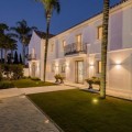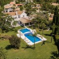 - This elegant villa, situated on a spacious 2,671 m² plot in the prestigious La Cerquilla neighborhood of Marbella, blends architectural sophistication with modern comfort. It features six spacious bedrooms strategically positioned for privacy and convenience, each with independent access from the carport. The interiors boast a refined design, with a large living room surrounding a contemporary fireplace, a formal dining area with a double pendant light, and a fully equipped modern kitchen with warm-toned cabinetry and stone countertops. The interior spaces flow seamlessly into the terraces, gardens, and pool area, creating an ideal setting for Mediterranean living. Outside, the villa offers a large swimming pool with a waterfall, landscaped gardens, and various outdoor dining and relaxation areas. Among its amenities are comprehensive home automation, zoned climate control, and individual underfloor heating in each room, along with direct and exclusive access to the Los Naranjos golf course—a rare feature that enhances its value and exclusivity. Villa, Frontline Golf, Fitted Kitchen, Underground parking, Pool: Private, Garden: Private, Facing: Southeast Views: Garden, Mountains, Pool Features: 2 Parking Places, Air Conditioning Hot/Cold, Close to schools, Completely Equipped Kitchen, Contemporary style, Conveniently Situated for Golf, Conveniently Situated Schools, Covered Terrace, Dining Area, Dining Room with Fireplace, Double Glazing, Fireplace, Fitted Kitchen, Fountain, Frontline Golf, Garden and Pool View, Home Cinema, Landscaped Gardens, Living room with fireplace, Luminous, Marble Bathroom, Marble Floors, Master Suite with Fireplace, Mature Garden, Modern Style, Mountain View, Picturesque Garden, Private pool, Private Terrace, Refurbished, Renovated, Smart Home, Spacious Accommodation, Stylish Accommodation, Subtropical Gardens, Sunny terraces, Underfloor Heating, Underground parking