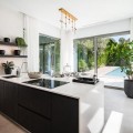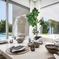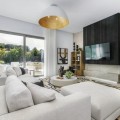 - Nestled in the serene and well-established residential enclave of El Paraíso, this sophisticated contemporary villa enjoys a prime setting on Marbella’s coveted New Golden Mile—just minutes from Puerto Banús, San Pedro de Alcántara, and Estepona. Designed to maximise natural light, space, and modern comfort, the home is arranged across three impeccably planned levels. The main floor boasts an expansive open-plan living and dining area that flows effortlessly into a fully equipped, high-end German kitchen. Floor-to-ceiling sliding doors open onto generous, partially covered terraces featuring stylish outdoor lounging and dining spaces—ideal for enjoying the Costa del Sol’s enviable year-round climate. The villa offers five spacious bedrooms, each with its own en-suite bathroom, as well as a guest toilet. Premium finishes, including natural wood floors, underfloor heating, and electric blinds, elevate the home’s refined yet functional design. Outside, a private, mature garden and sparkling swimming pool create an oasis of tranquility, enhancing the property’s appeal as both a luxurious permanent residence and an exceptional holiday retreat. The versatile lower level features a generous multi-purpose space, perfect for creating a gym, cinema room, office, or additional guest suites—allowing you to tailor the home to your lifestyle. Additional highlights include covered parking for two vehicles. The villa is offered fully furnished and move-in ready, providing a seamless transition into one of Marbella’s most desirable locations.