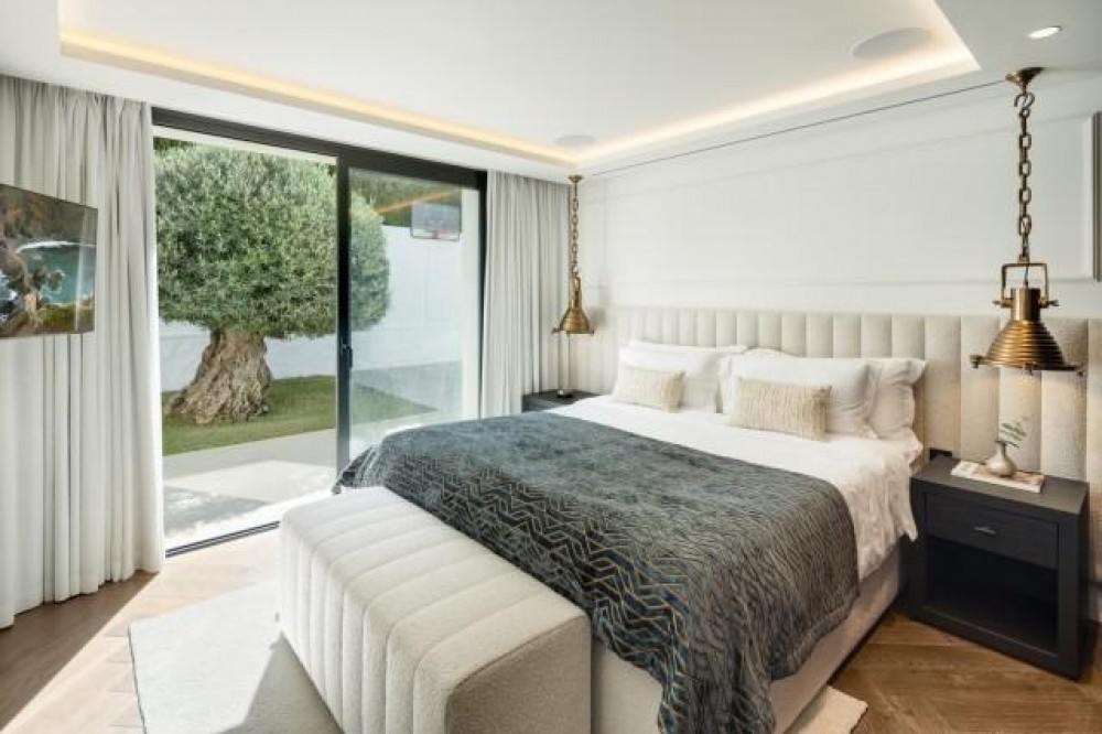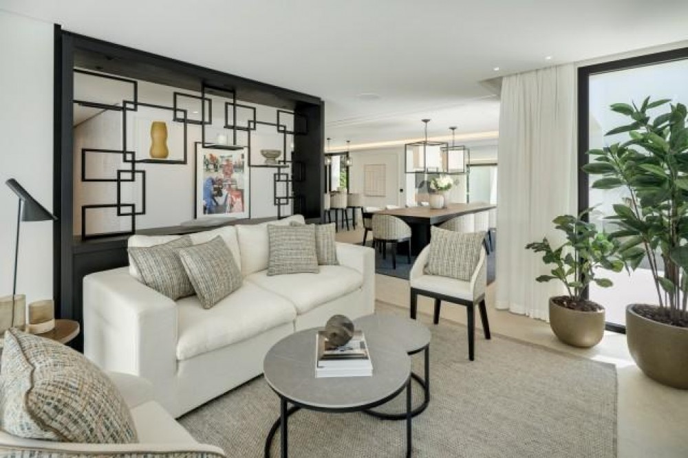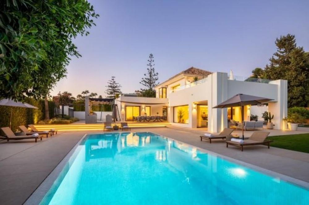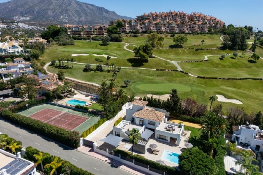 - Esta impresionante villa moderna, situada en el corazón de Nueva Andalucía, destaca por su diseño contemporáneo del reconocido arquitecto Francisco Martínez Galván y por su excepcional calidad de construcción. Distribuida en tres niveles, ofrece seis dormitorios y cinco baños, organizados para maximizar la luz, el espacio y la privacidad. La planta principal integra una cocina de alta gama con electrodomésticos Siemens, un amplio comedor y un luminoso salón con acceso directo a terrazas exteriores. La suite principal ocupa toda la planta superior, con vestidor, elegante baño y dos terrazas privadas con vistas al mar y acceso a un jacuzzi. El nivel inferior está dedicado al bienestar y el entretenimiento, con piscina interior, gimnasio, sauna de vapor, bodega climatizada y sala multimedia insonorizada con bar. En el exterior, la villa ofrece jardines paisajísticos, varias terrazas, zona de barbacoa, pista de petanca y una innovadora piscina de agua salada. Ubicada en el prestigioso Golf Valley, disfruta de proximidad a campos de golf, restaurantes, colegios internacionales y Puerto Banús Villa, Frontline Golf, Equipped Kitchen, Parking: Covered, Pool: Private, Garden: Private, Facing: South Views: Garden, Pool, Sea Features: 2 Parking Places, 5-10 minutes to Golf Course, Air Conditioning Hot/Cold, Bar, Barbecue House, Close to schools, Contemporary style, Conveniently Situated for Golf, Conveniently Situated Schools, Covered Terrace, Double Glazing, En suite bathroom, Excellent Condition, Frontline Golf, Furnished, Games Room, Garden, Garden and Pool View, Gym, Heated Indoor Pool, Landscaped Gardens, Laundry room, Luminous, Mature Garden, Modern Style, Private Terrace, Refurbished, Renovated, Salt water pool, Sea Views, Spacious Accommodation, Storage room, Stylish Accommodation, Sunny terraces, Turkish Bath, TV Room, Underfloor Heating, Utility Room, Various Storerooms, Walk-in closet, Wine Cellar