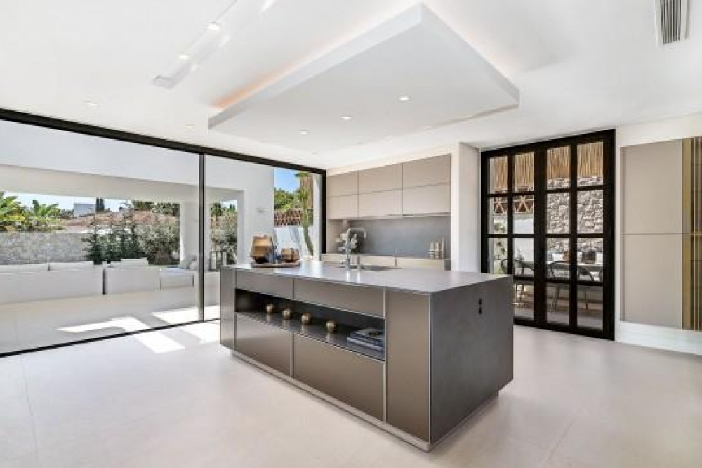 - This is a stunning, luxurious and stylish home that has just been completed, close to the beach in one of the trendiest beach resorts in Marbella, in Marbesa. It is located on the east side of Marbella, home to Nikki Beach, the Four Season Hotel and many chic beach restaurants, and only minutes away from the centre of Marbella. Villa Verde Mare is a beautiful recent creation by one of Marbella''s best architects and top interior design house. Occupying an elevated plot, the villa is built to exceptionally high qualities and is absolutely stunning, offering chic interiors, as well as a beautiful garden area designed by the leading landscaping company in Marbella. An impressive entry with a cascading waterfall leads to the 7 meter high entrance, which gives way to a chic hall leading to an impressive living area of over 100m2, which includes a beautifully decorated large living room, with an impressive modern fireplace, a luxurious and exceptionally spacious kitchen, with a separate laundry area and a dining room with double height ceiling.