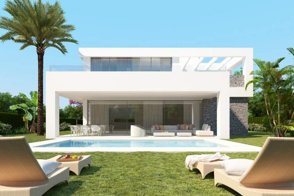 - Las villas de Marbella finds itself just east of Marbella town in a peaceful residential area dominated by gentle olive and pine-clad slopes, beaches, dunes and sea views. This location has the distinction of being highly central and peaceful, thus endowing the private community of villas with the best of both worlds. The choice of modern contemporary styling may follow the latest market trends, but it is also an integral part of the vision behind the project. Las villas de Marbella is designed to combine a sleek architectural language with a tranquil natural setting surrounded by olive groves. In blending nature and modernity we wish to offer a perfect combination of both, as in the case of a location that is peaceful and secure yet also central and convenient. Modern, stylish interiors, natural light, spacious bedrooms and large terraces are at the heart of the villas concept. There are a variety of kitchen layouts available which allow you to personalise your living area. Las villas de Marbella is more than just an idea. The concept is the result of years of accumulated experience in the real estate market; the highs, the lows, the trends. It bridges the gap between apartments and townhouses on the one hand and Marbella's opulent villas on the other. It combines the freedom and lifestyle of a villa with the practicality and cost of a smaller property in a way not achieved before. Villas Marbella 2 is a natural progression following the phenomenal success of Villas de Marbella: this new project comprises 35 luxurious and contemporary off plan villas set on individual plots with private swimming pools. The Iroko villa design gives the buyer the option to choose between 4 types of kitchen layouts: Open, Bar, Closed or Central to suit personal tastes and unique family requirements, fully equipped with premium brand appliances. The 4 bedrooms are laid out on both floors, with one master bedroom downstairs with en suite and one master bedroom upstairs with en suite complemented by a further two bedrooms sharing a family bathroom. Careful planning has ensured that there will be sea and mountain views from many of the south west facing plots. Notable design features include open plan living areas and large windows to maximise light and space. Full height windows can be retracted into the walls, uniting the interior and exterior living areas, allowing the client to enjoy Marbella all year round. The private and manageable plots are landscaped beautifully with electric gates providing access to the villas, which feature a private 30m2 carport and a private swimming pool. Construction will finish end 2023.