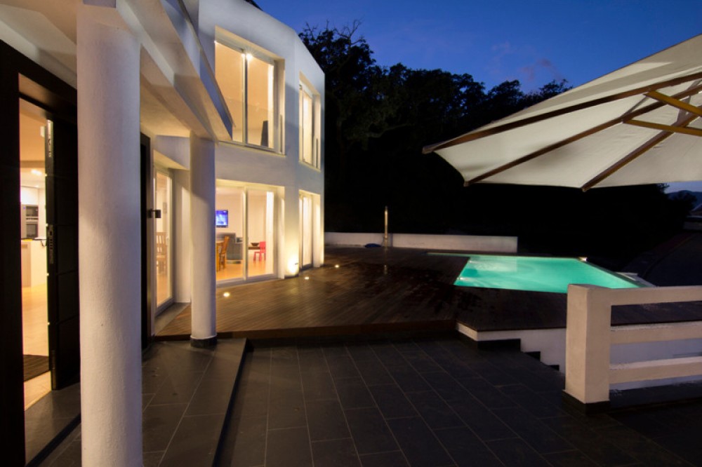 - Big modern villa, with spectacular mountain views. Set in a magical cork oak forest. 328 m square. 1024 m plot. Solar heated infinity pool, big wooden deck around the pool, big terrace upstairs next to the master suite. Open plan modern kitchen, with top of the line appliances, saloon with 48 inch UHD samsung TV. 4 min drive to Juan Hoffman German college. (340 meters from the house). 8 min drive to La Cala golf, one of the best golf resort in Andalusia 15 min drive to the lidl supermarket 39 min to Malaga airport This Villa has a verified rental income in 2018 of €47,590.63. Orientation: north east. Furniture: optional View: mountains and forest view. Fence: partly fenced. Look: new Age of Furniture, Appliances: new. Floors: 2 Total build area 328 m Usable area 234 m Terrace: 100 m Garden 693 m Parking 30 m Balcony: 30 m Plot 1021 m Salon : 86 m open plan, with chimney, air condition hot and cold, wood floors. Dining room : joined with the saloon, wood floors. Bedrooms 3: Kids room 15.2 m closet, sliding door opens to a private garden, private bath and toilet. Guest room 14 m sliding door opens to the balcony, private bath and toilet. Master bedroom 36 m with walk in dressing room, private master bath and toilet. Access to the upstairs terrace. Kitchen: with white marble, island, top of the line appliances. Guest toilet 1 Storage 3.75m Utility room 21 m, opens to the garage. Washing room 4 m Garage with electric gate and remote opening. space for 2 cars 30m Garden: Mediterranean style with orange and almond trees, big flat grass area for the kids. Pool: infinity style, heated (solar panels), 9 m * 4 m Wooden deck : tropical wood, around the pool 70 m