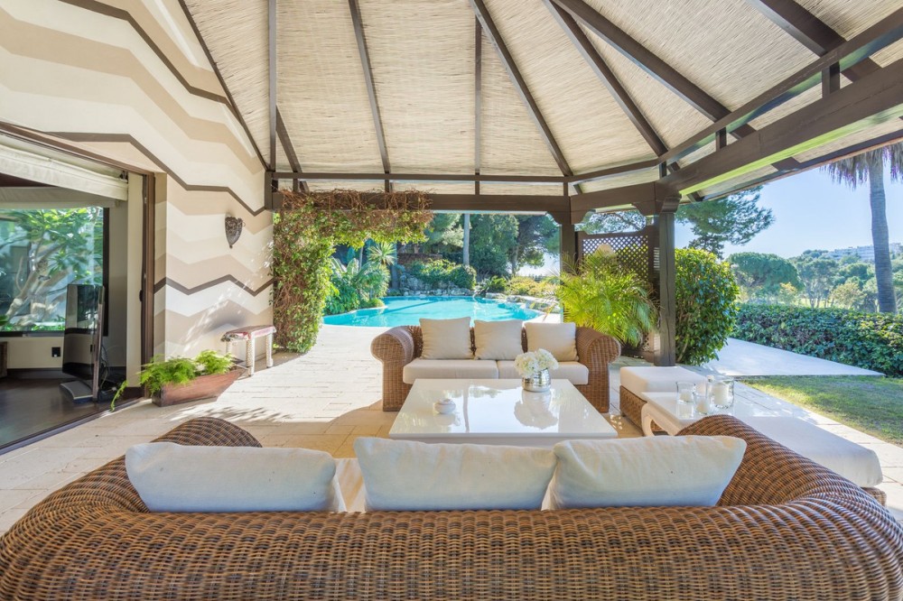 - Discover the epitome of luxury living in this superb villa, nestled within an exclusive development of just seven homes. This stunning property is perfectly positioned on the front line of the prestigious Rio Real Golf Resort, offering breathtaking views and an unparalleled lifestyle for golf enthusiasts. With 1,200 m² of constructed space and 1,000 m² of usable area, this home boasts spacious and comfortable living spaces that cater to every need. Step inside to find several elegantly designed living rooms, a large fully fitted kitchen, and beautiful terraces that invite outdoor relaxation. The barbecue area is perfect for entertaining, while the expansive swimming pool, complete with colored lighting, creates a serene oasis for leisure. The villa features six generous bedrooms and six luxurious bathrooms, including a master suite equipped with a two-person whirlpool bath for ultimate indulgence. Additional highlights include a garage accommodating five cars, independent hot and cold air conditioning, and a state-of-the-art security system connected to a central control panel. The property is adorned with aged marble flooring on the porch and in the gardens, complemented by exquisite wooden flooring throughout the house. Enjoy the convenience of motorized blinds, heat-resistant glass, and lacquered built-in wardrobes that provide ample storage. This villa is not just a home; it’s a lifestyle choice. With its south-facing orientation and a sprawling plot of 1,700 m², it promises privacy and tranquility while being just moments away from world-class amenities. Don’t miss the opportunity to own this exceptional property that combines elegance, comfort, and security in one magnificent package. Embrace the life you’ve always dreamed of!