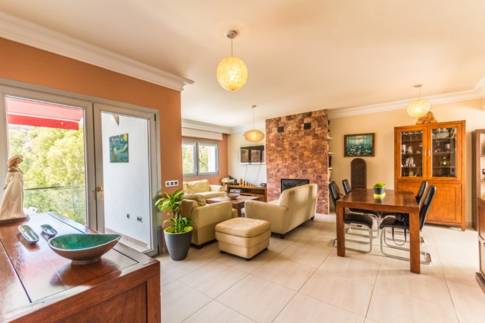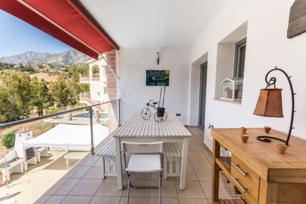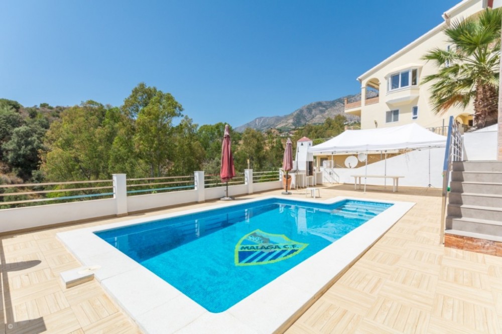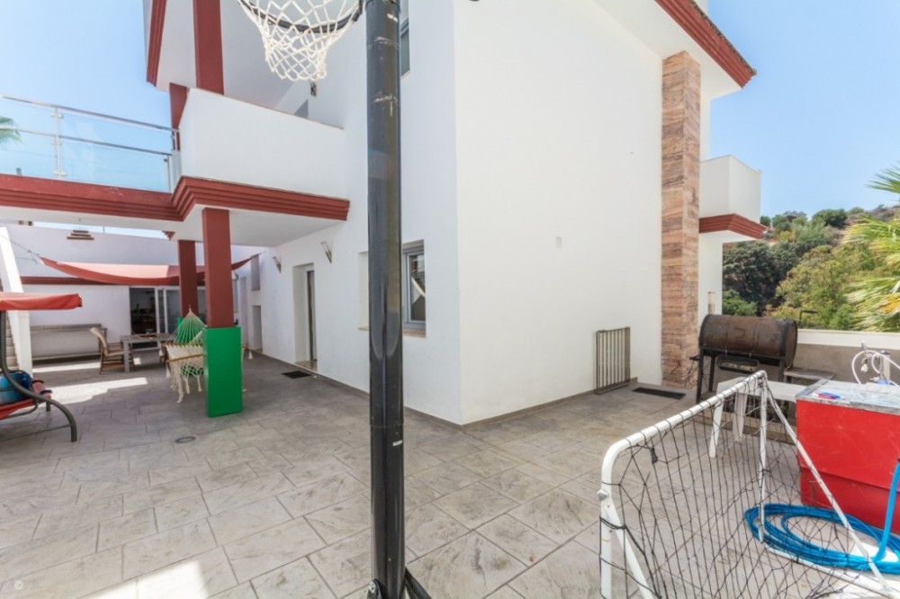 • Large Villa with great qualities in Carretera de Mijas area with guest accommodation, lift and orchard. It is distributed as follows: Ground floor: Entrance hall, large living room with fireplace and access to the terrace, large fully equipped kitchen with dining area and also with access to the terrace. 1 guest toilet. First floor: 3 large bedrooms with fitted wardrobes and 2 bathrooms (1 on suite) Large terrace with beautiful views. Basement / Guest accommodation: Large area ideal for the second living room, gym, cinema, games room, etc. Fully equipped open plane kitchen, 1 bedroom and 1 room currently used as an office. 1 bathroom and direct access to the pool. Solarium: large terrace solarium with storage area. Exterior: Large front yard with storage, garage area for 2 cars. Backyard with large pool, barbecue and children''s area. Orchard area and area of fruit trees zone access to the stream. Property in excellent condition and high quality with lift on all floors, armored climalit windows, air conditioning cold heat, electric shutters, intercom, saltwater pool, hot water by solar panels and water softener. Plot: 900m2. Total built size: 363,35m2. Liing area: 299.25m2. Porchs: 7,80 and 22.50m2. Terrace 33,80m2. Solarium: 94m2. Swimming pool: 32m2. IBI: 1.463,33€ per year. Rubbish: 149,85€ per year. Built year: 2013. Distances: Restaurants: 750mts. Bus stop: 630mts. Amenities: 1,4km. Mijas Pueblo: 3,5km. Beach: 4,3km. Malaga Airport: 25,5km.