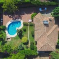 • Large Villa located in Campo Mijas at short distance to services and with 100% privacy!! It is distributed in 2 floors as follows: Ground floor: Entrance hall, large living room with fireplace and access to the porch with open views to the garden. The master bedroom is very elegant and spacious with corridor hallway, luxurious bathroom with Jacuzzi and shower with whirlpool and dressing room. On this floor there are also 2 other bedrooms, a family bathroom plus a guest toilet. Semi-basement floor composed of a second living room with dining area, TV area and cellar, plus fully equipped kitchen with the third dining area and access to the porch. On this floor there is also bedroom # 4 with a bathroom with shower and also the large garage with automatic gate and laundry. The property is in perfect condition with parquet floors in the master bedroom, air conditioning hot & cold in the main living room and 2 bedrooms, windows are climalic with shutters and solar panels for hot water. Exterior: Entrance of vehicles with automatic gate and with capacity for 6 cars approximately. Beautiful garden of easy maintenance with system of automatic irrigation, swimming pool with 100% of privacy and tranquility and wonderful BBQ house with dining table for 20 people approximately. Campo Mijas is a prestigious residential development consisting of independent Villas located a short distance from services and the beach of Fuengirola. Plot 1.243m2. Total built 334,14m2. IBI 1.184,17€ per year. Rubbish 142,36€ per year. Year of construction 1997. Distances: Supermarket, bars, restaurants 800 meters. Fuengirola beach 3.3km. Malaga Airport 26.5km.
