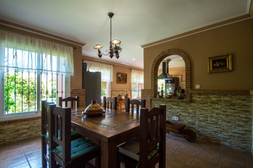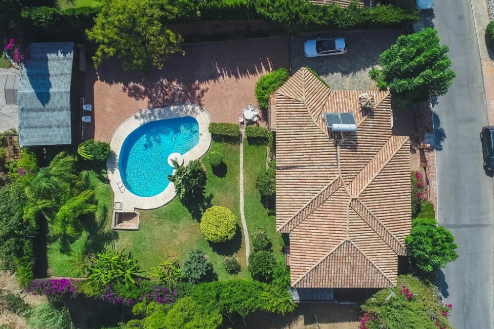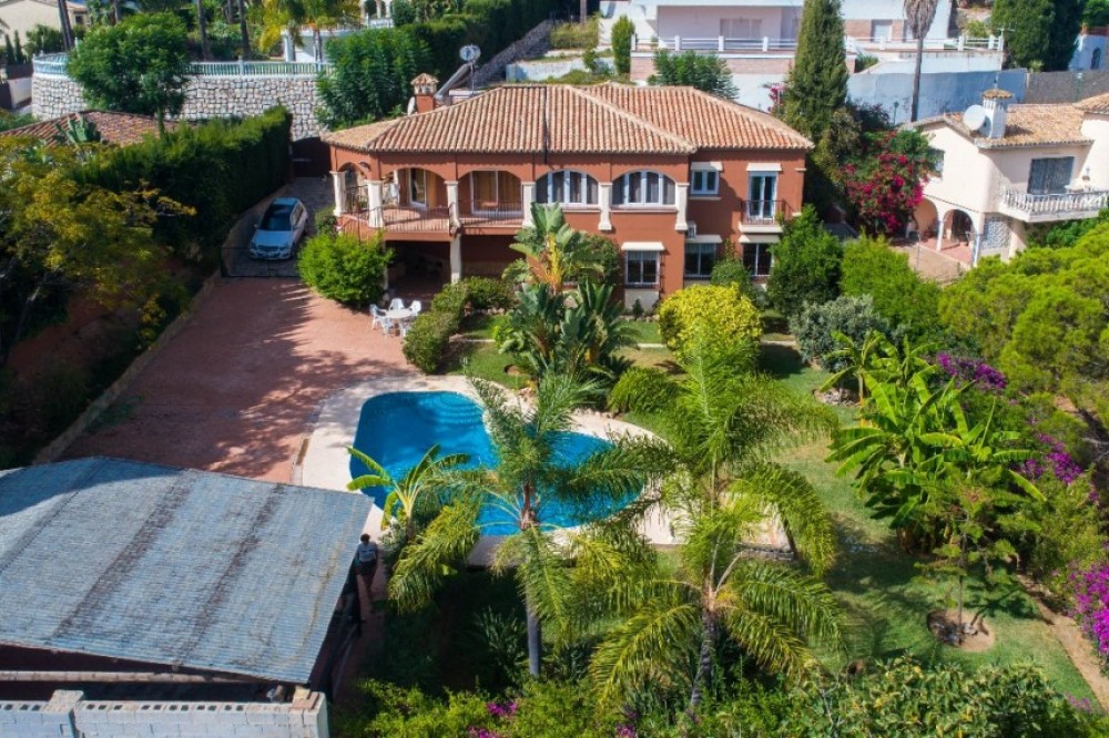 • Large Villa located in Campo Mijas at short distance to services and with 100% privacy!! It is distributed in 2 floors as follows: Ground floor: Entrance hall, large living room with fireplace and access to the porch with open views to the garden. The master bedroom is very elegant and spacious with corridor hallway, luxurious bathroom with Jacuzzi and shower with whirlpool and dressing room. On this floor there are also 2 other bedrooms, a family bathroom plus a guest toilet. Semi-basement floor composed of a second living room with dining area, TV area and cellar, plus fully equipped kitchen with the third dining area and access to the porch. On this floor there is also bedroom # 4 with a bathroom with shower and also the large garage with automatic gate and laundry. The property is in perfect condition with parquet floors in the master bedroom, air conditioning hot & cold in the main living room and 2 bedrooms, windows are climalic with shutters and solar panels for hot water. Exterior: Entrance of vehicles with automatic gate and with capacity for 6 cars approximately. Beautiful garden of easy maintenance with system of automatic irrigation, swimming pool with 100% of privacy and tranquility and wonderful BBQ house with dining table for 20 people approximately. Campo Mijas is a prestigious residential development consisting of independent Villas located a short distance from services and the beach of Fuengirola. Plot 1.243m2. Total built 334,14m2. IBI 1.184,17€ per year. Rubbish 142,36€ per year. Year of construction 1997. Distances: Supermarket, bars, restaurants 800 meters. Fuengirola beach 3.3km. Malaga Airport 26.5km.