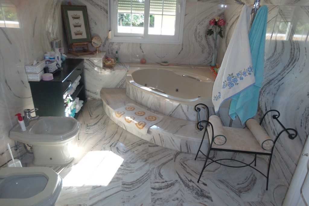 • 1761-V For sale. A Luxury villa of over 400m2 useful on 1010m2 of fenced plot. Consisting of living room, luxury fitted kitchen, 5 bedrooms with wardrobes, 3 bathrooms, 1 toilet and several terraces. Basement of 150m2 with lounge, wine cellar, garage, porch, pool, mature garden, automatic gates, alarm, video surveillance camera, air conditioning throughout the house cool / cold, roof terrace with spectacular sea views, the Sierra Nevada, Malaga, mount, solar panels, the house has building materials of the highest quality in the market, marble floors, doors and stairs of solid wood, double glazing, and much more, splendid house with many details, in a very desirable area, two minutes walk from schools, colleges, supermarkets, 7 min from the new motorway, 25 minutes from Malaga, the beaches and golf courses of the Costa del Sol. Very exclusive product.