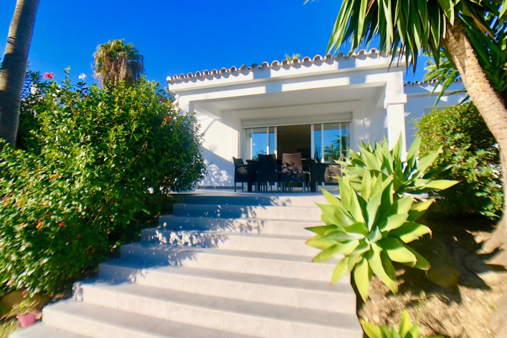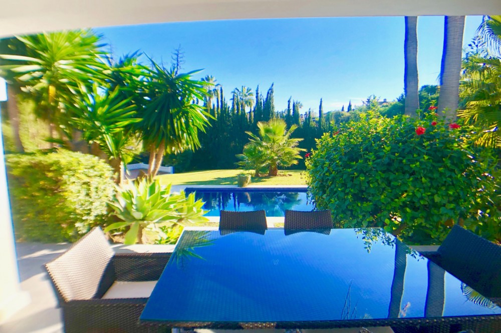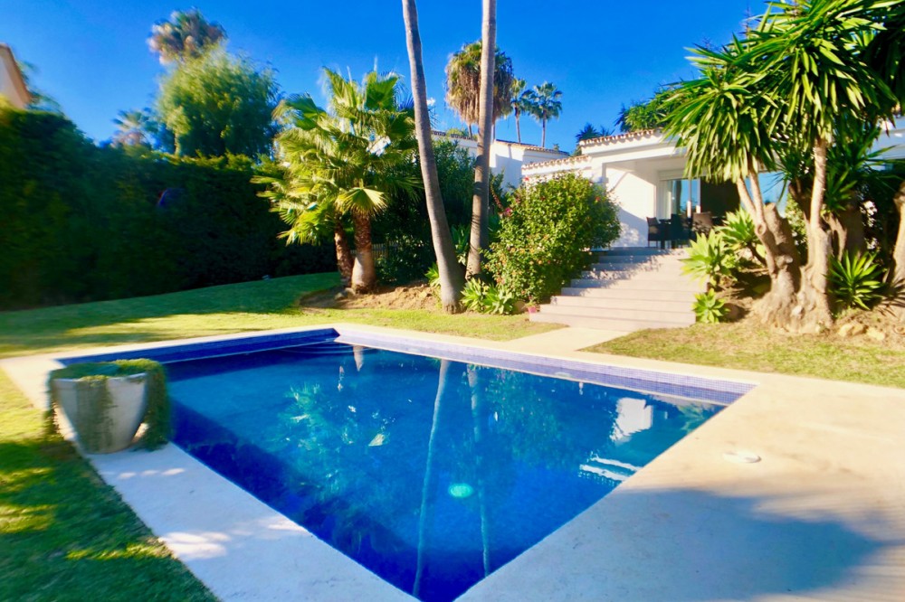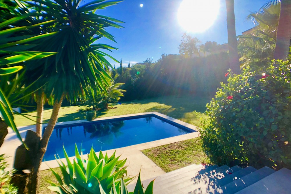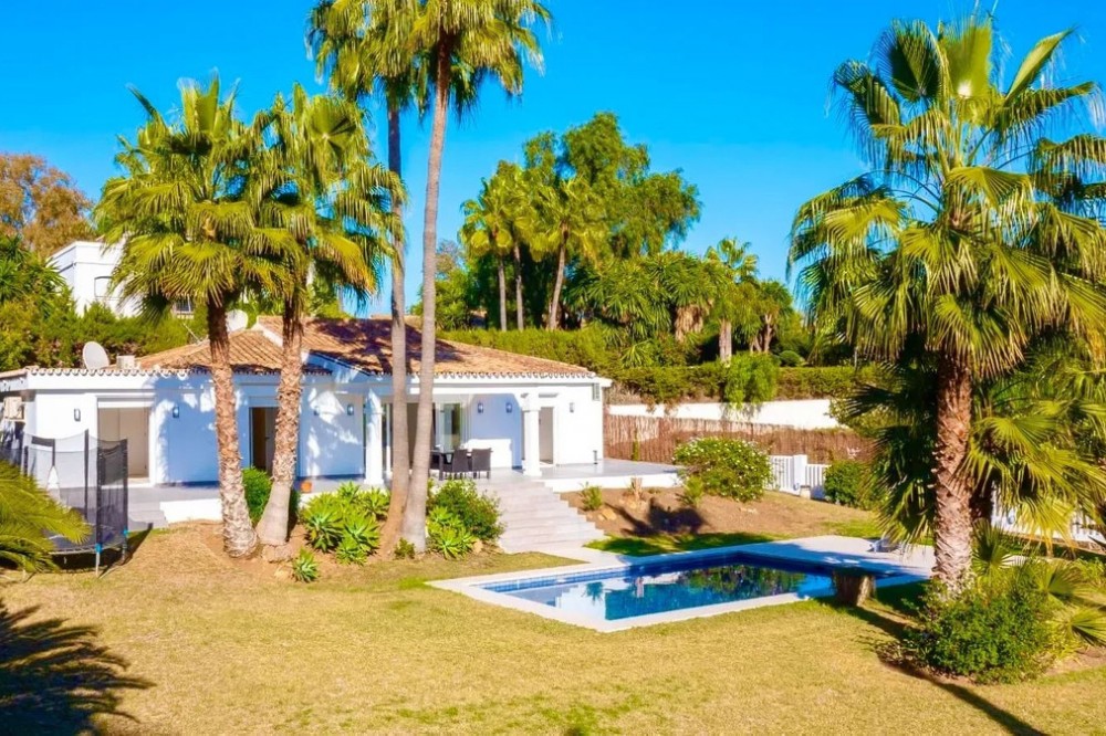 - BEAUTIFULLY MODERNISED 4 BEDROOM VILLA WITH UNIQUE LARGE PRIVATE GARDEN & POOL - on a double plot. Nestled in a serene cul-de-sac in the prestigious area of Atalaya, Estepona, this recently modernised 4-bedroom villa offers an exceptional living experience. Set on a generous double plot, the villa benefits from a vast, beautifully landscaped garden and a fantastic private swimming pool—perfect for both relaxation and entertaining. Perfectly suited for families or professionals, the property boasts spacious, open-plan interiors, designed to maximise natural light and comfort. With high-end finishes and a sleek, unfurnished layout, it provides the ideal blank canvas for you to personalise your new home. KEY FEATURES: - Build 350m2 / Plot 1500m2 - 4 spacious bedrooms - 3 bathrooms - Bright, open-plan living and dining areas - Large modern kitchen, with adjacent laundry room - Fully modernised with premium finishes - Quiet and private location in a tranquil cul-de-sac - Double plot with a large, private garden and a stunning swimming pool - Large outdoor space, perfect for entertaining or relaxing - Conveniently close to local amenities, schools, beaches, and golf courses DESCRIPTION: Recently completely renovated, this superb villa is all set over one level, and is south orientated, making it a very bright & homely. Located in Atalaya, within 5-10 minutes drive from San Pedro de Alcantara & Puerto Banus. The living / dining room is spacious & bright, leading out to a sunny south facing terrace. A few steps lead down to the pool & large garden which also wraps around the side of the house. The garden is completely private & secure. The kitchen is fully modernised & very spacious, with space for an additional dining area. There is a separate utility room for laundry. The master bedroom is spacious and has a separate dressing room with plenty of hanging space for clothes. The master bathroom is fully modernised & has a very large double shower plus a bath & double wash basins. The 2nd bedroom also benefits from a modern en-suite bathroom with bath tub. The other 2 bedrooms share a large bathroom with a bathtub shower and separate shower. There is off street parking within the gates of the villa for a number of cars, plus a garage for 1 car (which could alternatively be used for storage space if required). The villa is situated in a quite cul-de-sac, which feels very safe.