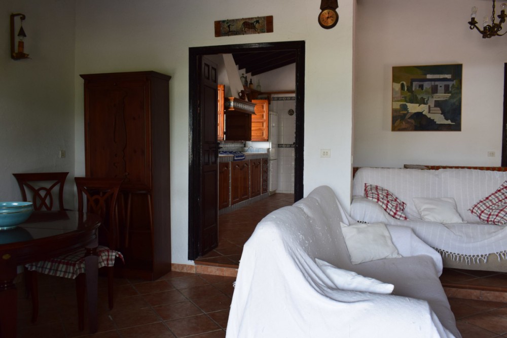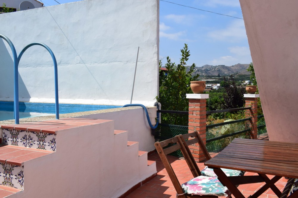 - Beautiful detached house in quiet area with many original features. In earlier days this was a bodega, in the basement the old wine barrels and the antique grape press are still kept and can still be used! The entrance gives access to a spacious terrace with beautiful views to the surrounding area, mountains all around in a wide perspective. The landscape is not disturbed with buildings, but you can see the nearby village, where you find all amenities. From the terrace you enter the living room with a fireplace. This is the antique part of the house with the original, antique windows, shutters, doors and beams. From the living room you can oversee the terrace and the landscape. The living room has an open connection with a very spacious, fully-fitted kitchen. Next to the other side of the living room there is one good sized bedroom. There is staircase that leads to a bedroom and bathroom downstairs. From the corridor you reach the terrace of the basement. From the kitchen you enter in another corridor at the back, where you find another spacious bedroom, also with the original doors. The corridor gives access to the swimming pool in a private corner of the property. From there a staircase leads to another terrace with a room on top. This room is used for storage now, but could be easily changed into a 4th bedroom. These kind of properties - well situated in an ideal location, only a 15 minute drive from the beach - are rare to find.