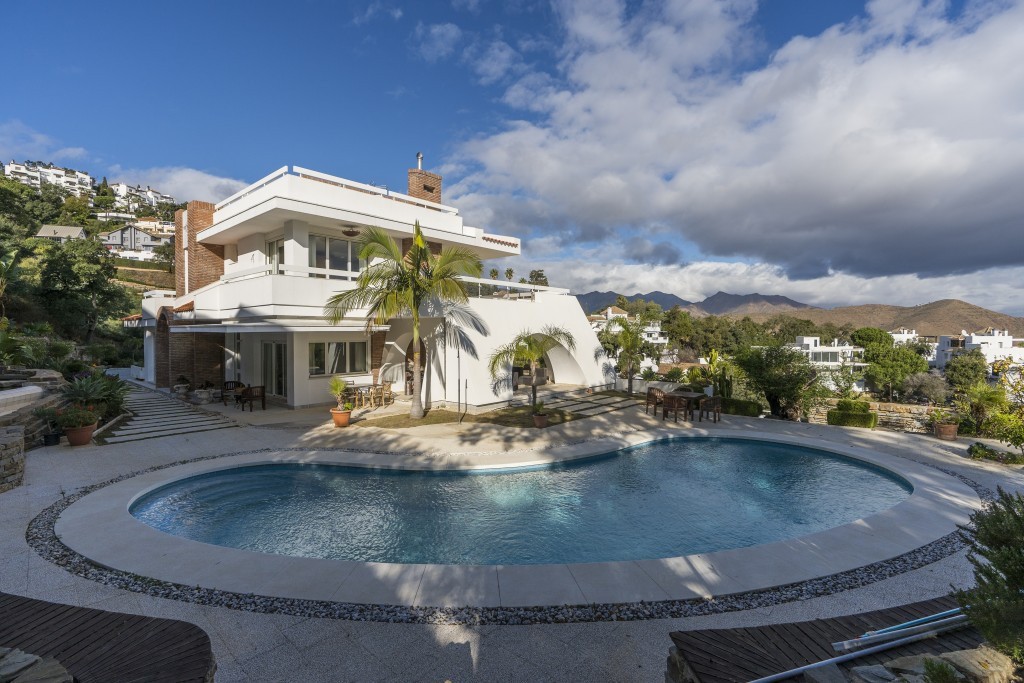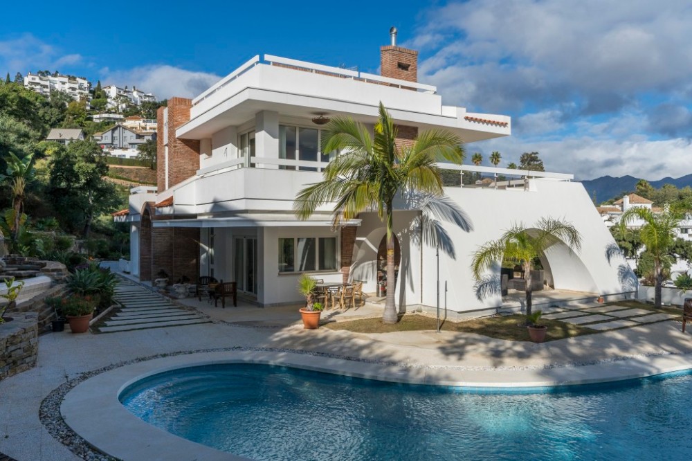 - Amazing new built villa in La Mairena with high quality finishing and beautiful pool area. The villa offers on three levels, five bedrooms with en-suite bathrooms, a lovely and bright living room with open fire place, modern open plan kitchen and dining area. Several terraces and lots of storage space. Garage. Only the best materials were used, marble floors, solar panels, underfloor heating in all rooms, AC hot and cold.