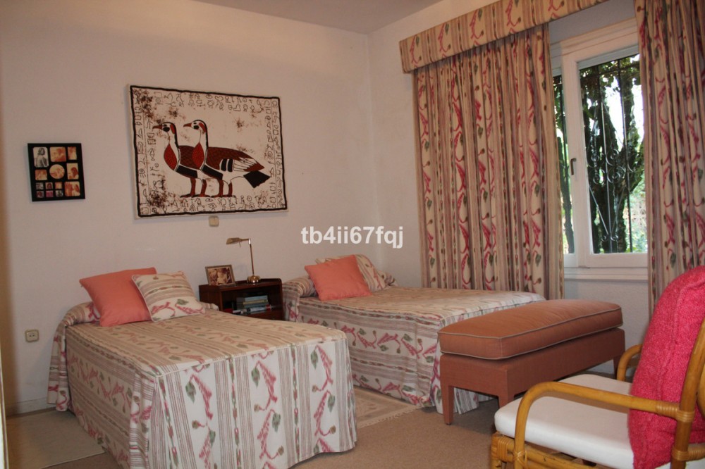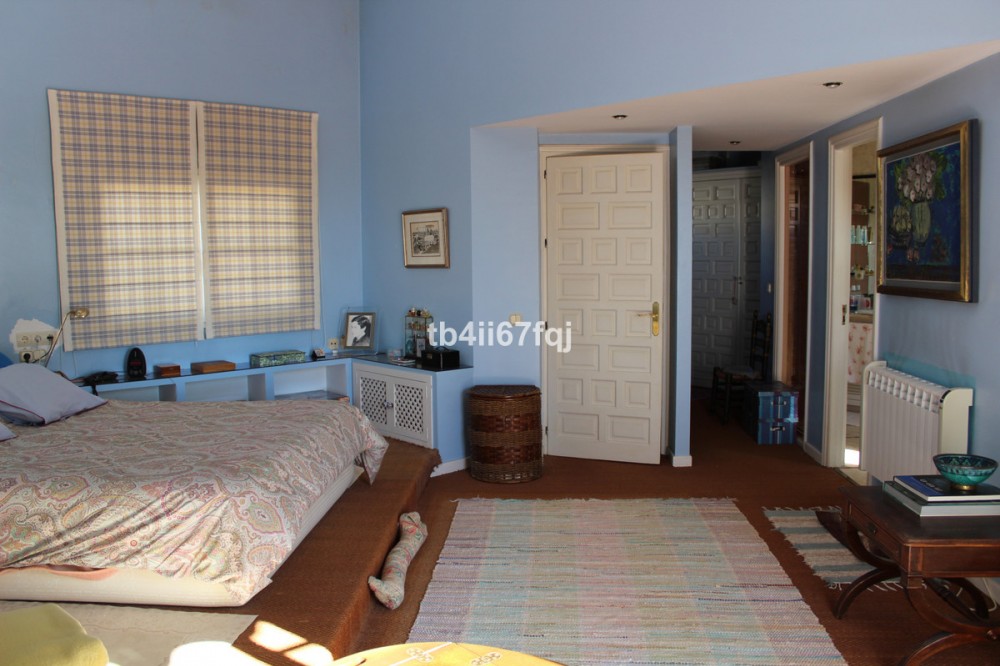 - Cozy independent Andalusian style villa in Atalaya, Estepona, close to all services and golf courses. The villa is divided into two parts and each of them has its independent access and entrance. In the first part there are two floors. The ground floor includes a lobby, living room with fireplace, dining room, large kitchen that has access to the inner courtyard, two rooms with their bathrooms and a toilet. First floor: master bedroom suite with large bathtub, dressing room and access to the terrace with beautiful views of the sea and the garden. The other part of the house has the same distribution but there is one more bedroom. The property is located on the plot of more than 3000 square meters, has a very nice garden with fruit trees.