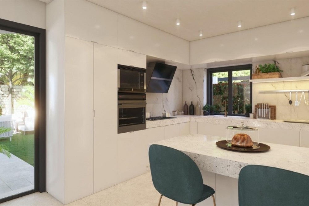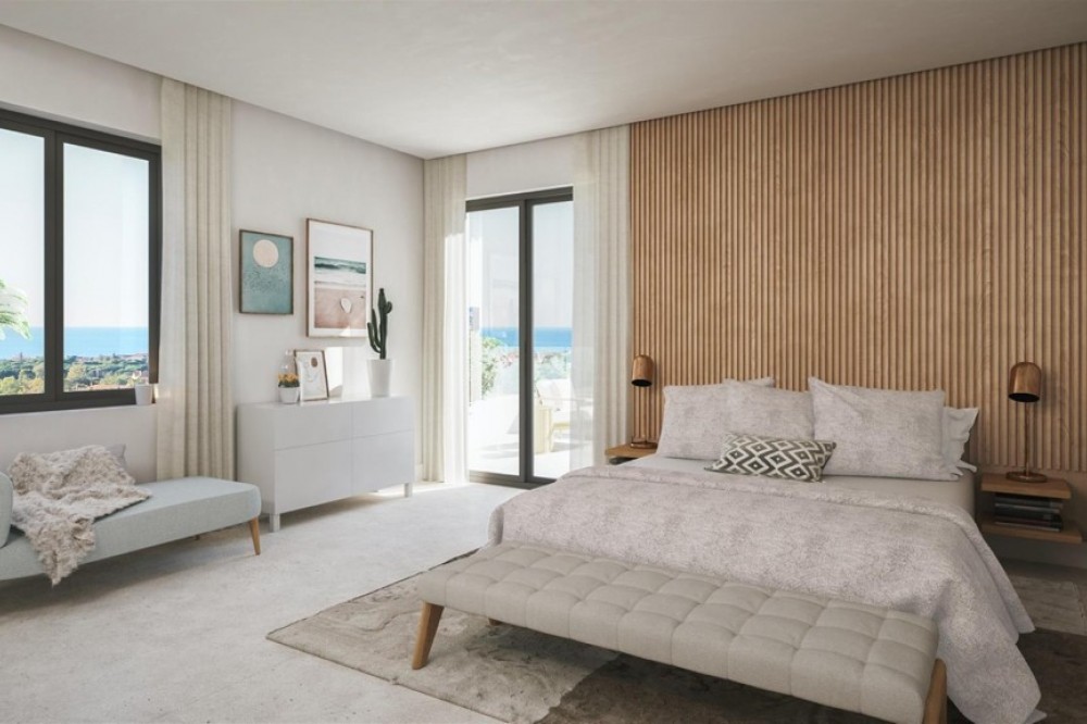 - 3 bedroom / 3 bathroom modern villas from 1.250,000 euros (excl. VAT) Ready for occupation end 2021! Contemporary complex of 40 single villas & semi-detached villas, located in Marbella East. Overlooking a beatiful golf course and panoramic sea views to the Mediterranean Sea. All the villas are SW oriented, to enjoy the sun all day. 14 of them will be in a gated private community, first line golf with beautiful views to the valleys of pine trees and cork oaks.The villas will have 3 levels: large basement with the possibility to do additional 1 to 3 bedrooms more depending the villa. Main floor with a huge open plan kitchen, large living & dining room, guest toilet, some ones with a bedroom with en suite bathroom (4 bedrooms villas), terrace/s, garden and swimming pool. On top floor we have always 3 bedrooms, each one with en suite bathroom and terrace/s. We create a mix of 7 types villas and semi-detached villas Andalusian style with modern lines to create this amazing Marbella life style. Each luxury villa will be built with high qualities and will have private pool, garage, under floor heating, fire place, kitchen fully equipped, air conditioning, alarm system, tropical garden.