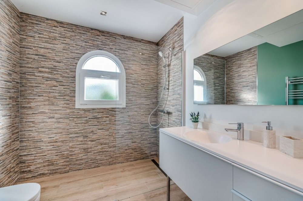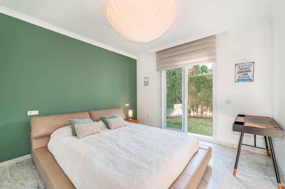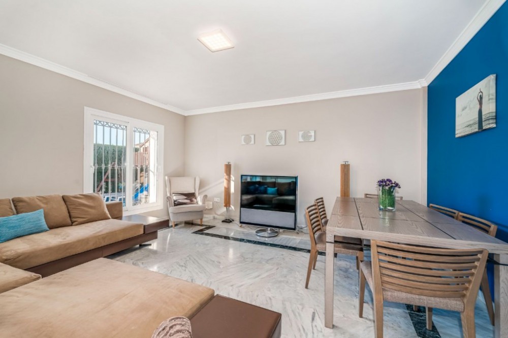 - This charming villa with heated pool is located in the famous residential area of Bahía de Marbella just a few meters from the beach. The urbanization is exclusive due to its elegance, its 24 hour security service and its unbeatable location in front of the most beautiful beaches in Marbella, not to mention the famous "La Cabane" beach club nearby. The villa has been completely renovated and is distributed over two floors. The ground floor consists of a modern kitchen with dining area and laundry room, a spacious living-dining room that opens onto the covered glazed terrace, a bedroom with an en-suite bathroom. The upper floor offers two bedrooms and two bathrooms, one of them en-suite. In addition, the villa has a large glazed terrace to enjoy the mild climate of Marbella and the sea views outdoors all year round. The villa is equipped with air conditioning h/c, under-floor heating in the bathrooms, marble floors, double glazing, solar energy, a garage for one car and a storage room.