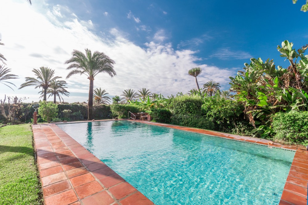 - Fantastic opportunity to purchase such a house in this unique location. Frontline beach in los monteros . An absolutely stunning plot in a fantastic beach location. One of the best plots on the cost ideal to build your dream house in a dream location Beachfront villa in sought after urbanization of Marbella East, with fabulous views of the protected sand dunes and overlooking the beach. The property has lots of potential and is in need of refurbishment. Distributed over 2 levels, accommodation comprises: on ground floor: entrance hall; living/dining room with fireplace; study; kitchen; master en-suite bedroom and guest toilet. Large covered porch. Upstairs: lounge with bar; tv room; 2 en-suite bedrooms, one with living room. Terrace with superb sea views and overlooking the garden. Staff accommodation of 2 bedrooms. Garage for 3 cars. Mature garden with pool. An ideal family home, steps from the best beaches. Location: Los Monteros