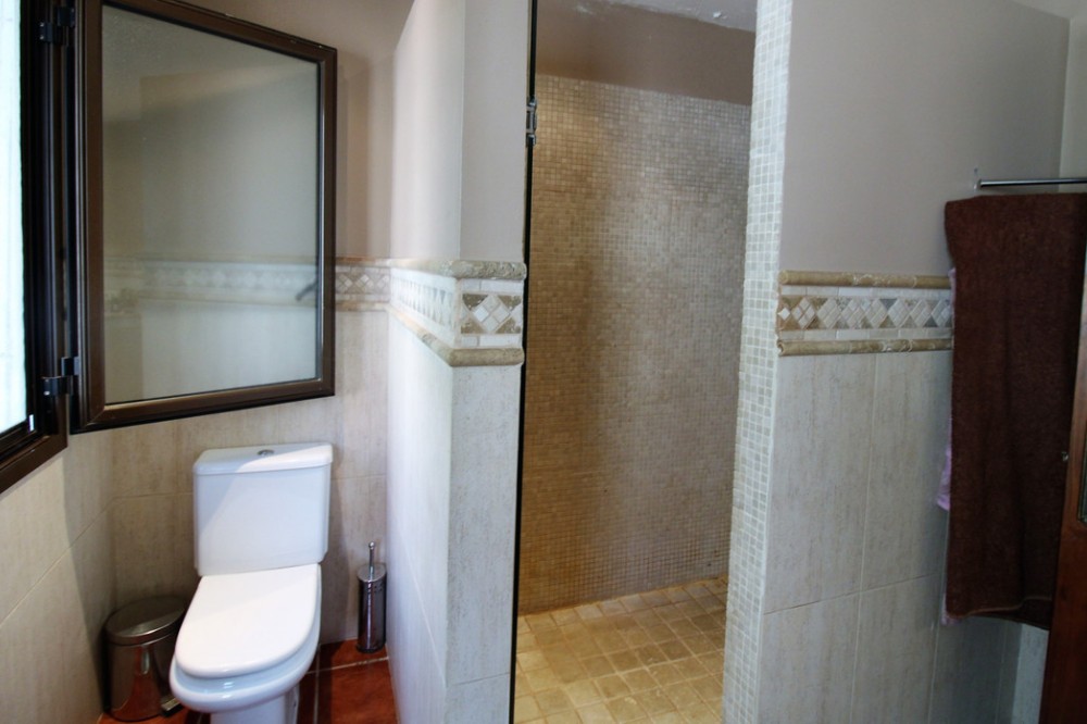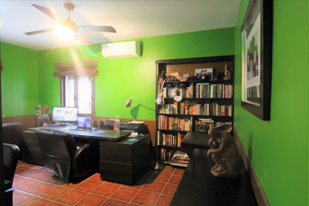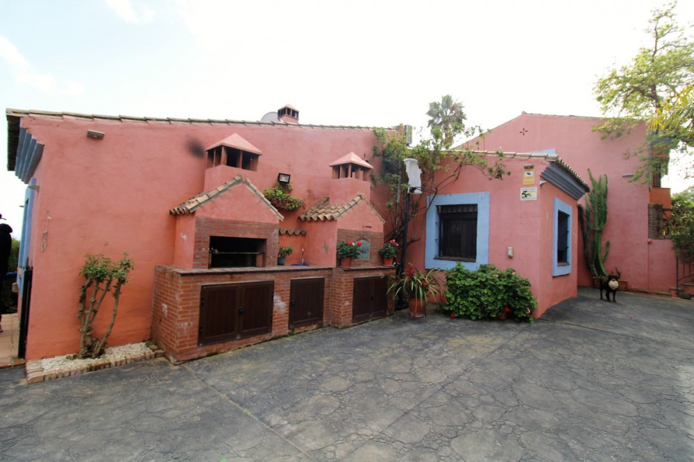 - Fantastic villa in Forest Hills with 600m built on a 1000m plot. This villa is characterized by its incredible panoramic views facing south and its large land full of fruit trees and planted with different plants and vegetables, areas with picnic areas, garden with saltwater pool and a large entrance with space for more than one car. leisure with built-in barbecues and stone ovens. The villa consists of two floors and a basement. On the upper floor we find two bedrooms, one of them with a built-in dressing room and the main room with access to a south-facing terrace. We found a bathroom with Jacuzzi and an extra dressing room. The first floor consists of 2 offices, 2 bedrooms, 3 bathrooms, 1 gym, 1 laundry room, large fully equipped kitchen with dining room and exit to the outside with dining terrace, large living room with access to another covered terrace and the garden. On the underground floor (120m) we find a large yoga and pilates room, reception and consultation or office plus 1 bathroom. (It can be renovated and create a separate apartment as it has a separate entrance) The villa has a privileged location, surrounded by vegetation, nature, waterfalls and a river. Perfect for outdoor sports and 15 minutes from the beach and Estepona. It has two independent entrances/exits and has solar panels.