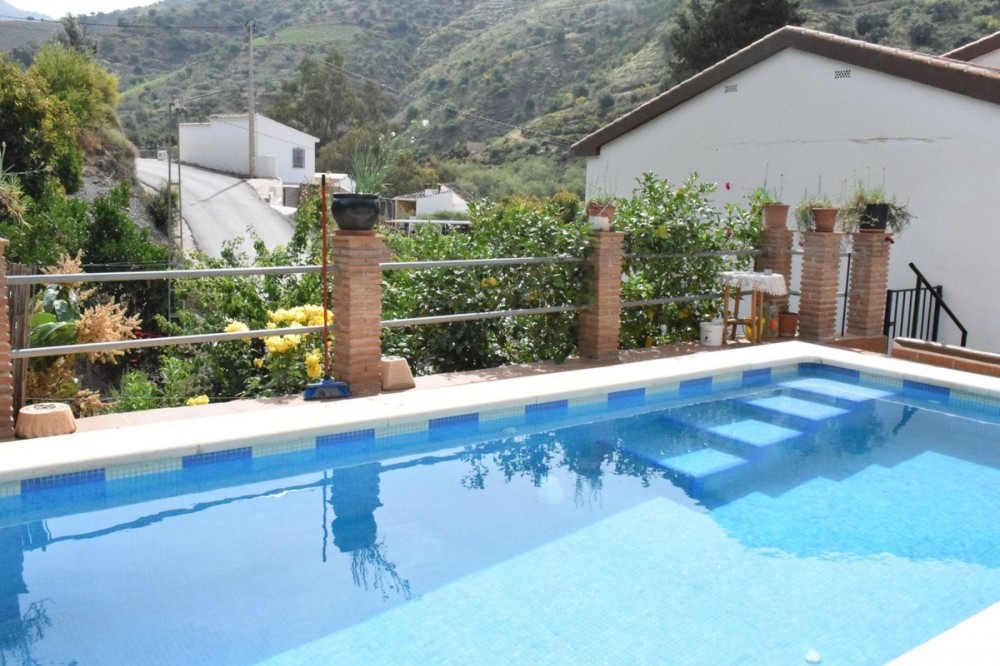 • This detached house is located in the area of Rio Bermuza, a 10 minutes drive to the village of Viñuela and only a 20 minute drive to the coast. The accommodation is distributed on two floors and comprises a hallway, large lounge/dining room with a fireplace, a fully fitted kitchen, 5 spacious bedrooms, 2 bathrooms and a huge garage for 3 cars. There are several terraces, a BBQ area with a storeroom, a pool area, and a garden. Beautiful views of the mountains.