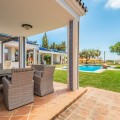 - Magnificent Villa for sale with pool and private garden very close to the beach near the Puerto Marina in Benalmádena Costa. It is a villa with personality and its own style. Contemporary architecture on the outside joins with the Andalusian style to enjoy the Malaga climate throughout the year. The villa has 4 bedrooms with bathrooms en suite, two bedrooms with terraces of about 40 m2 each with sea views, dressing room, separate kitchen, dining room, large living room, Andalusian patio, basement with kitchen and guest room, sauna. The house has a private garden with palm trees, a private pool, a rest area with barbecue. Underground parking for two cars and open parking for two more cars. Near the villa there are shops, supermarkets, train station. 15 minutes walking to the beach.