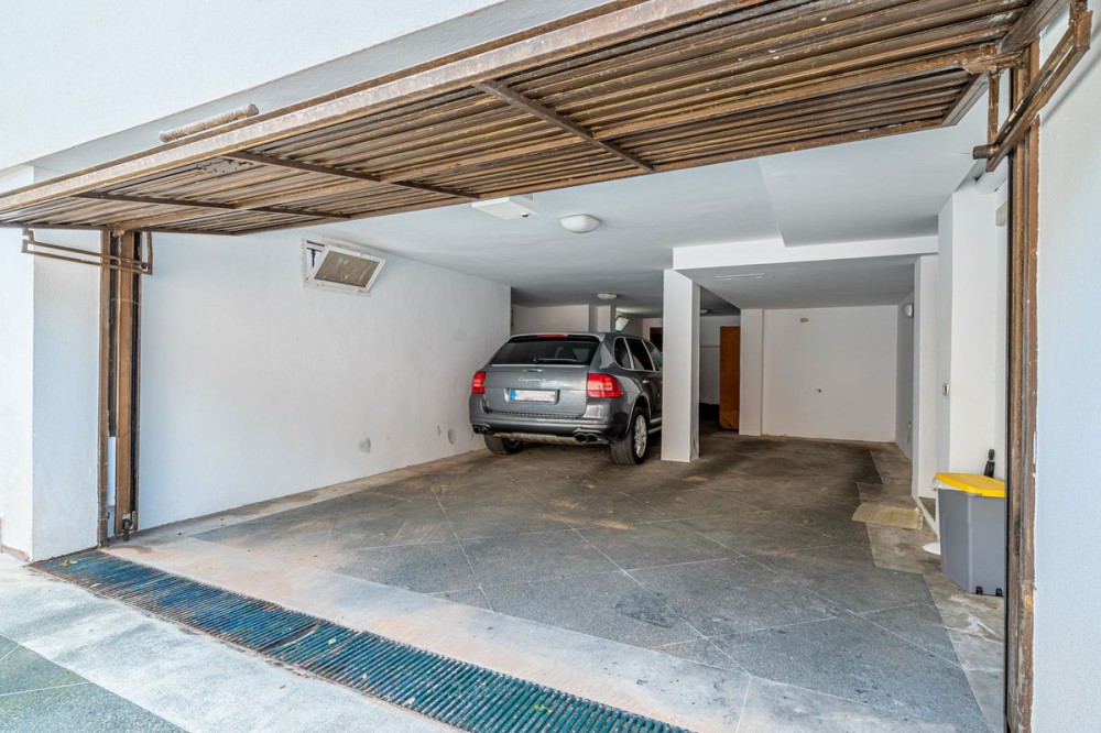 - Magnificent Villa for sale with pool and private garden very close to the beach near the Puerto Marina in Benalmádena Costa. It is a villa with personality and its own style. Contemporary architecture on the outside joins with the Andalusian style to enjoy the Malaga climate throughout the year. The villa has 4 bedrooms with bathrooms en suite, two bedrooms with terraces of about 40 m2 each with sea views, dressing room, separate kitchen, dining room, large living room, Andalusian patio, basement with kitchen and guest room, sauna. The house has a private garden with palm trees, a private pool, a rest area with barbecue. Underground parking for two cars and open parking for two more cars. Near the villa there are shops, supermarkets, train station. 15 minutes walking to the beach.