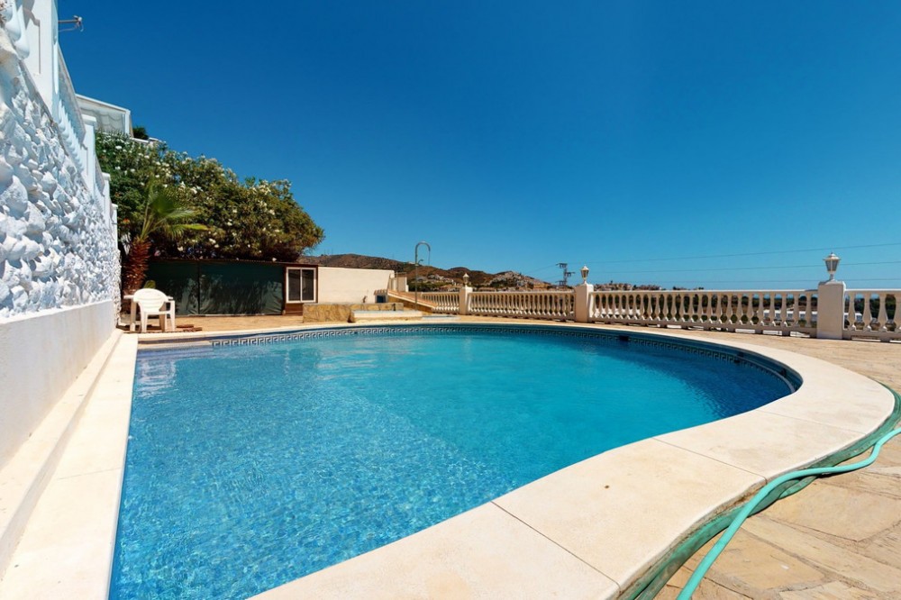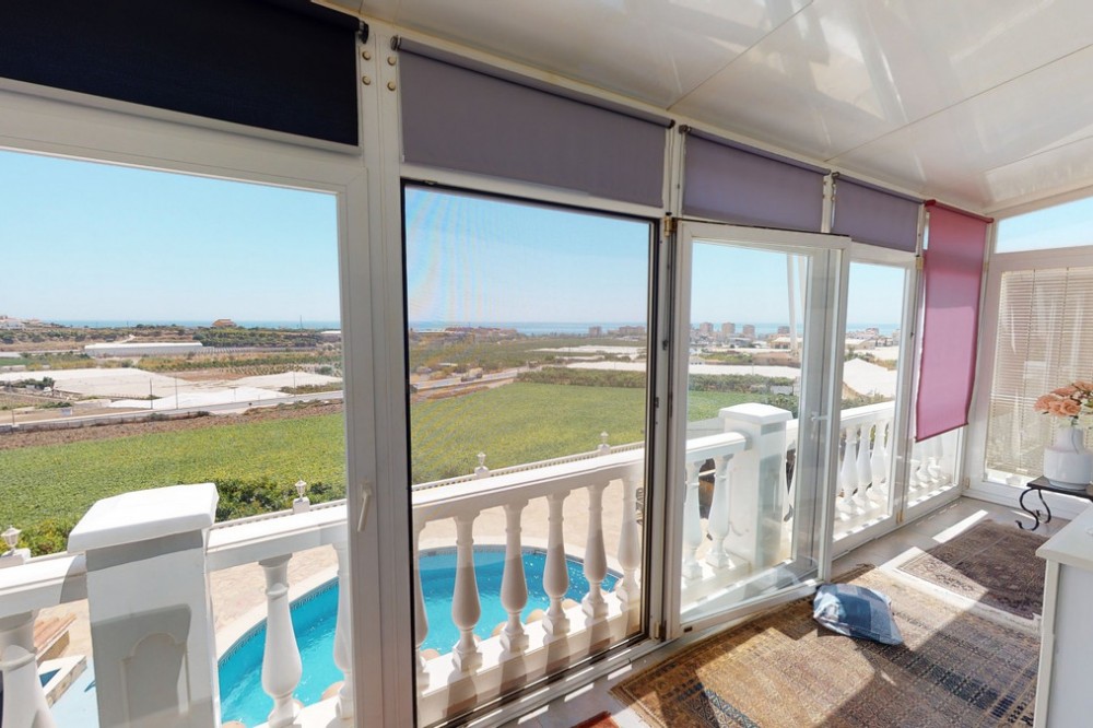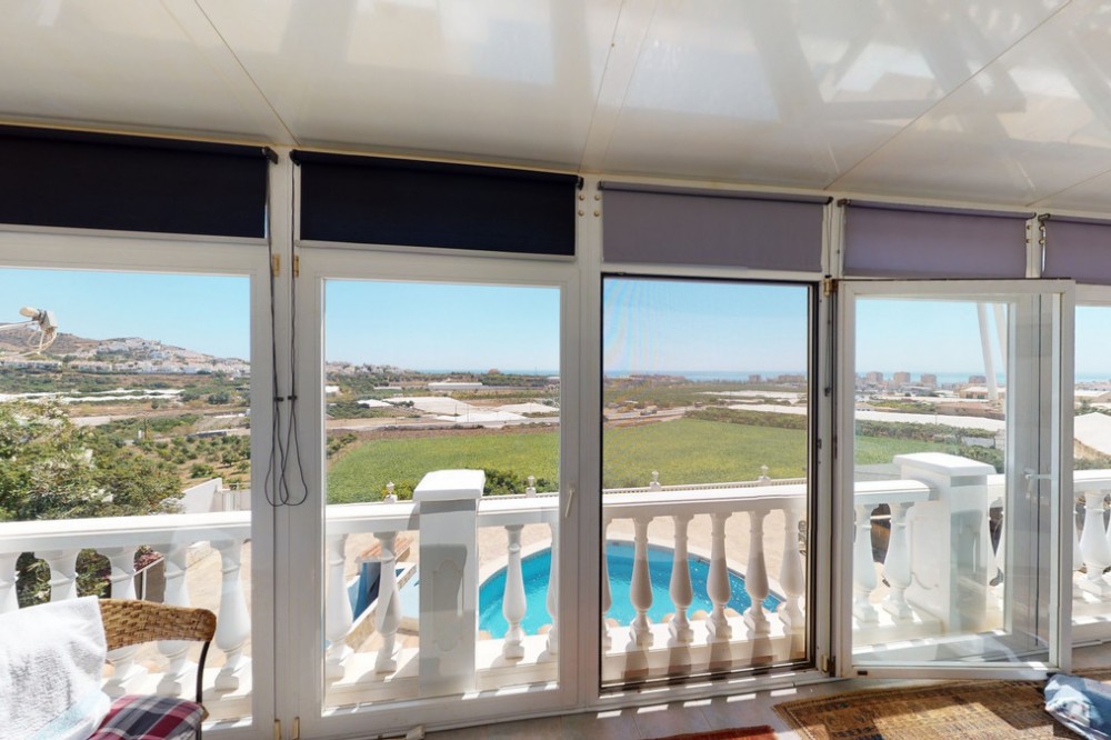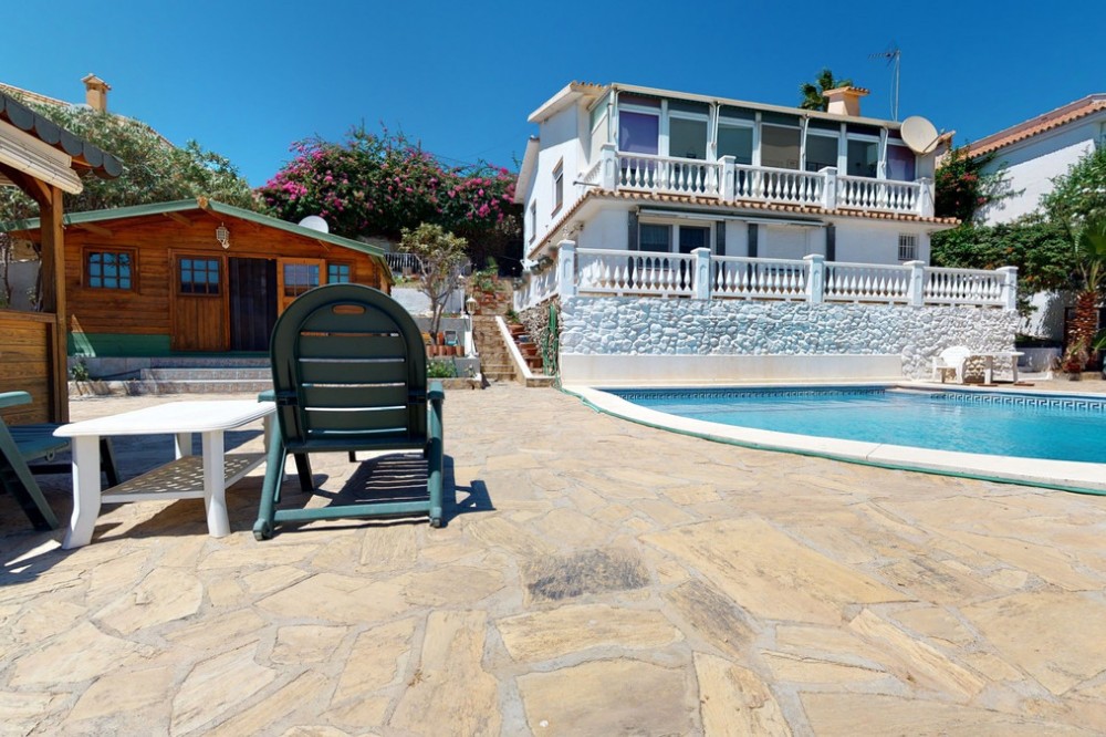 - For Sale, Villa, Torrox, Malaga With wonderful views of the Mediterranean Sea and the Andalusian countryside, we present this charming villa, located in the municipality of Torrox. Good road connections, as well as close to the center of the town and the beaches of Torrox Costa, this property is located within a gated complex and has a built area of 150 m2, divided into 2 floors. On the ground floor there is a fully equipped kitchen, one of the bedrooms and a bathroom. The main part of the property there are 2 spacious bedrooms and 2 bathrooms. On the next floor there is another bedroom, a nice hall, a bathroom and a large living-dining room. Furthermore, it has a storage room, PVC double glazing and air conditioning. It has two fabulous terraces that allow you to enjoy numerous celebrations, meals and moments of tranquility in good company. In addition, there is a stunning swimming pool for personal use, available on a plot of 750 m2. There are two wooden constructions on this plot. There is also a second property, divided into two floors of 23 m2 each, which is distributed into a garage and a cozy guest flat. The guest flat has its own bedroom and bathroom. We are pleased to be able to present this dream property to you soon, either personally or via virtual viewing. Because this world, it is unique - just like our Axarquía. In Andalusia. On the Costa del Sol. Here, on the sunny side of life...