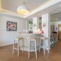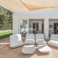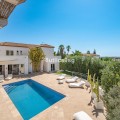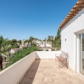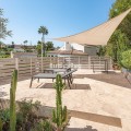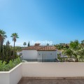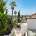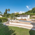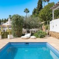 - Recently renovated villa, located in a gated and guarded urbanization, in the Las Brisas Golf area, in Nueva Andalucía, Marbella, with a lot of character and personality. This villa sits on a plot of almost 1,000 m2, and offers 5 bedrooms, 4 bathrooms and a guest toilet. It is really very bright, with large and numerous windows, with micro-cement and wood floors, exposed stone walls and other nice details of the recent renovation. On the main floor, a large living room divided into two rooms and with a fireplace, a separate dining room that leads out to the terrace and pool area, an elegant kitchen with an island format and Siemens and Neff appliances, with a separate laundry room. Furthermore, on this floor, a bedroom suite, a guest toilet and a storage room. On the upper floor, a large master bedroom, with wooden ceiling and floor and sea views, with a very large en-suite bathroom with bathtub and shower. Another en-suite bedroom and two other bedrooms that share a bathroom, as well as a large terrace that almost surrounds the floor, with beautiful distant views of the sea and the mountains. In the garden, we find a raised gazebo for al fresco dining and pleasant barbecues. A swimming pool of generous dimensions and well-cared for plants and trees. A garage space. The villa is located in a gated community of only 34 individual villas, with a concierge and 24-hour security. Just two minutes from Golf Las Brisas and Aloha Golf and 5 minutes from all the services of Nueva Andalucía.